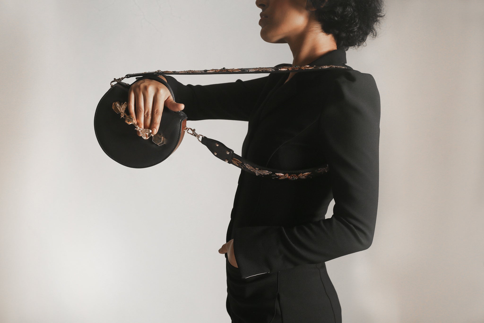 | Elegant Charcoal to liven an evening dress or a spring time. The Wasp Bag uses quality leather that is structured to a stand-out shape. The metallic hardware is polished to perfection and adds a dazzle to the smooth surface of the bag |