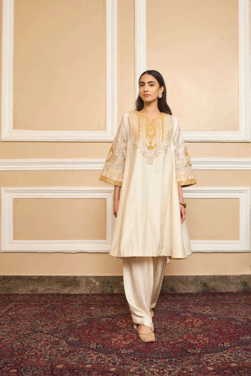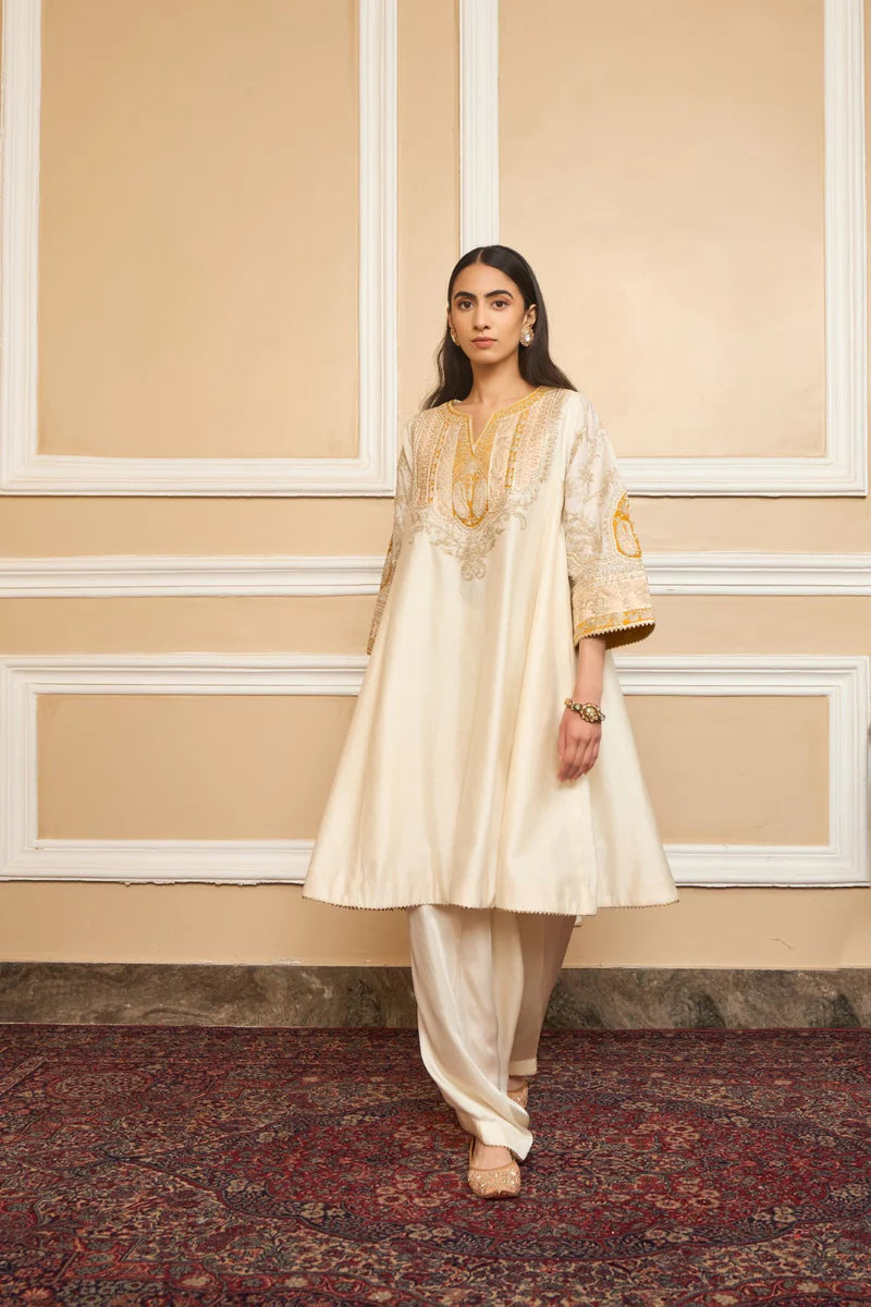Mohsina - daisy ivory short kalidaar choga with salwar