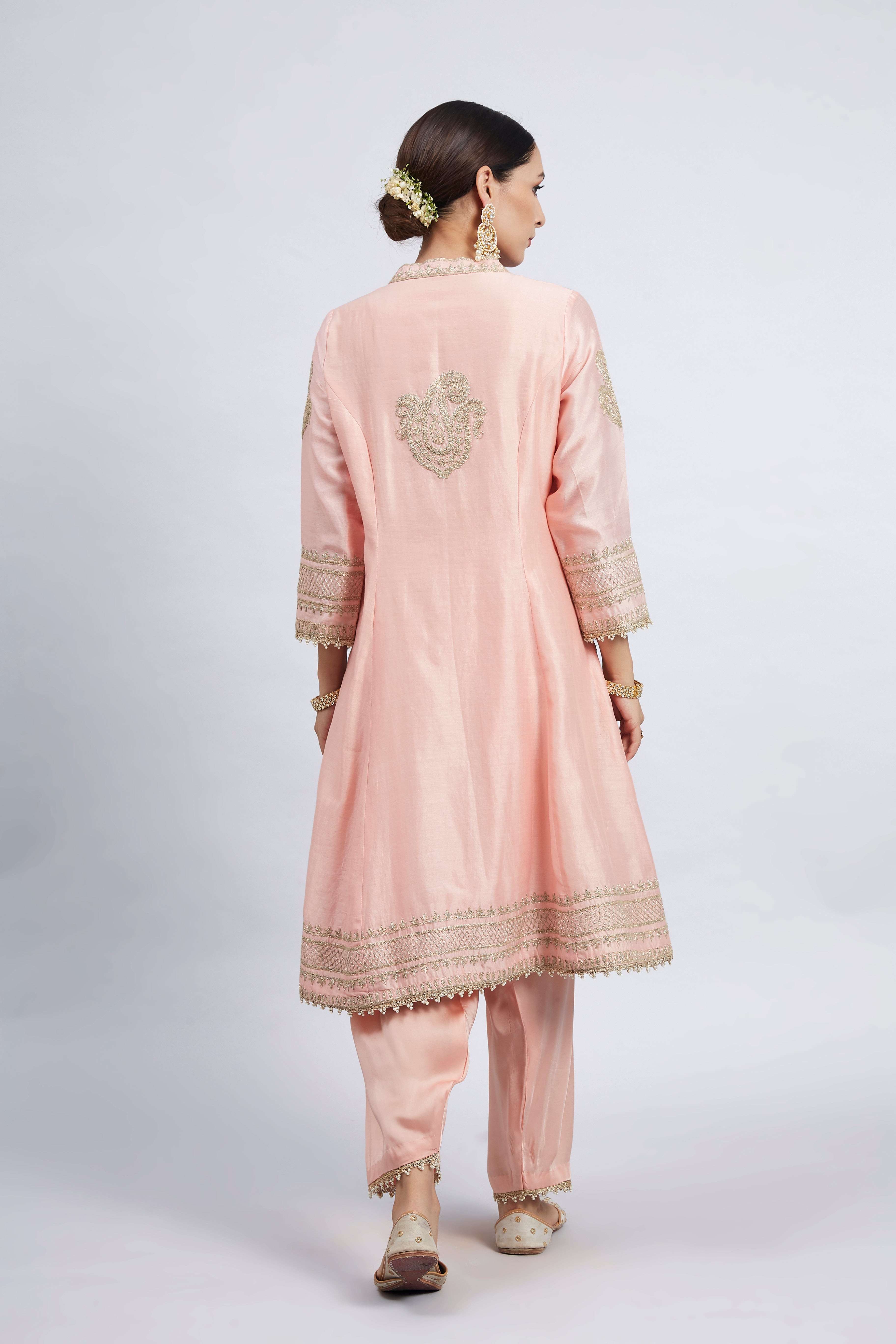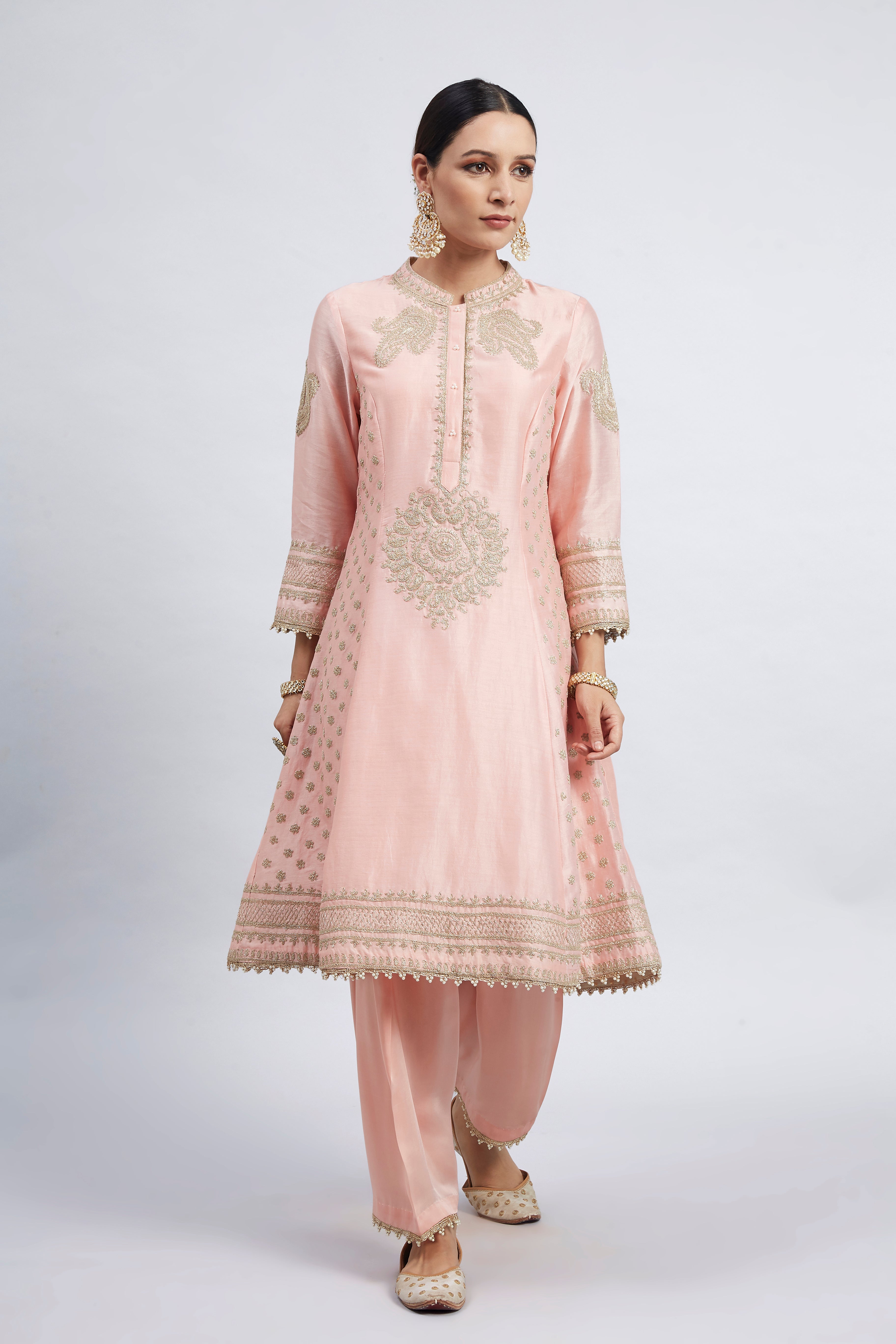 Naazira-carnation pink-a-line short kurta with salwar and dupatta