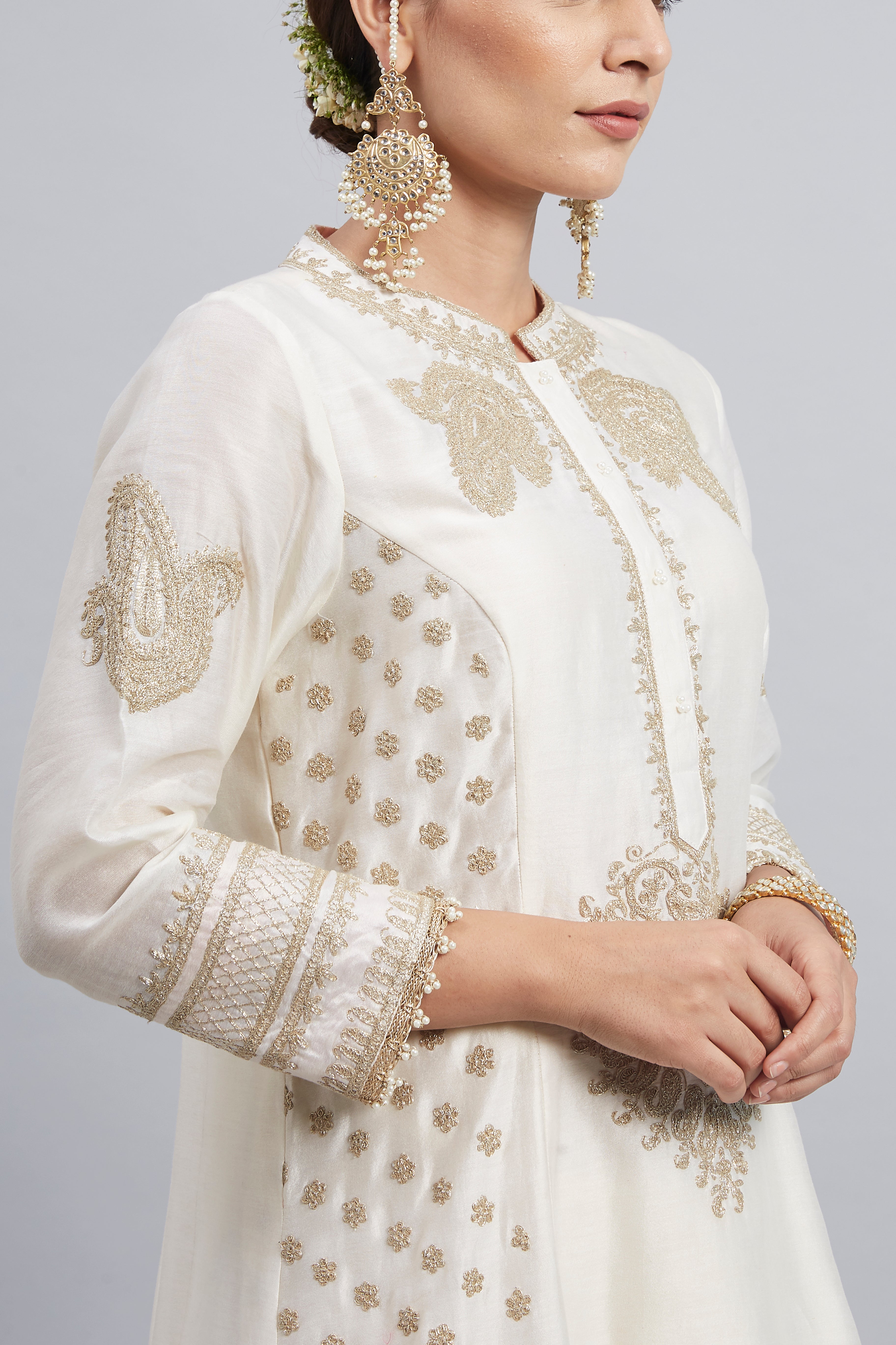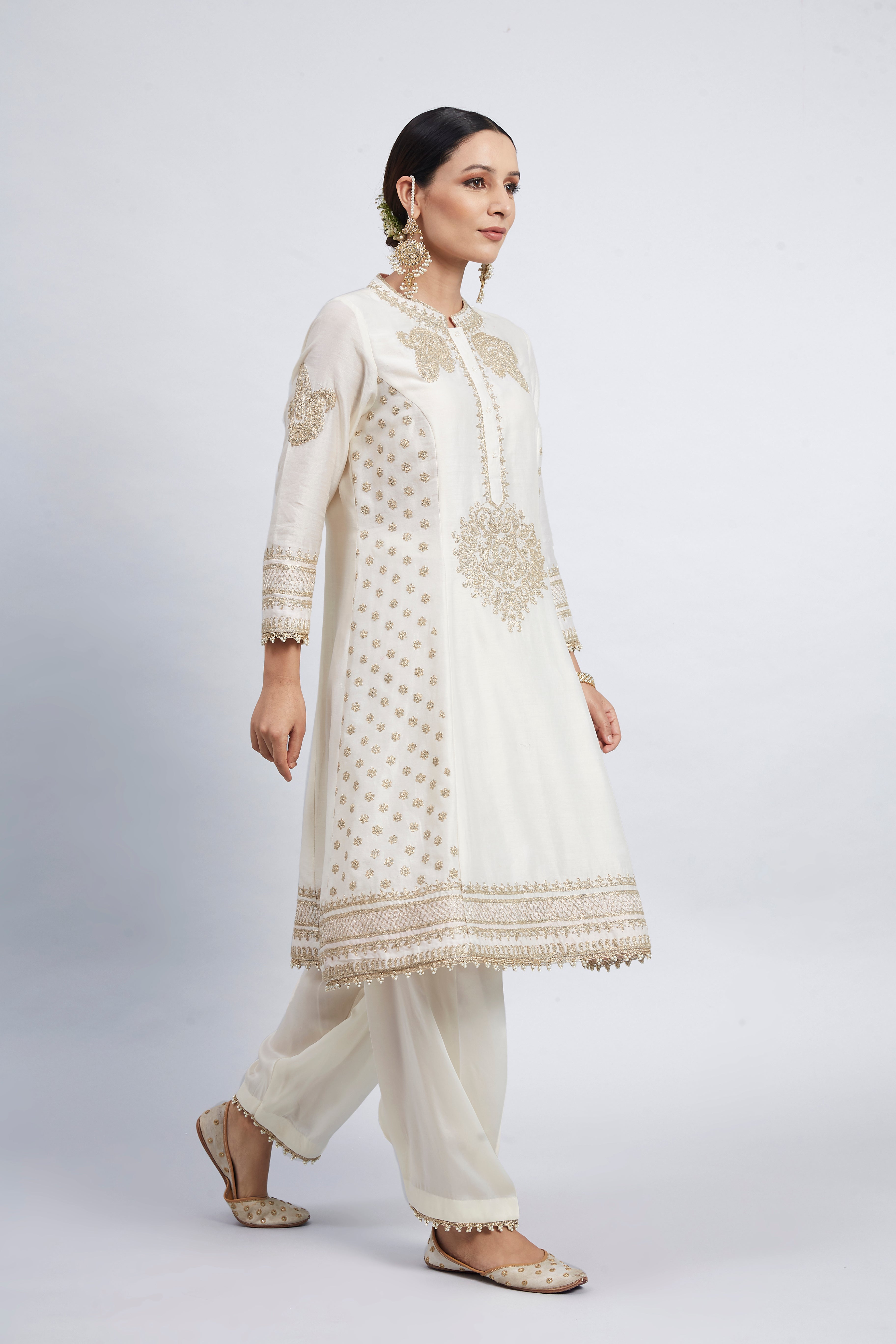 Naazira-daisy ivory-a-line short kurta with salwar and dupatta