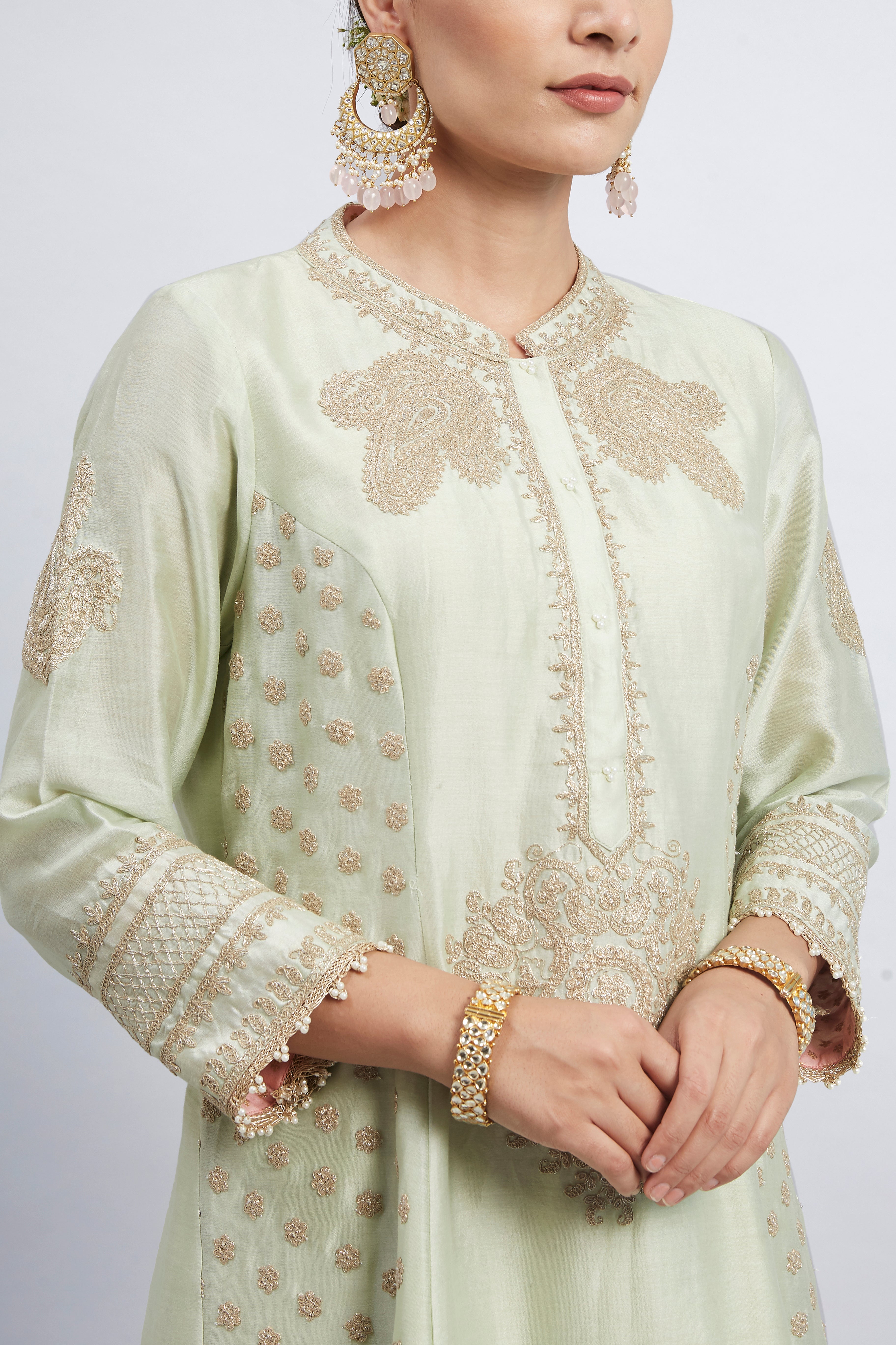 Naazira-mint green-a-line short kurta with salwar and dupatta