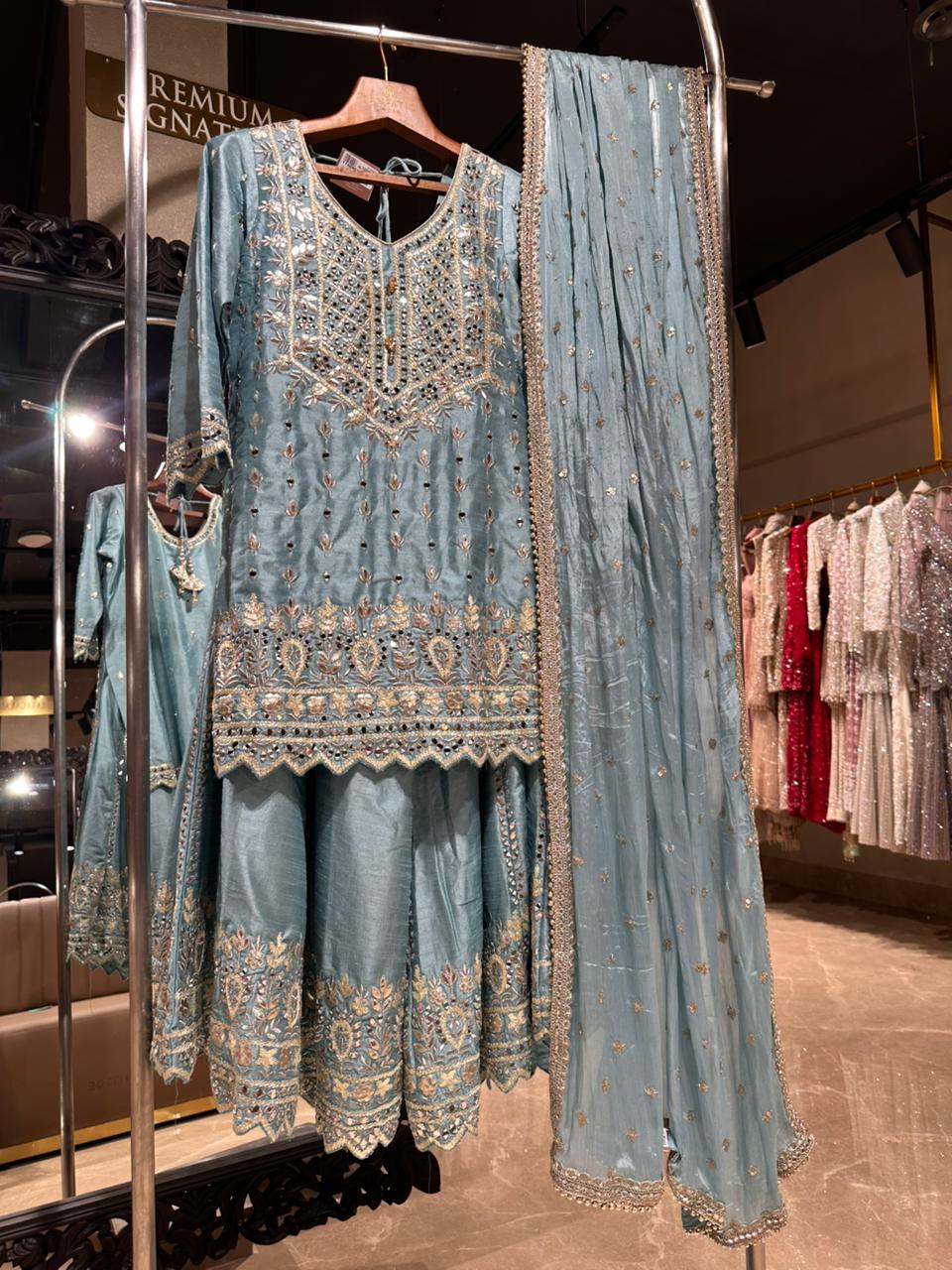 Elegant banarasi silk embroidery sharara set