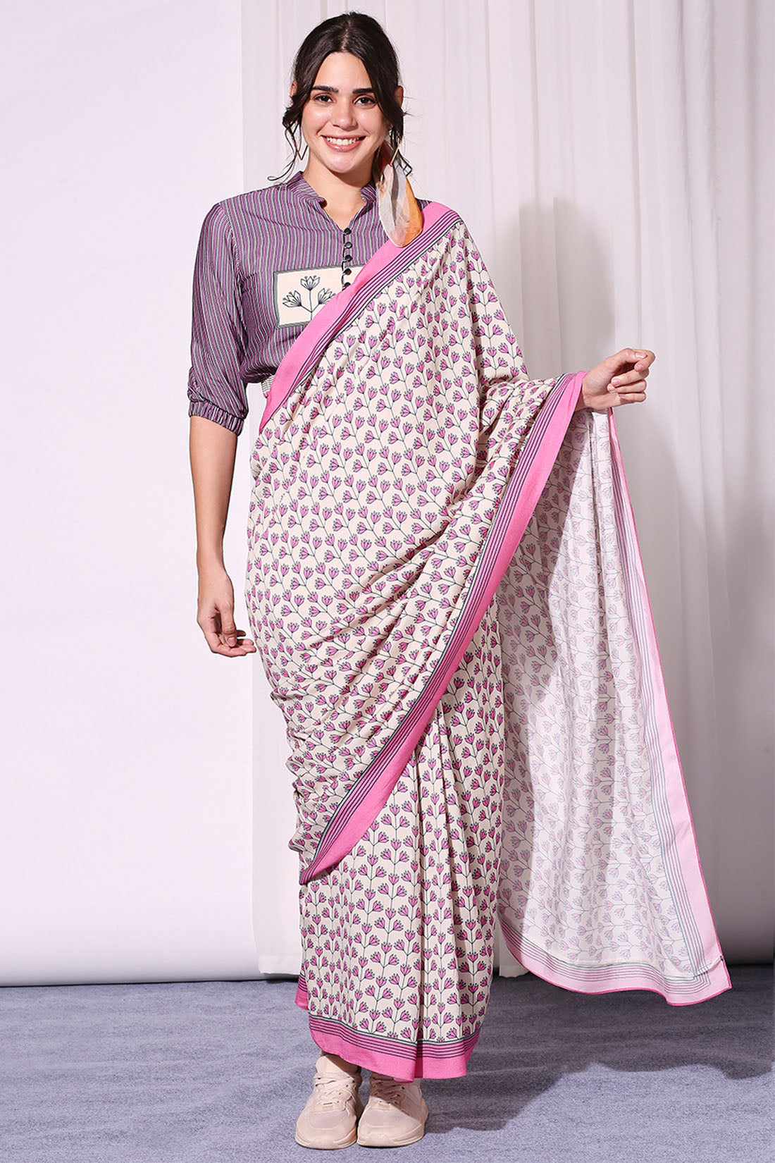 Embrace The Beauty Of Summer With This Fuchsia Pink Summer Florals Printed Pre-Stitched Saree, A Perfect Fusion Of Tradition And Contemporary Flair. The Bold Fuchsia Pink Hue Is Beautifully Complemented By A Delicate Floral Print, Capturing The Essence Of The Season With Vibrant, Fresh Blooms That Exude Femininity And Grace.