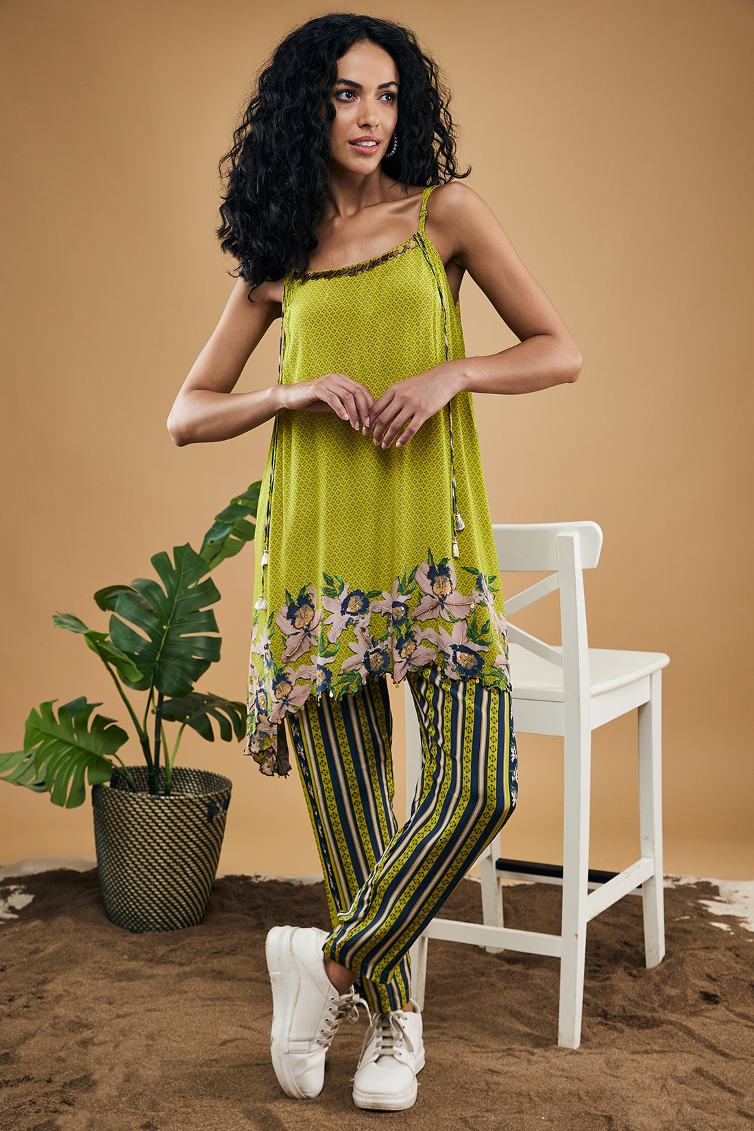 Orchid bloom embellished top with pants