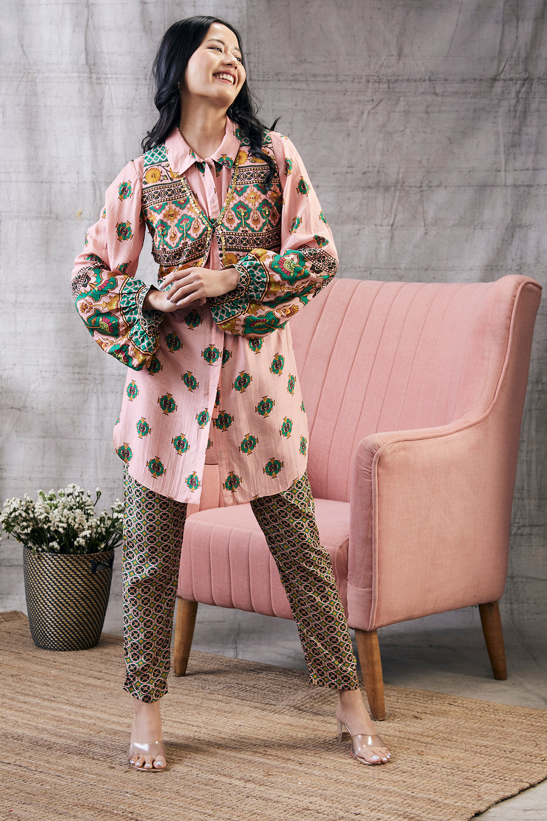 Make A Vibrant Style Statement With The Taahira Printed Co-Ord Set With Jacket, An Elegant Ensemble Crafted From Luxurious Multicolor Malaysian Silk. Designed For The Modern Woman Who Loves Effortless Glamour, This Set Features A Stylish Printed Co-Ord Paired With A Flowy, Coordinated Jacket That Adds Drama And Sophistication. The Soft, Glossy Texture Of Malaysian Silk Offers A Rich Feel And Graceful Drape, While The Bold Multicolor Prints Infuse Life And Energy Into The Look. Whether You're Dressing For A Festive Occasion, A Daytime Celebration, Or A Chic Evening Out, This Set Combines Comfort, Style, And Cultural Charm.