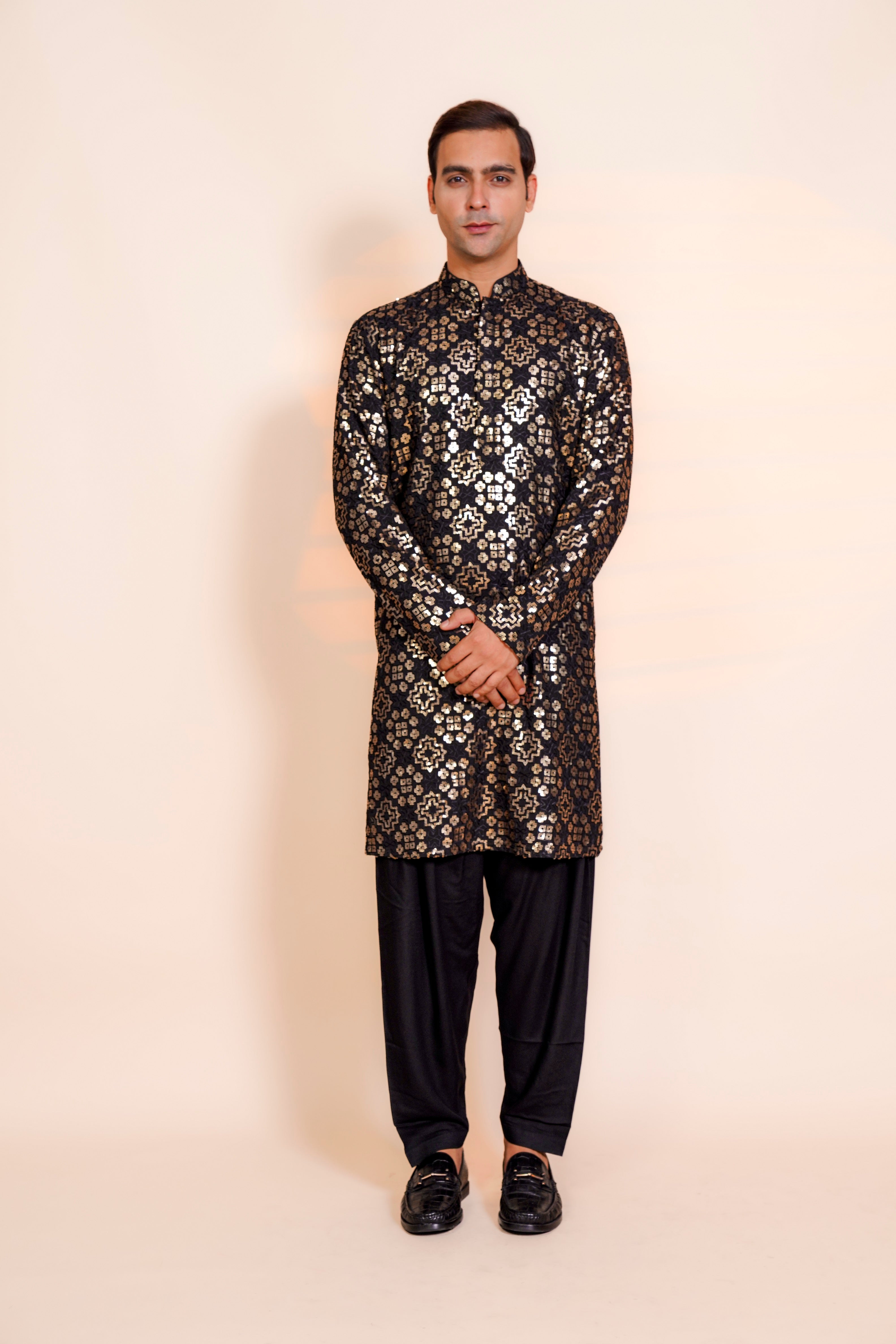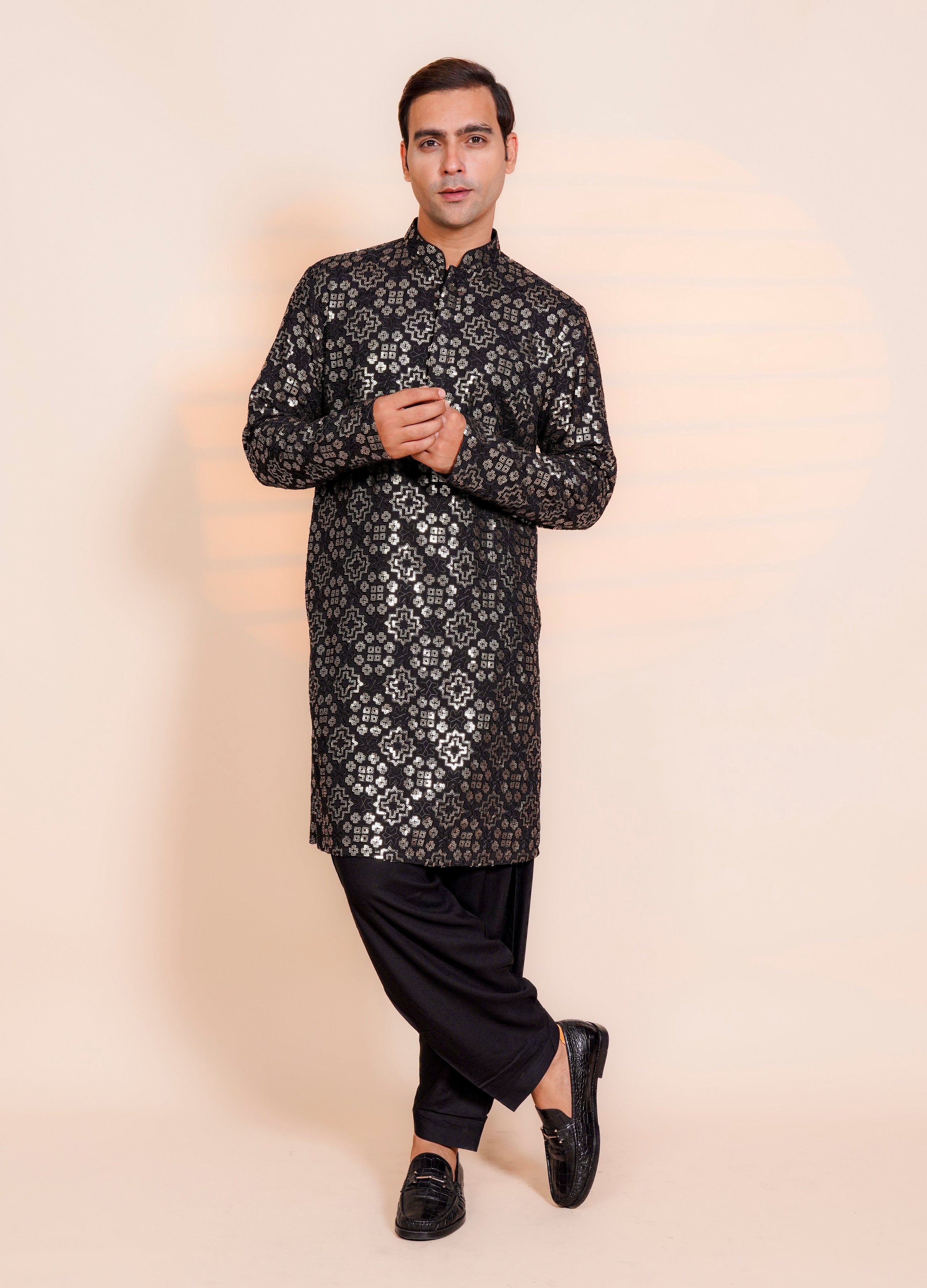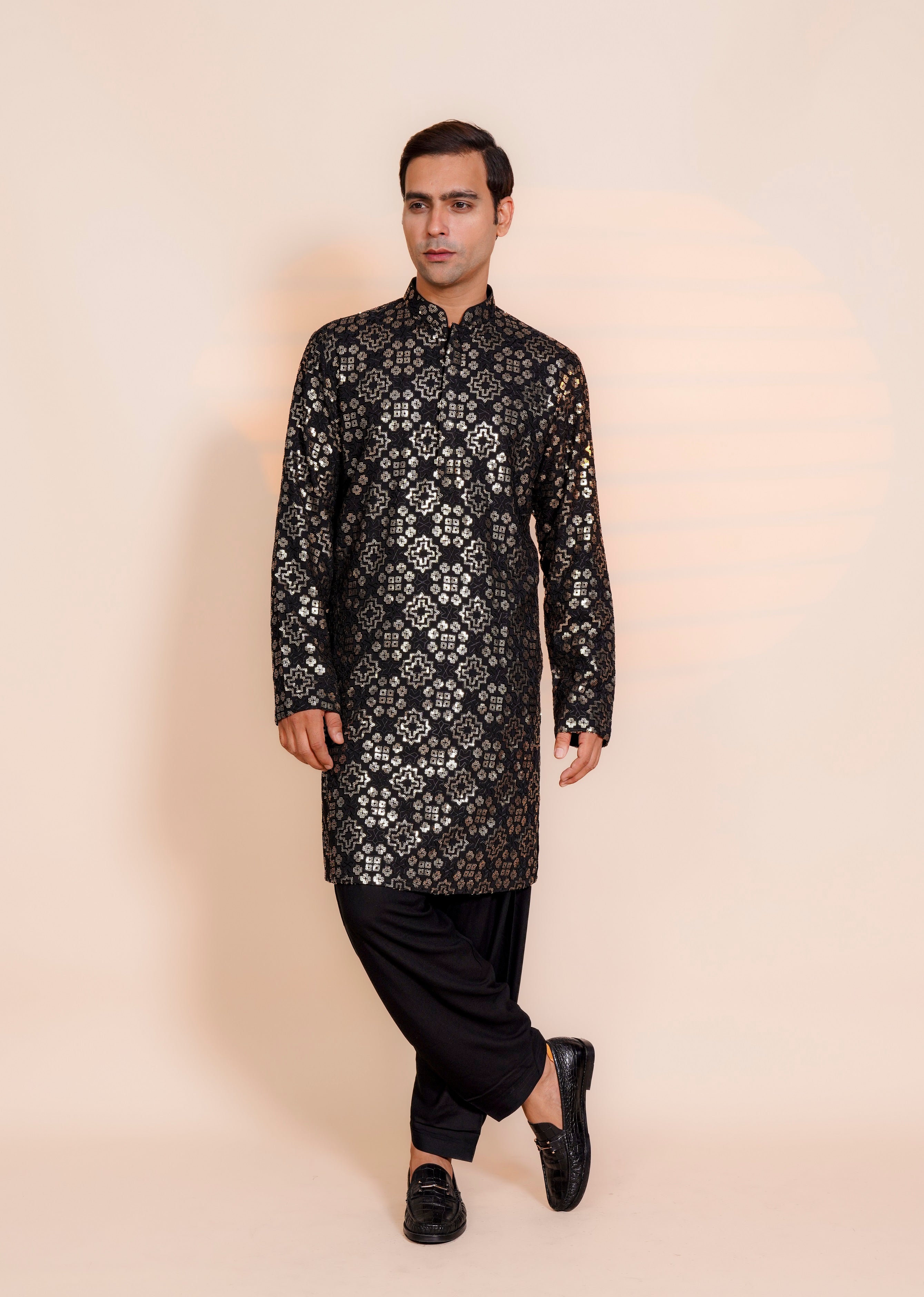 | Featuring the Black Chickenkari Sippi work kurta it is paired with Semi Salwar |