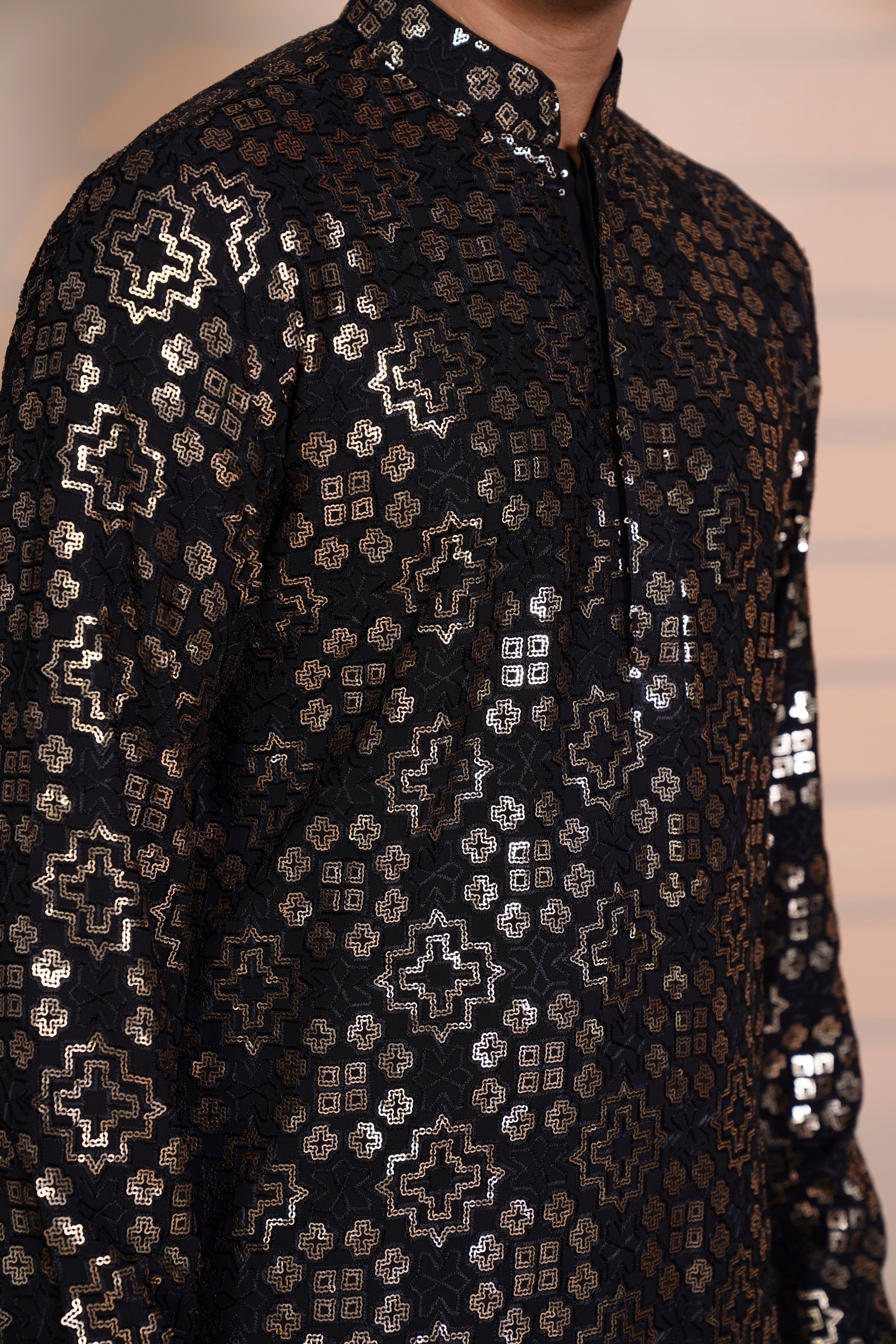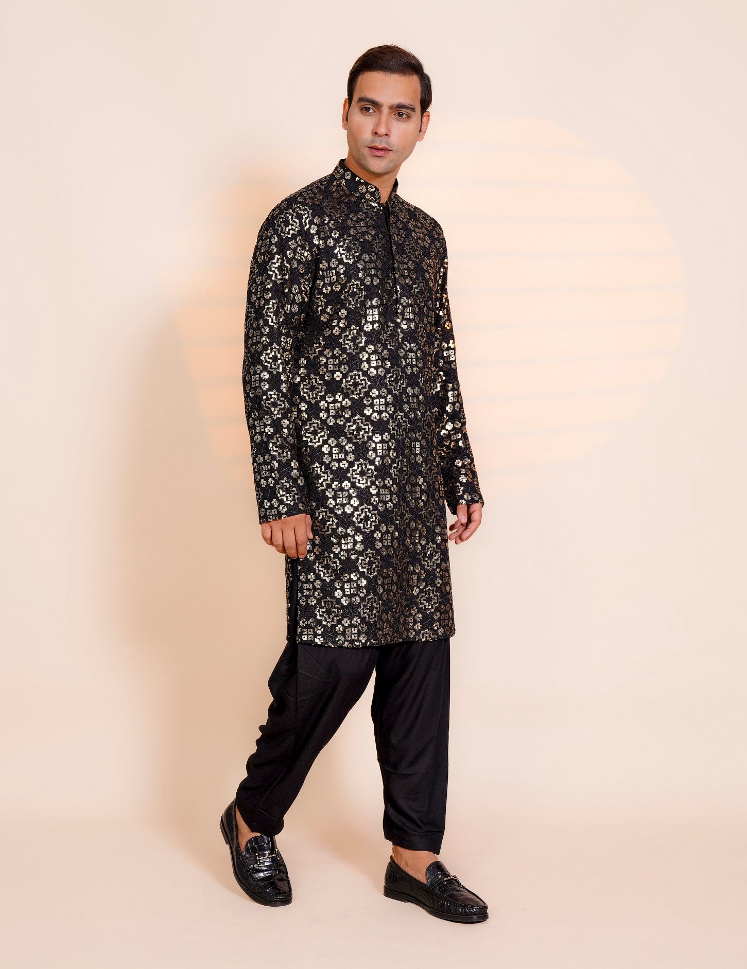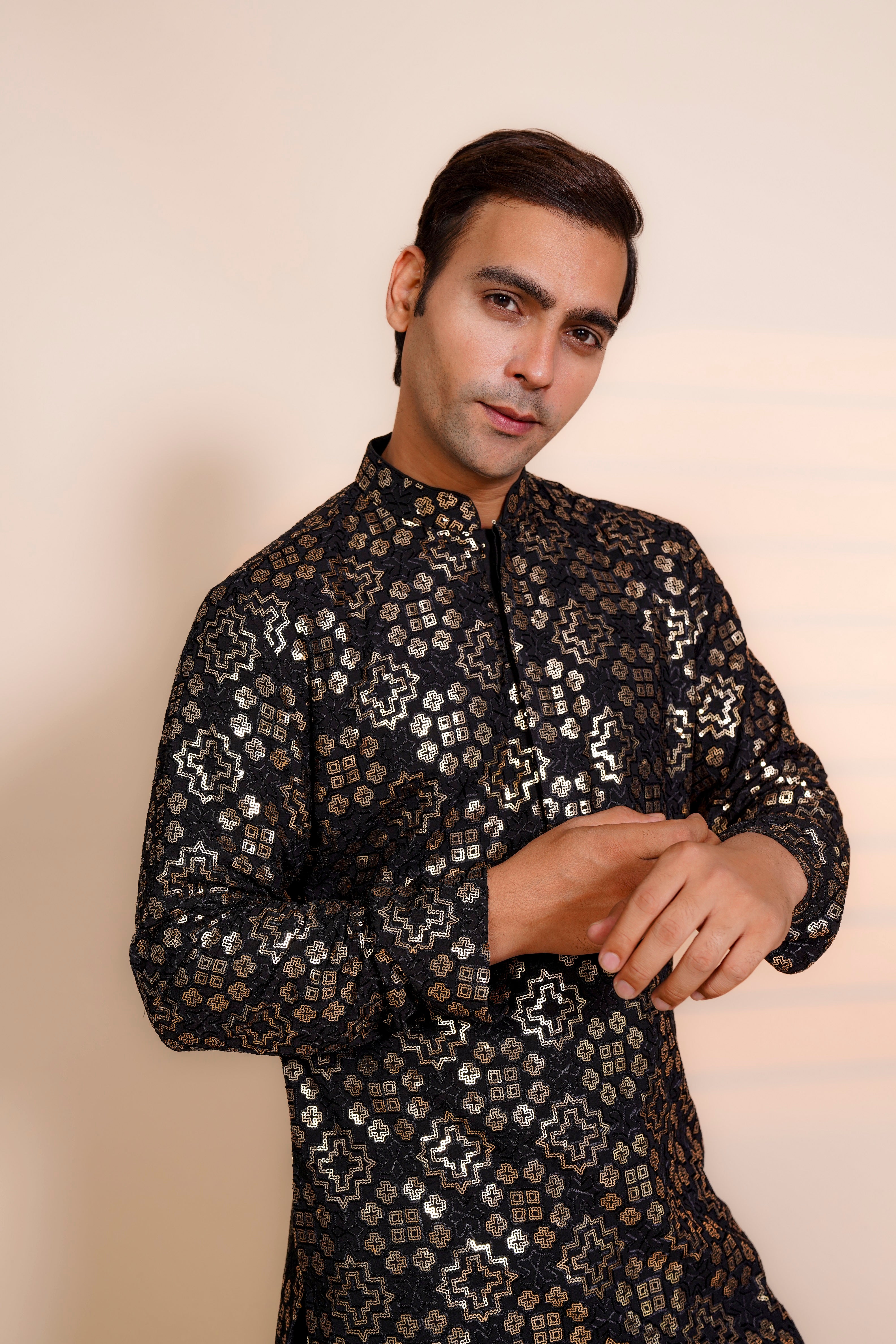 | Featuring the Black Chickenkari Sippi work kurta it is paired with Semi Salwar |