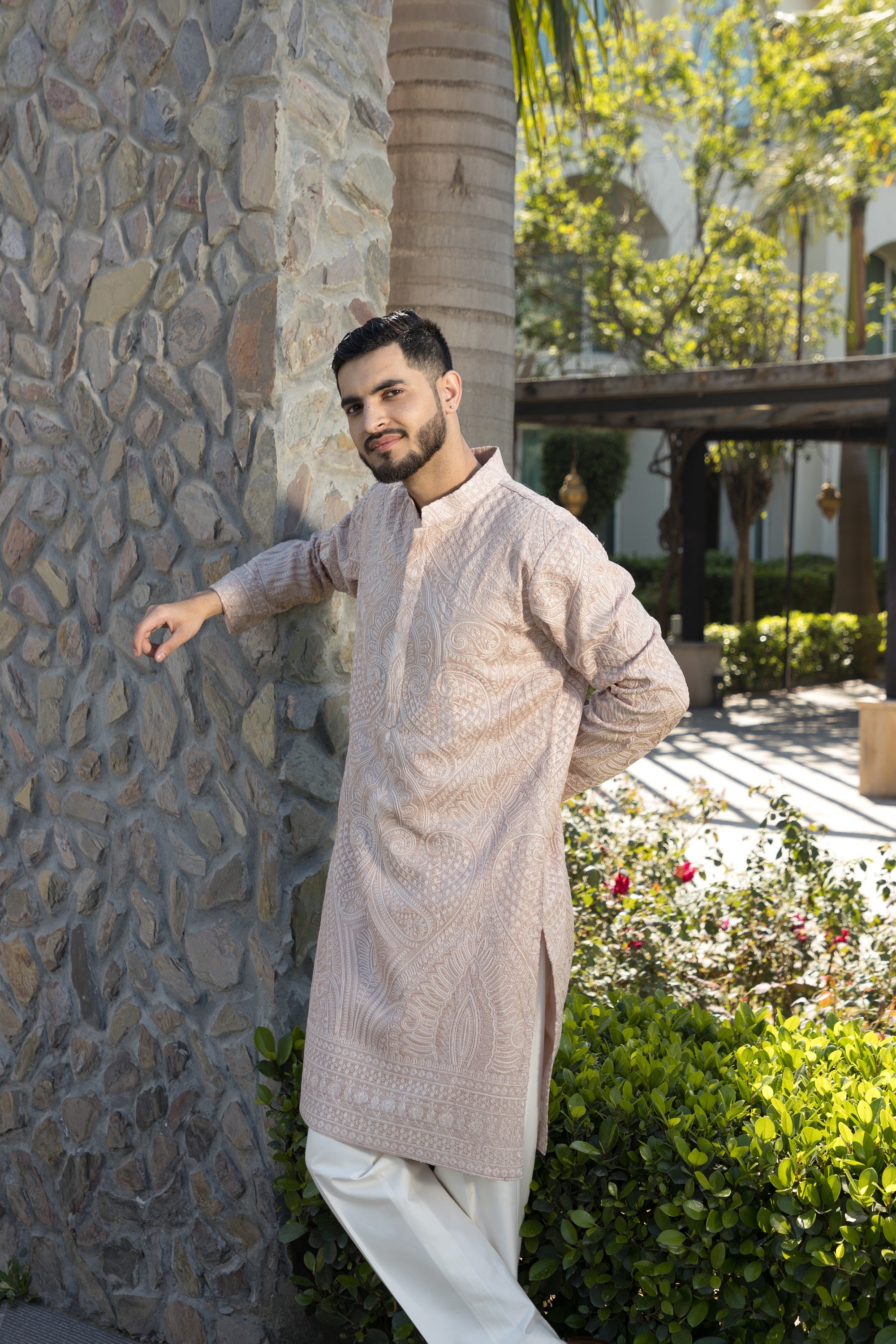 The pink kurta with pyjama, made from a soft silk cotton fabric