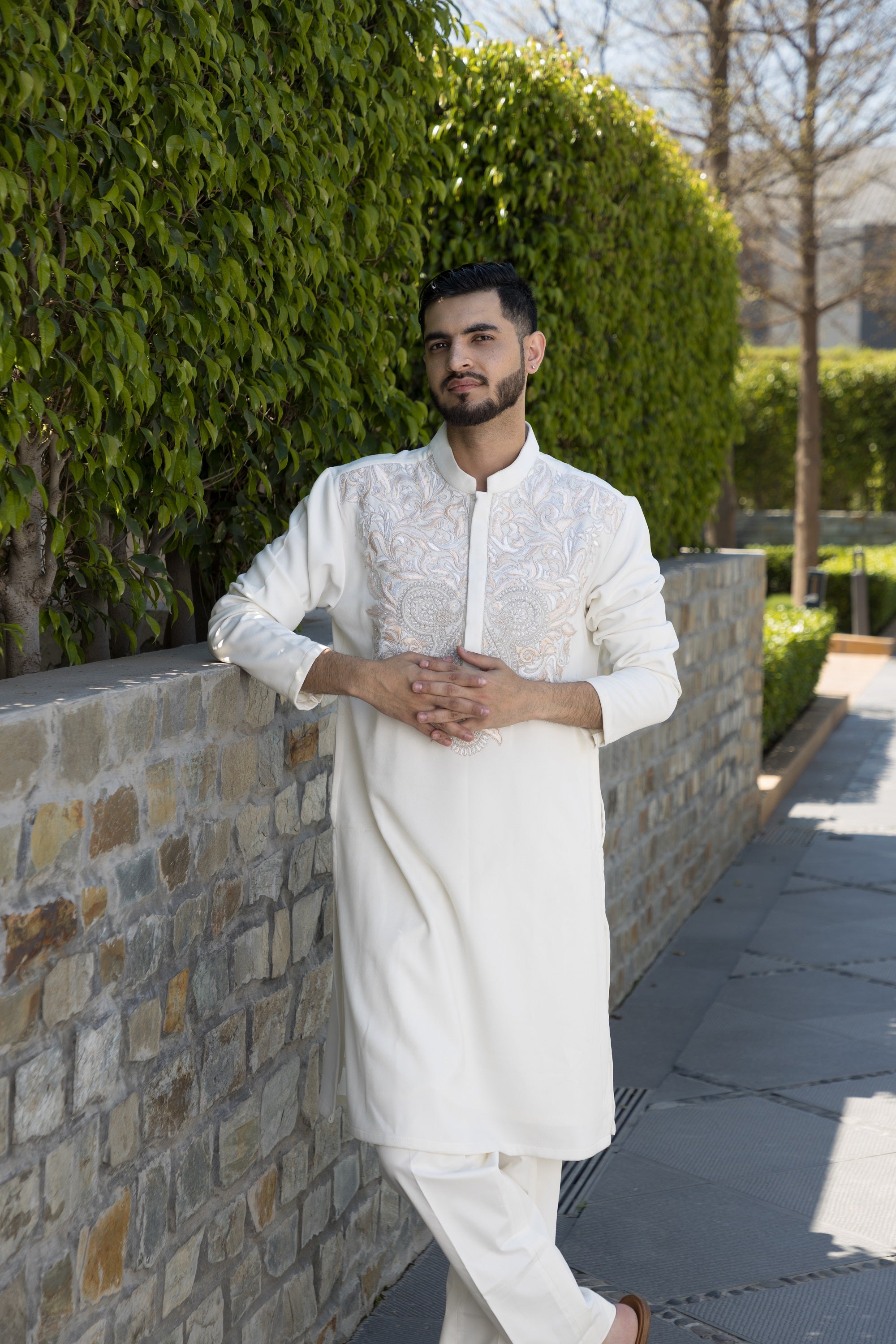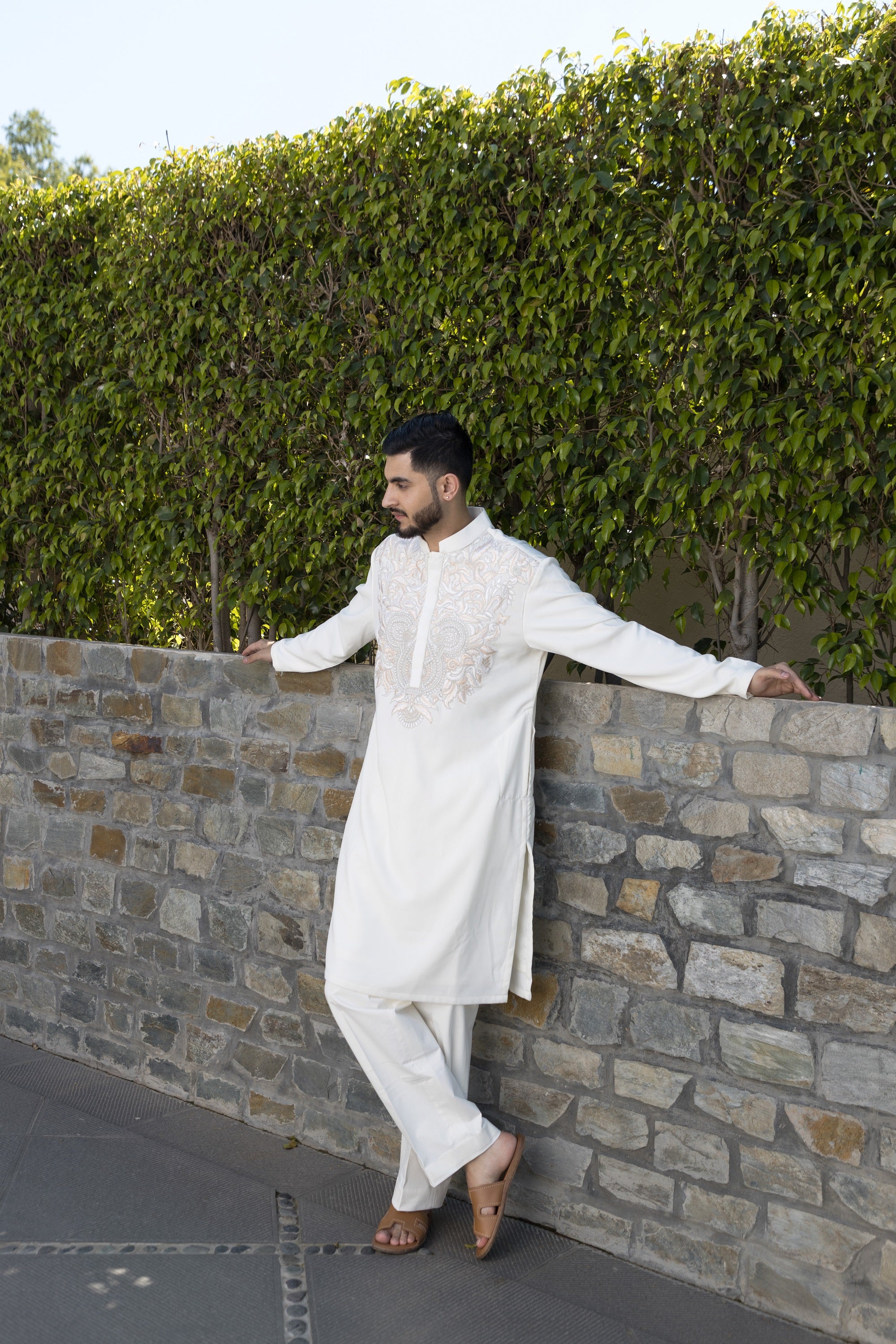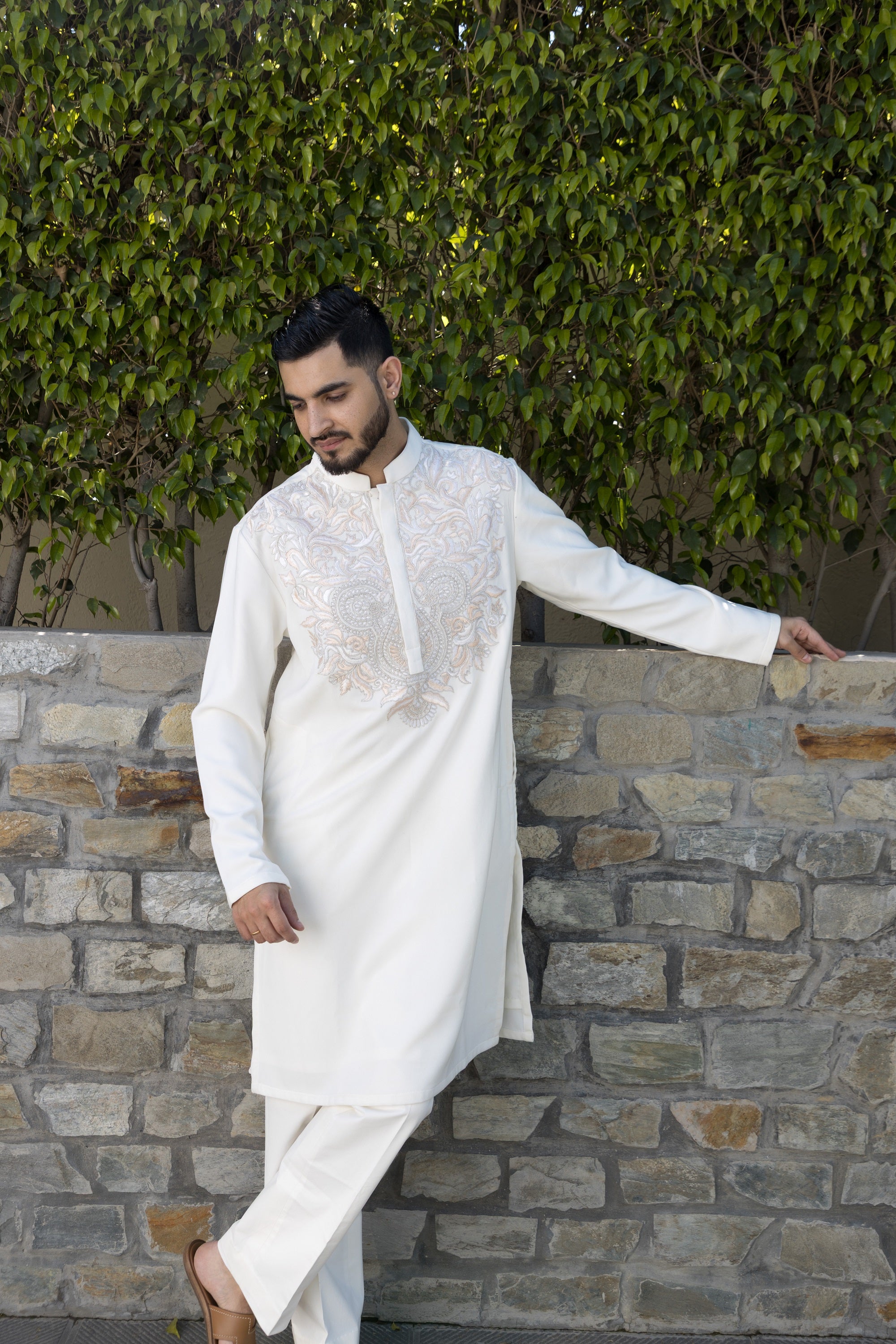 The white kurta pyjama, crafted from high-quality italian fabric