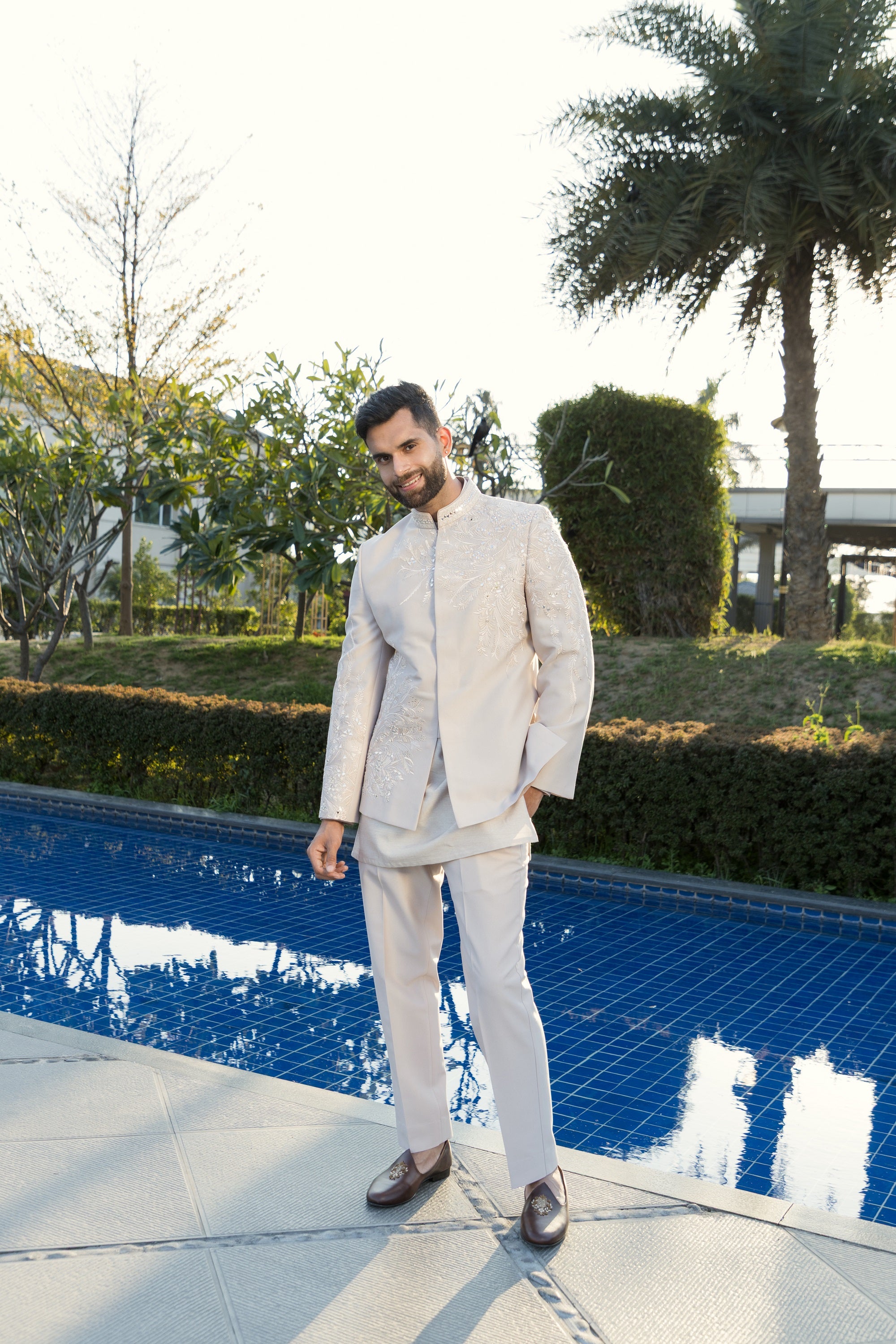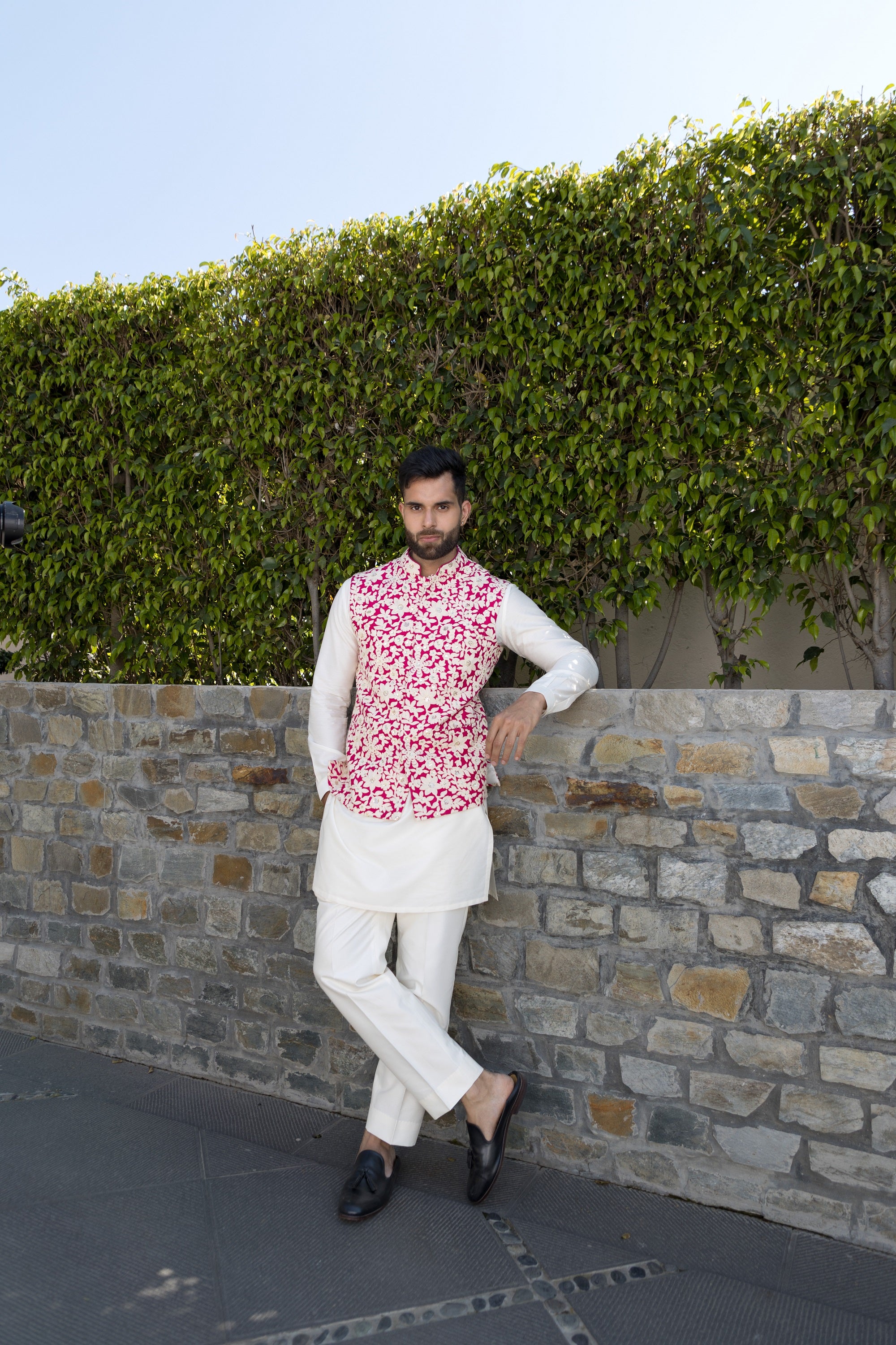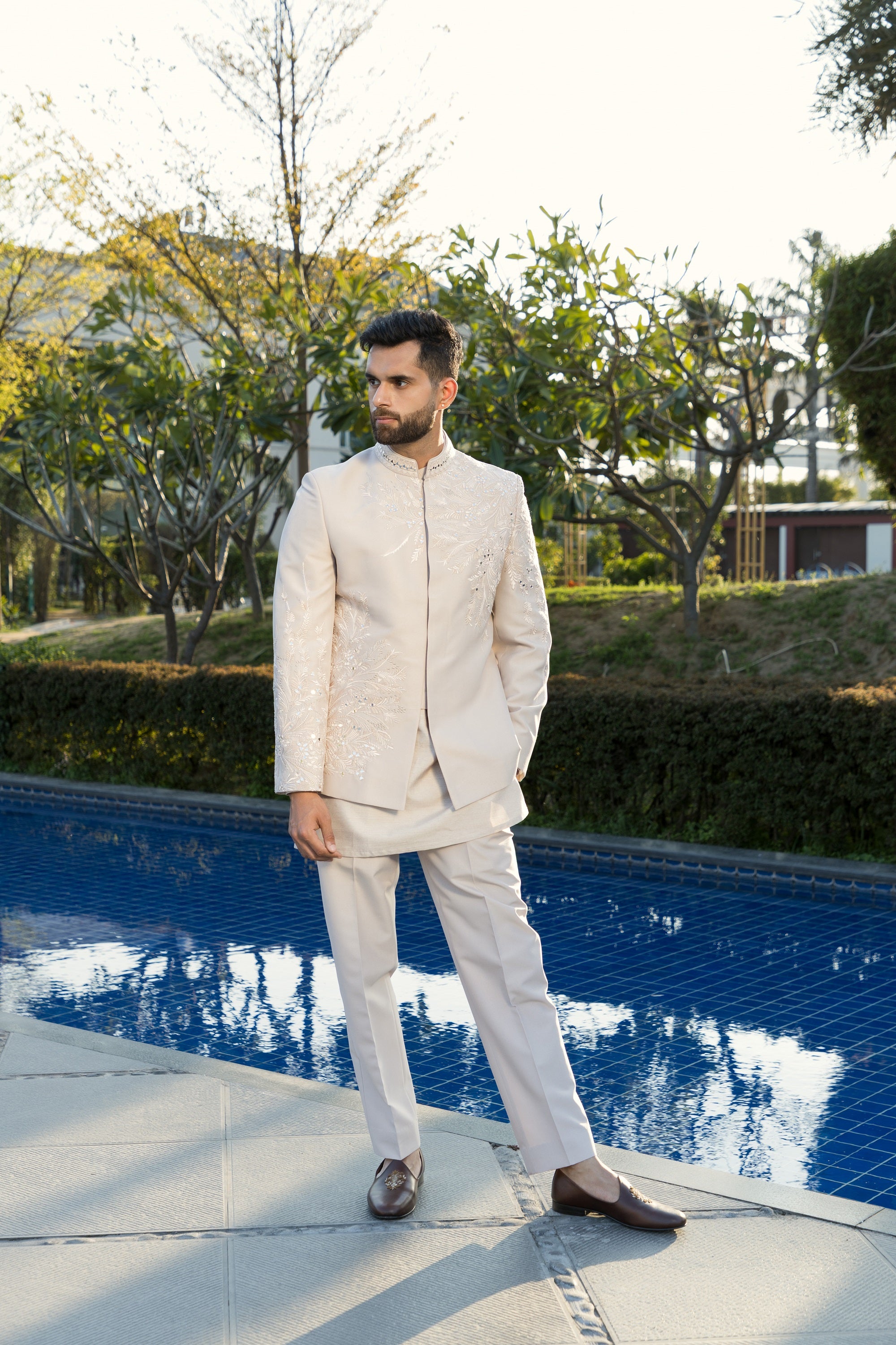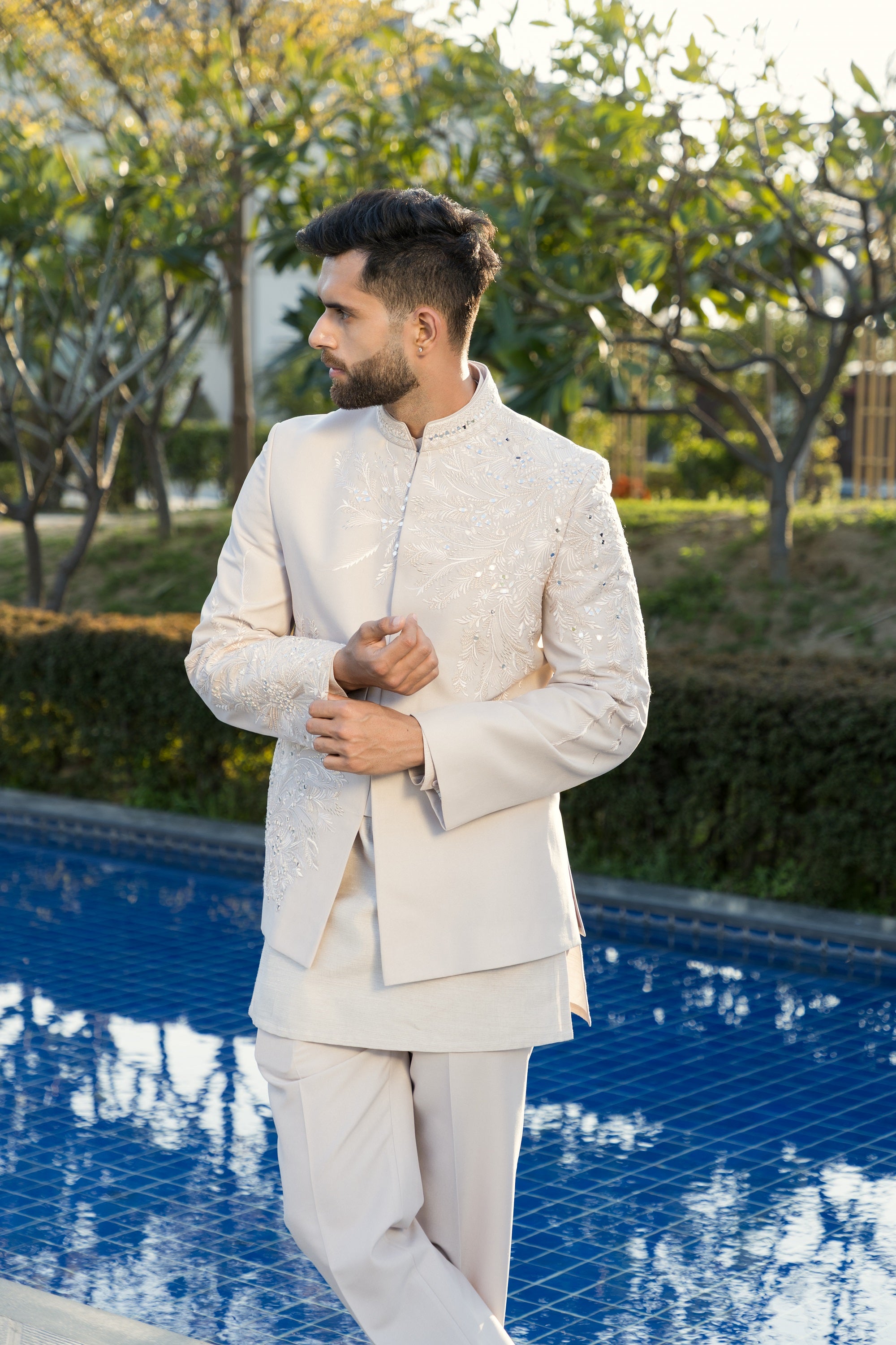 The white kurta pyjama, crafted from high-quality italian fabric