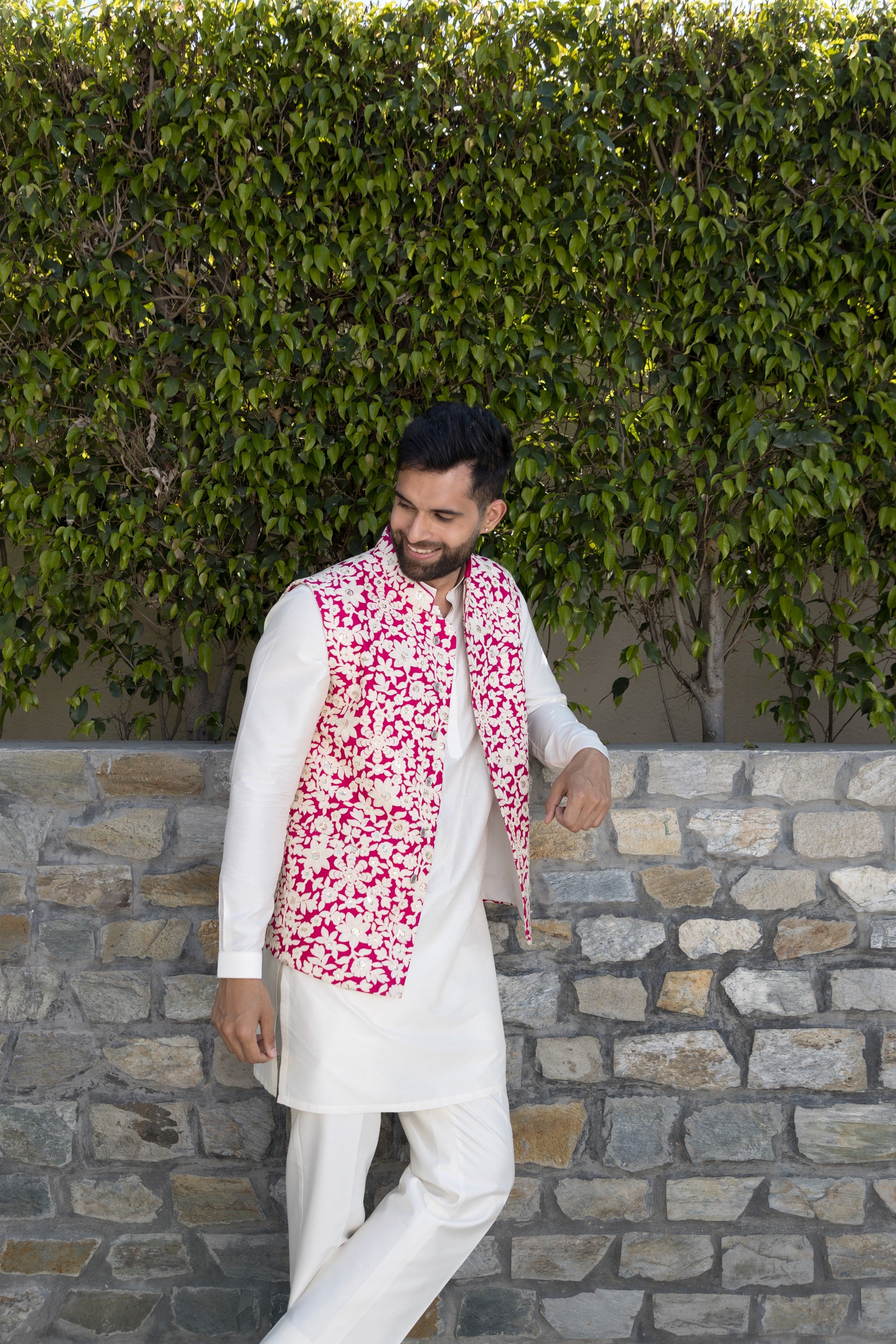 The white and pink bundi set, crafted from luxurious silk fabric