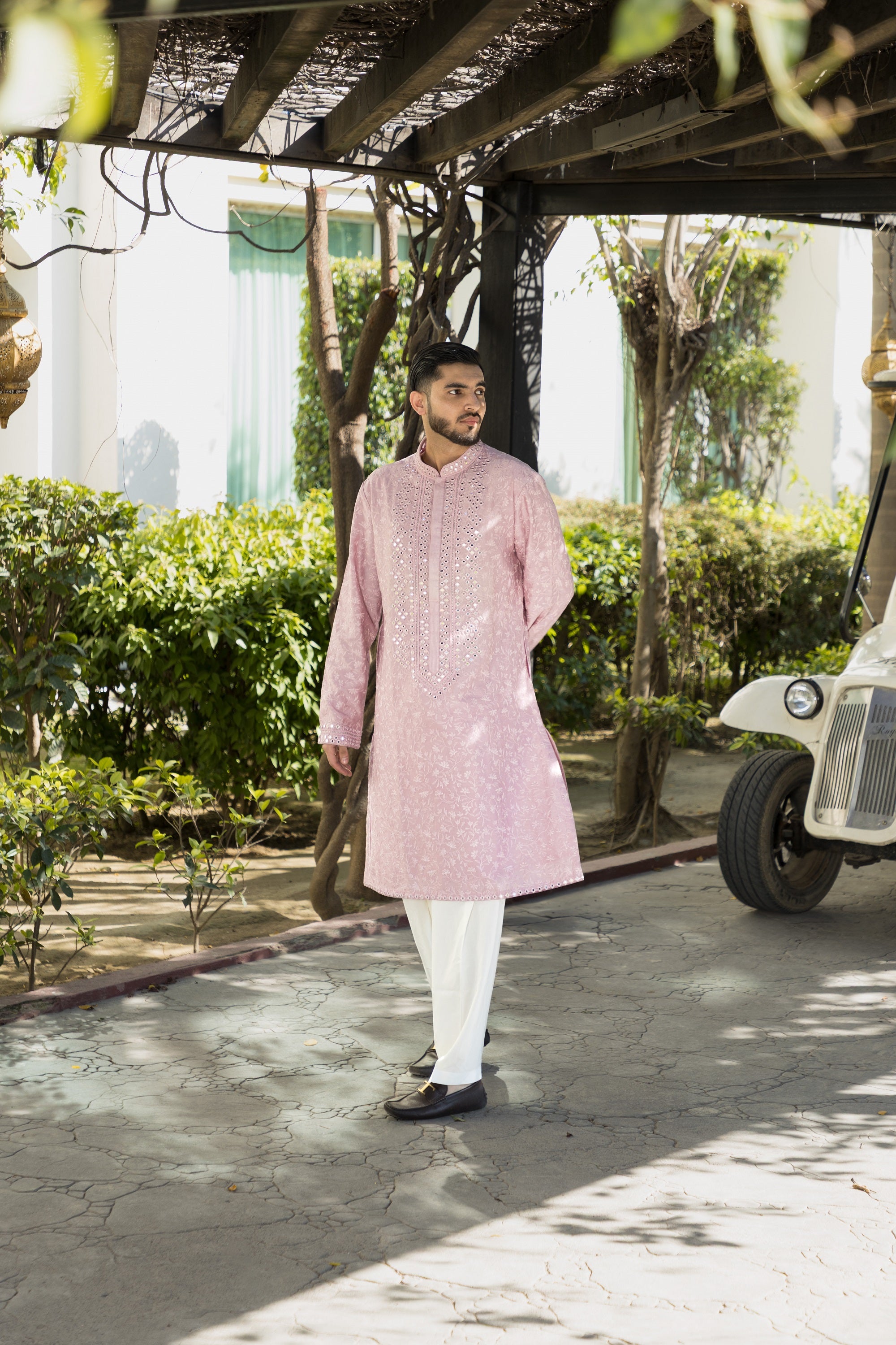 The pink kurta pyjama, made from exquisite silk fabric