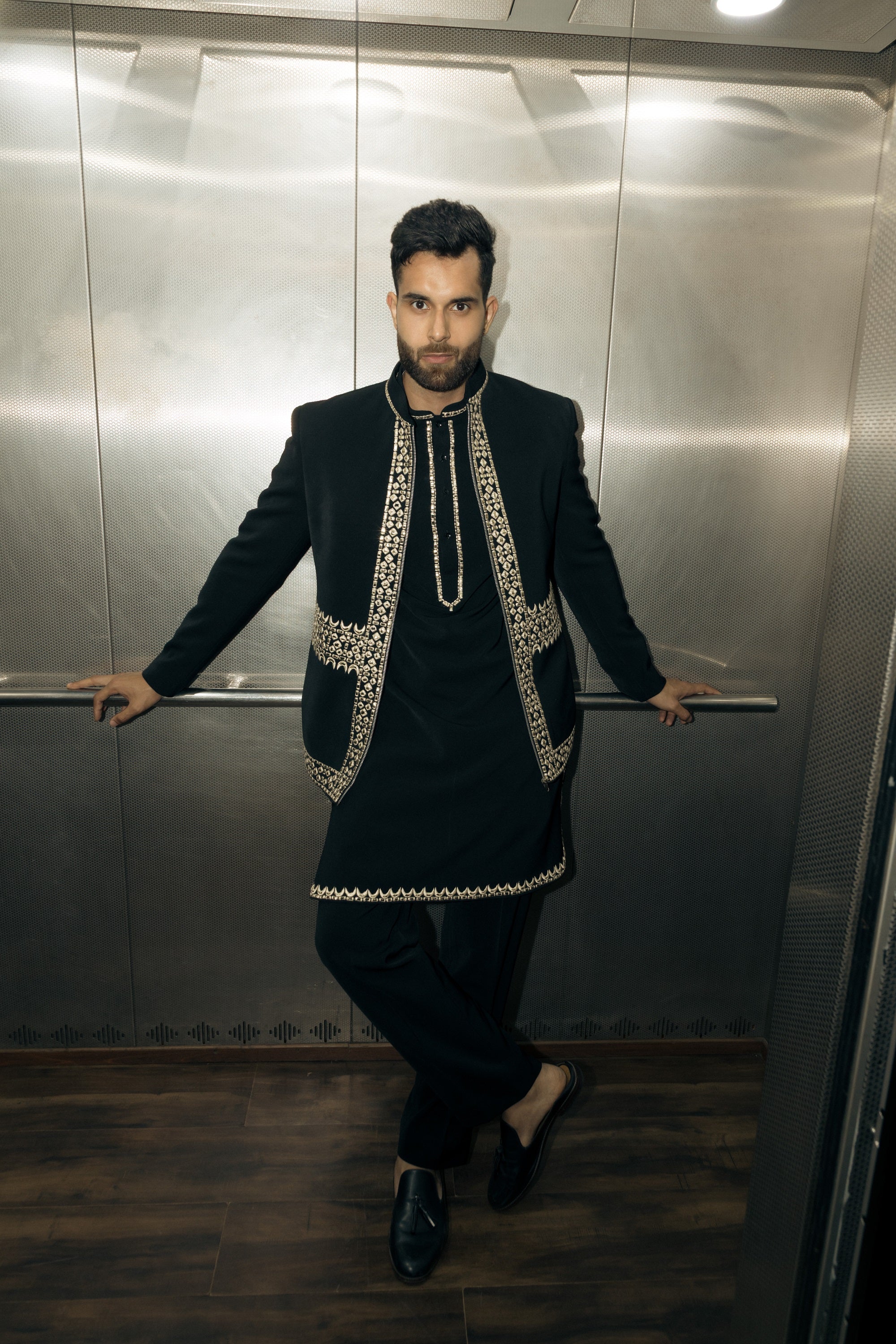 The black jodhpuri set, crafted from premium italian stretch fabric