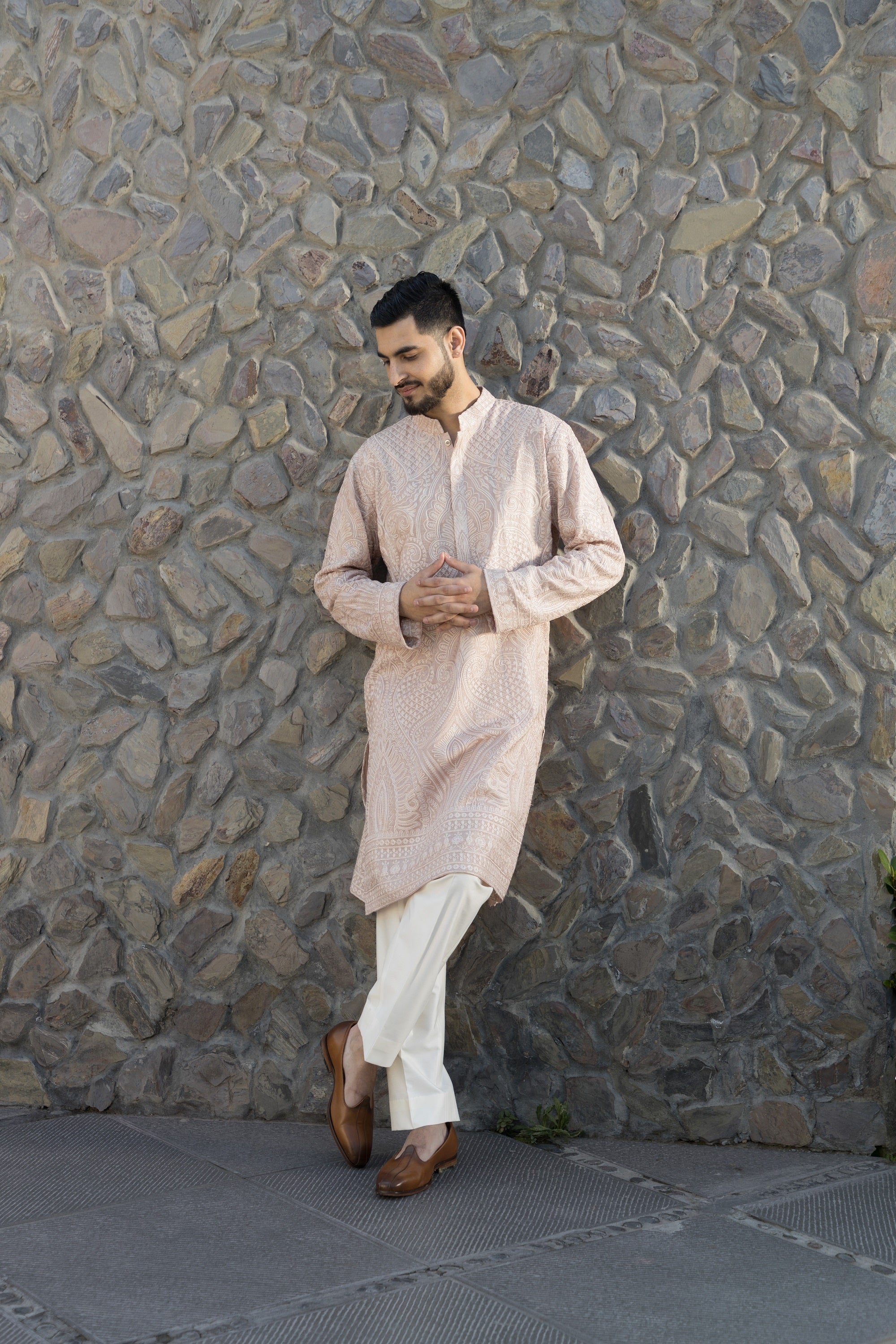 The pink kurta with pyjama, made from a soft silk cotton fabric