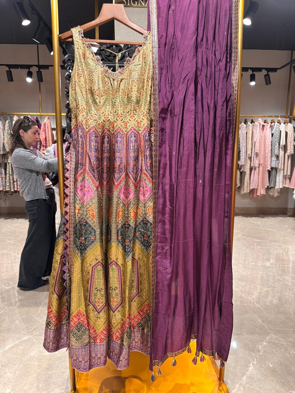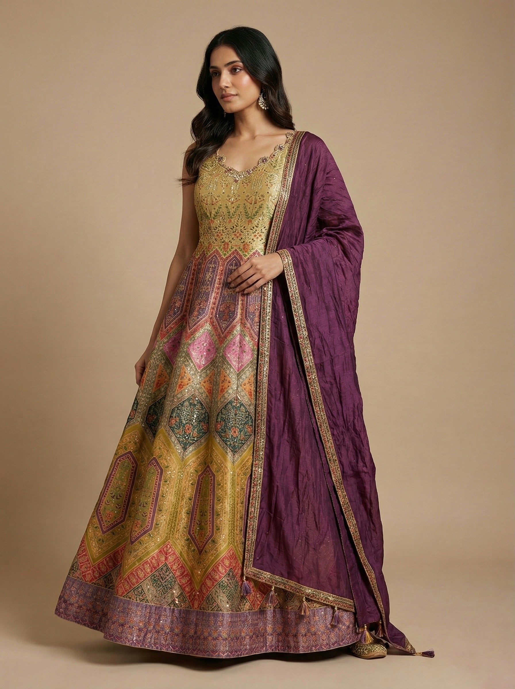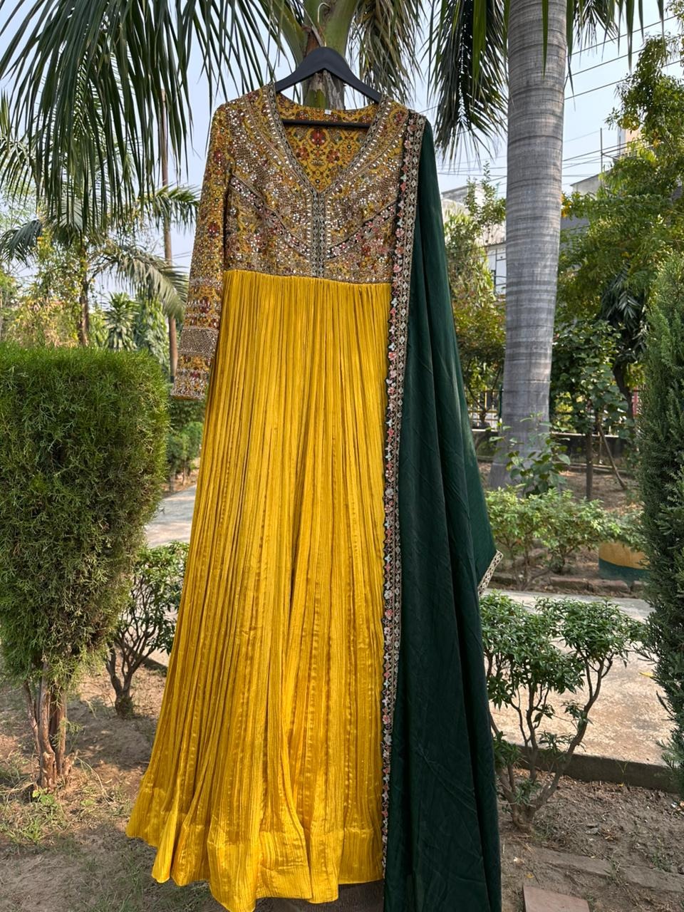Stunning yellow anarkali set.
