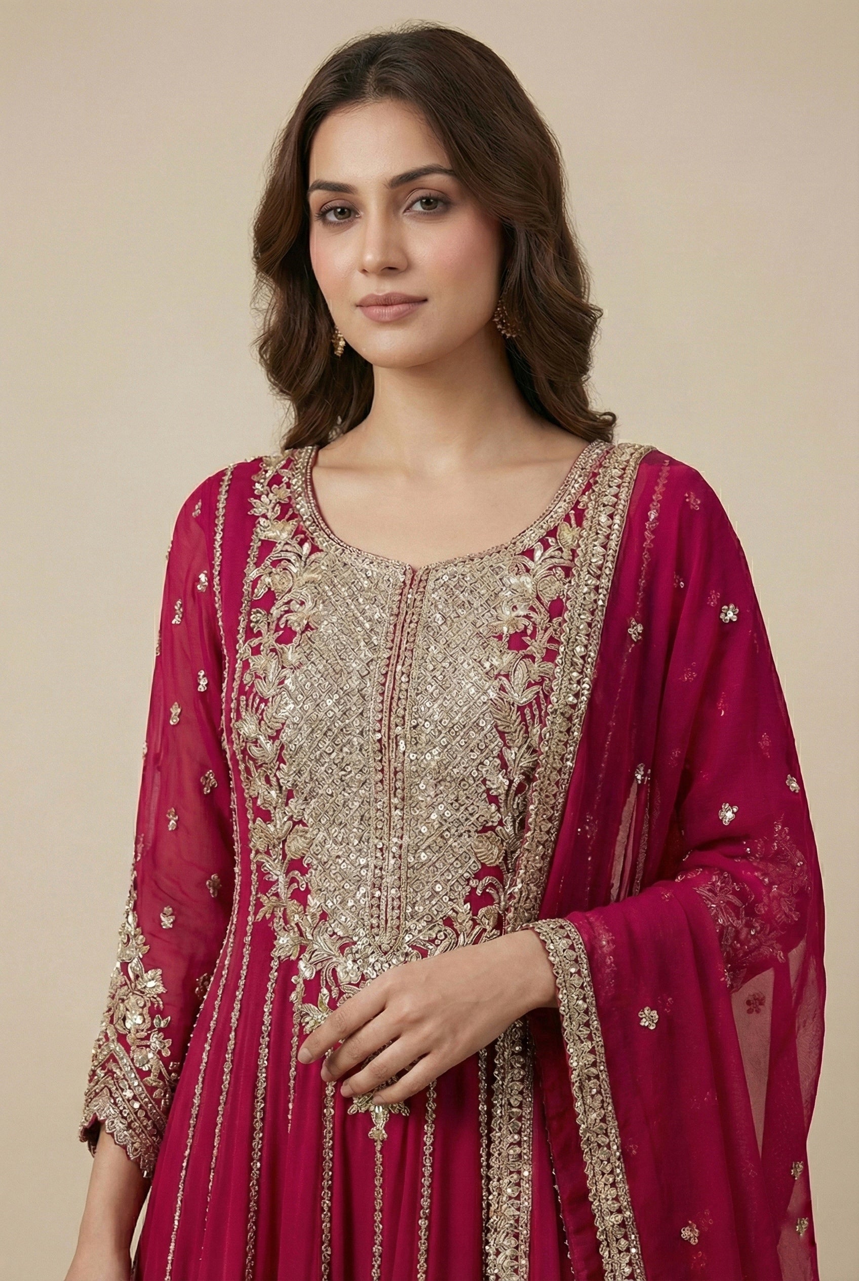 Noor - dabka zardozi embroidered chanderi silk hotpink anarkali set
