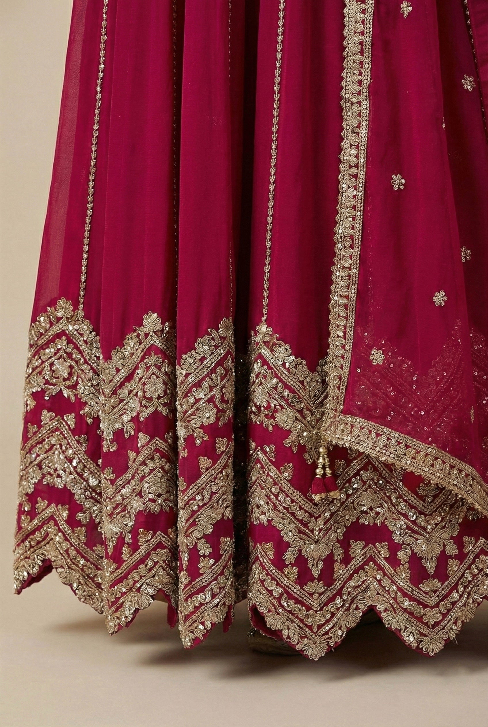 Zainah - dabka zardozi embroidered silk hotpink anarkali set