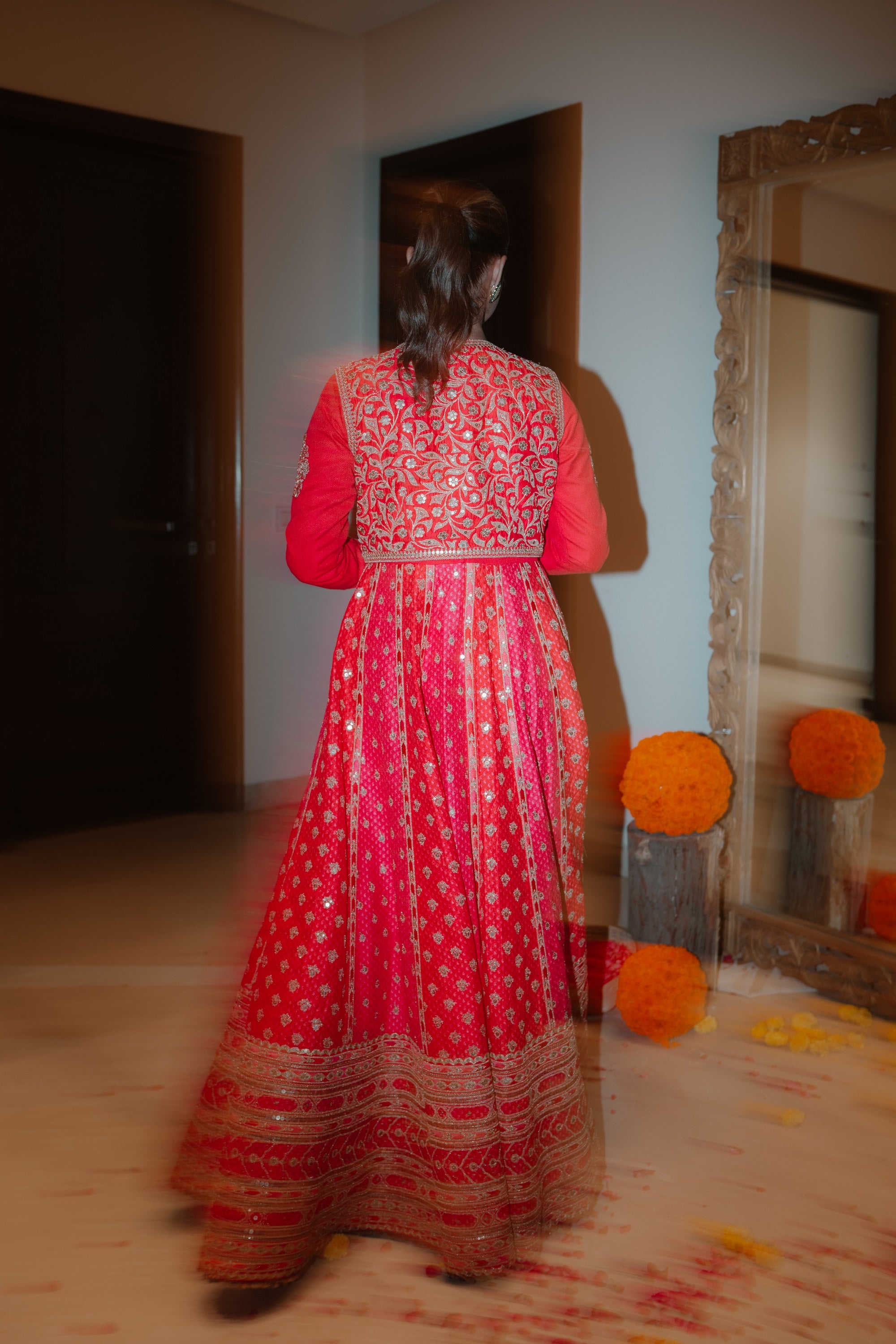 Shimmer silk embroidered anarkali set