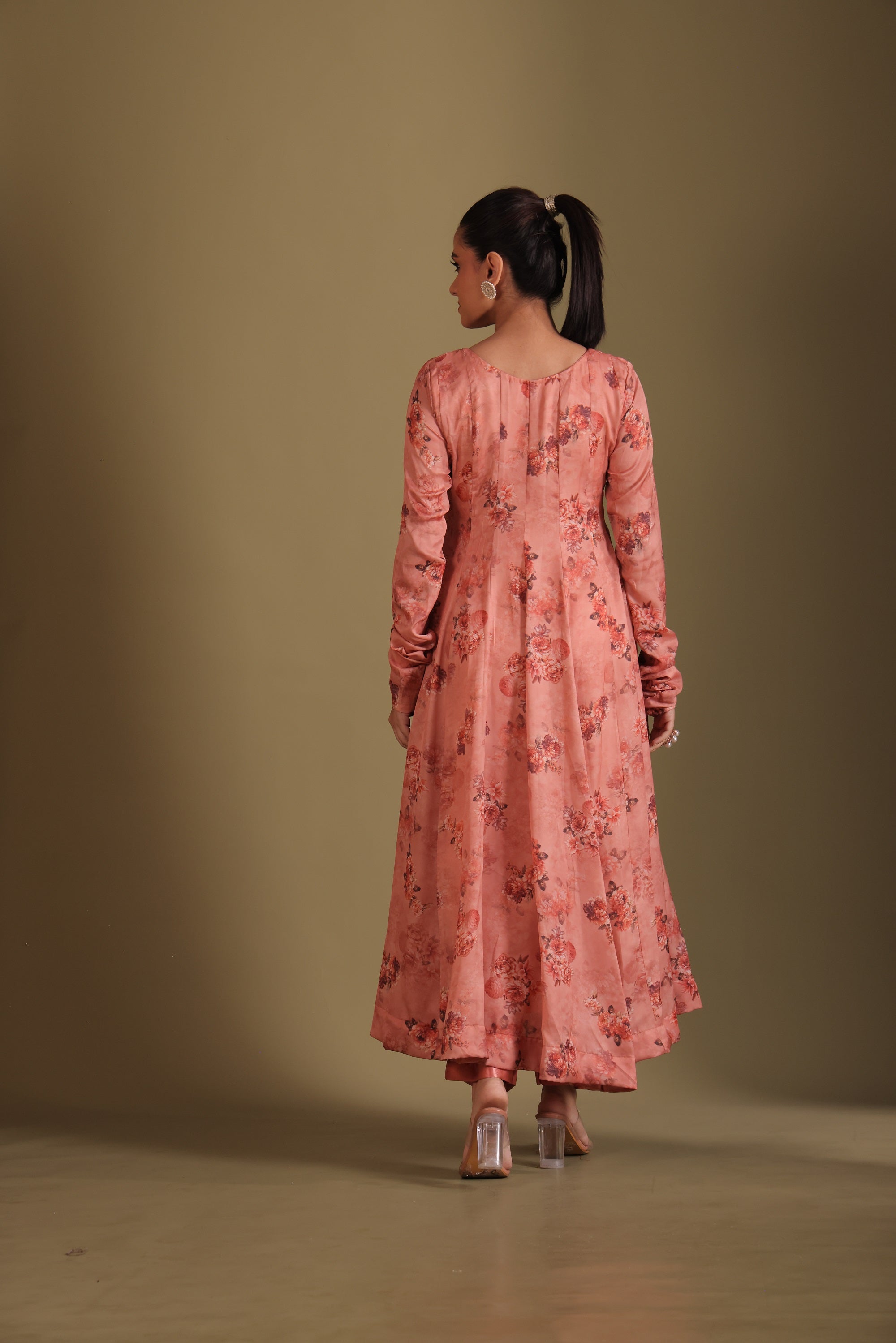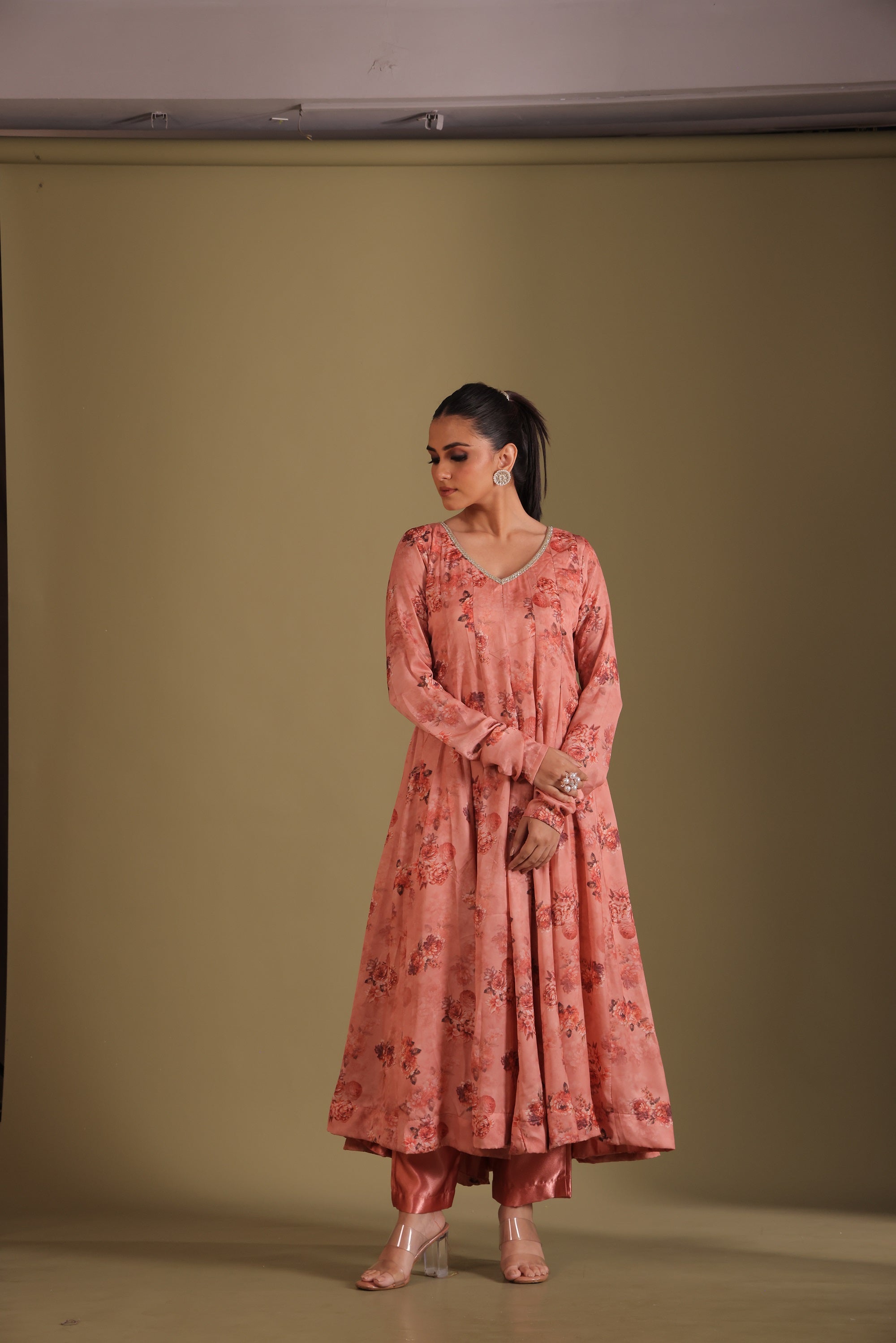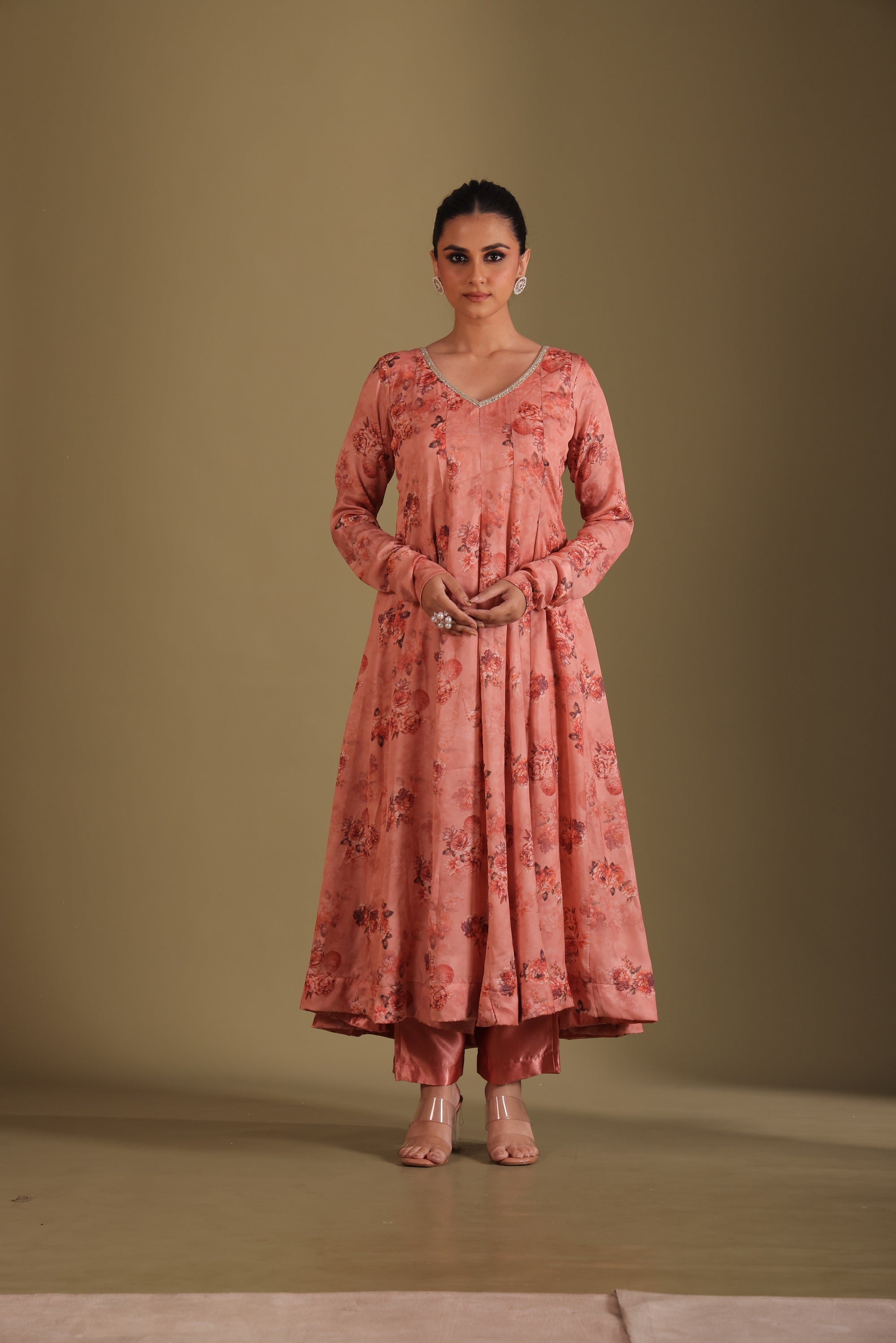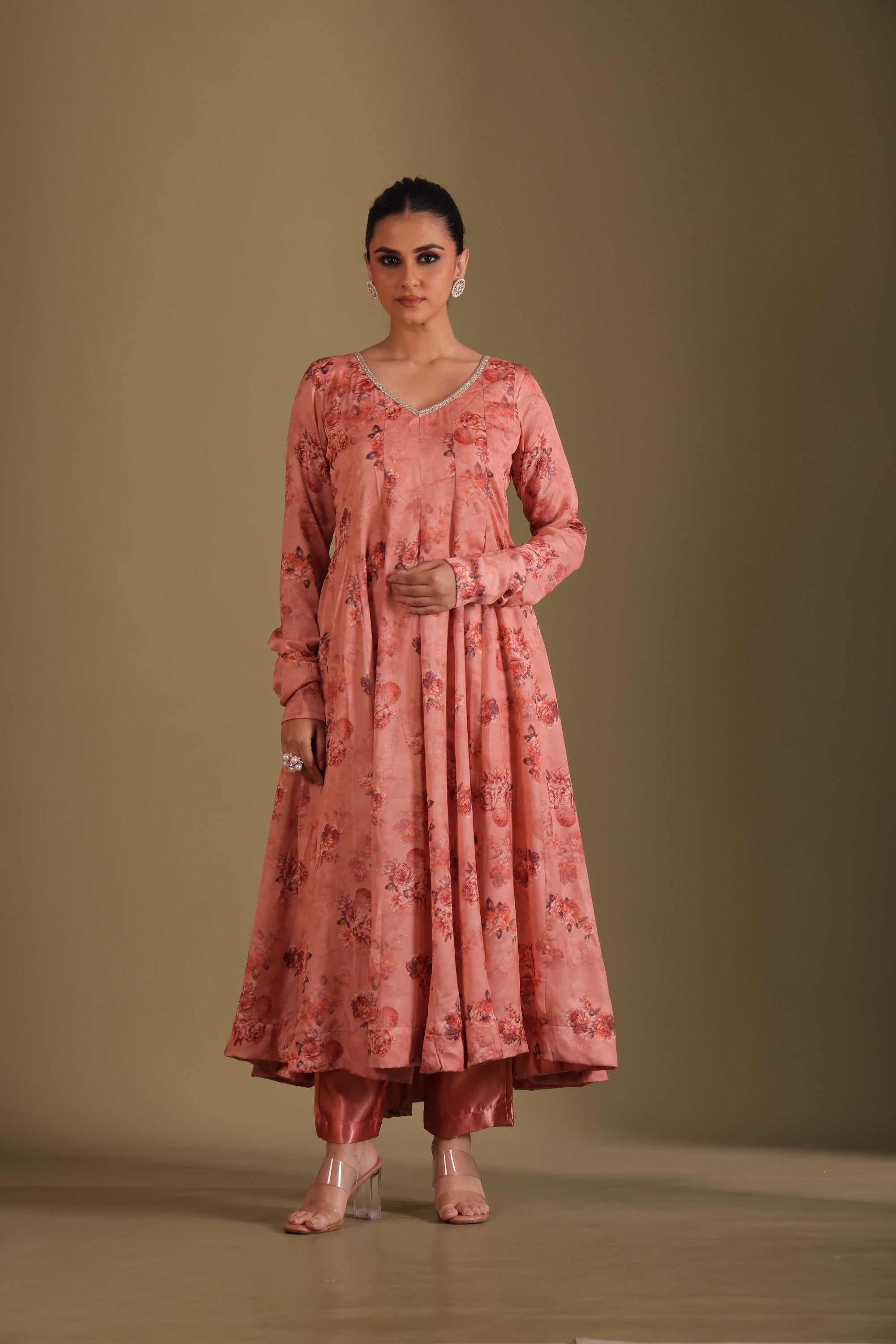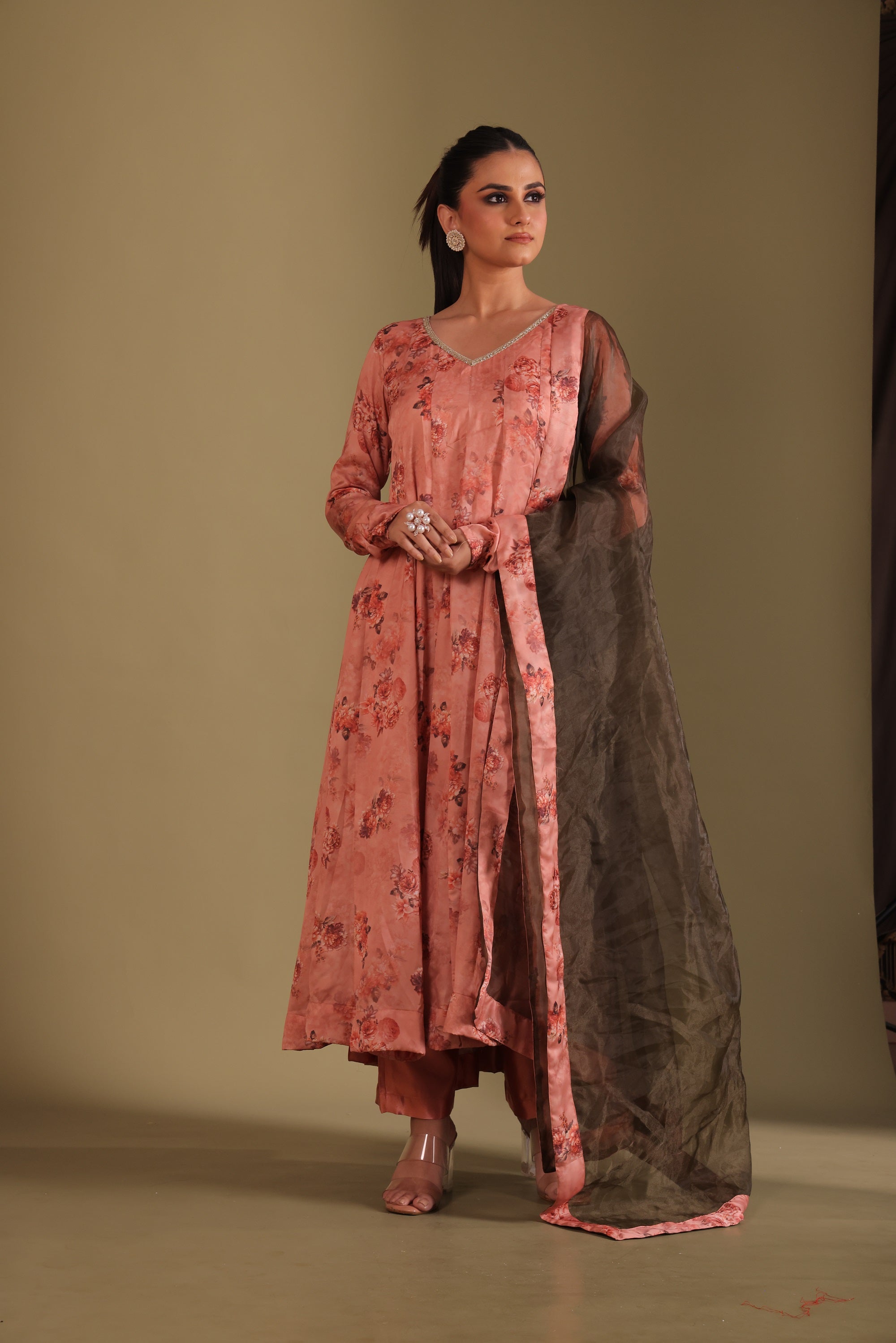 Mastani rust orange chanderi anarkali and pant with dupatta- set of 3