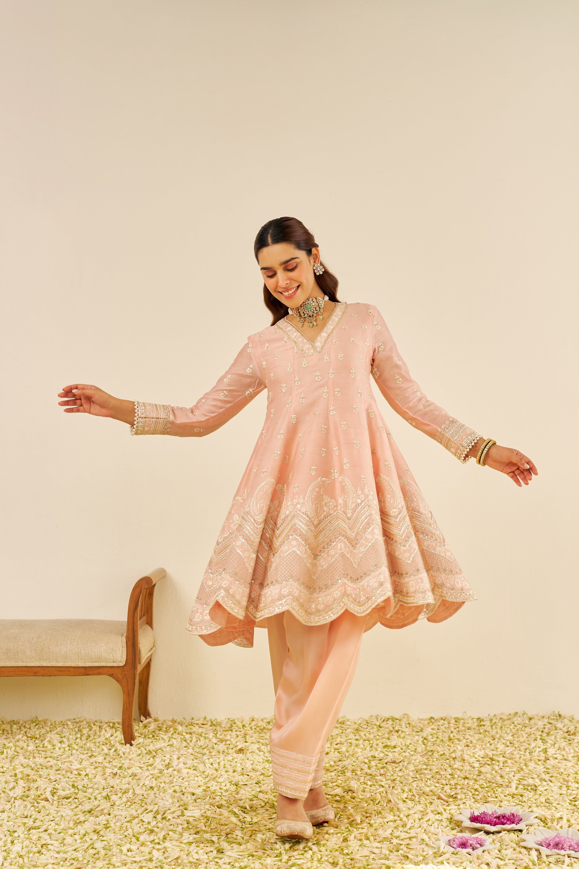 Bahaar-e-gul/meeram/off rose anarkali set