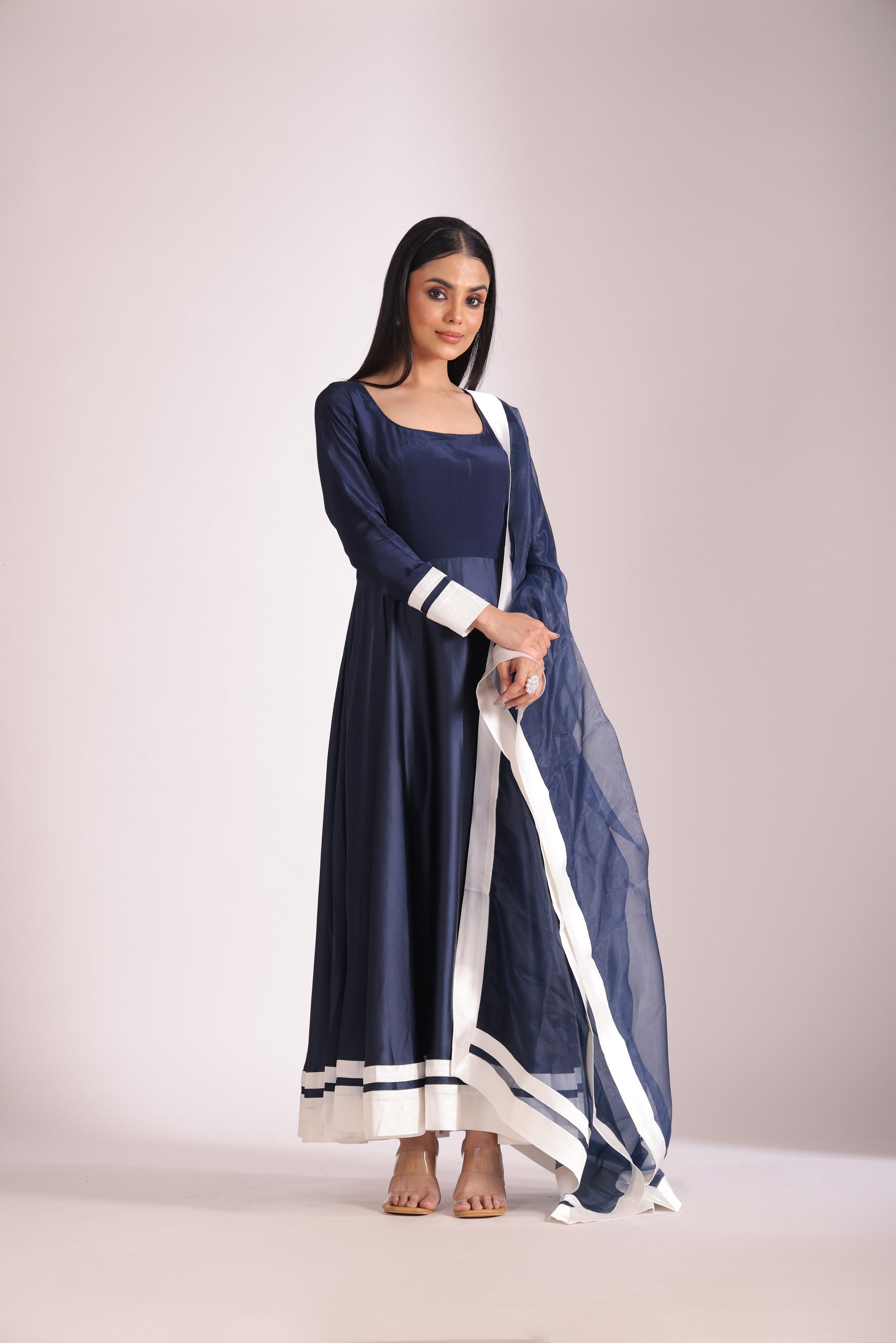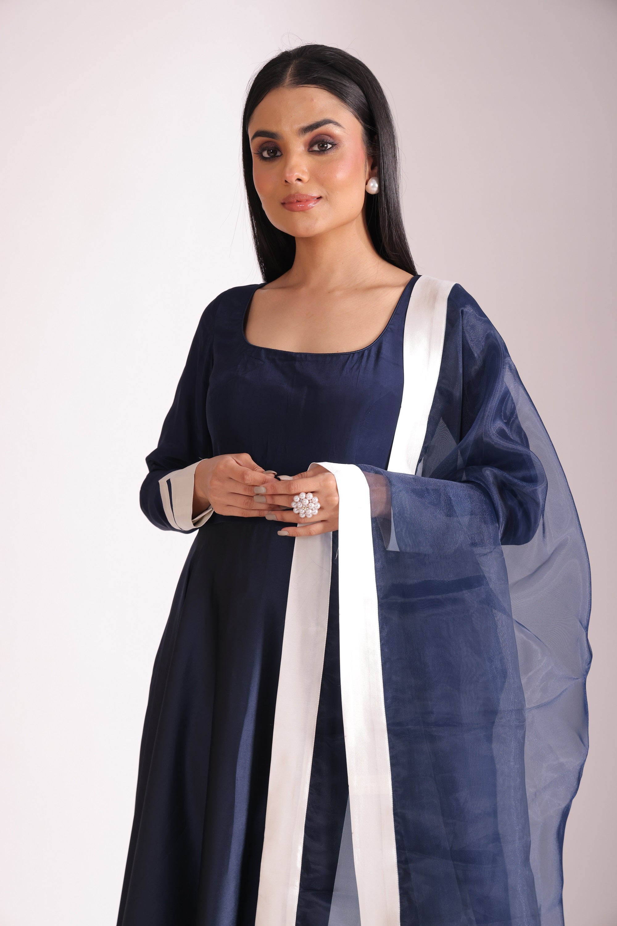 Jhalak navy blue anarkali with chooridar and dupatta- set of 3