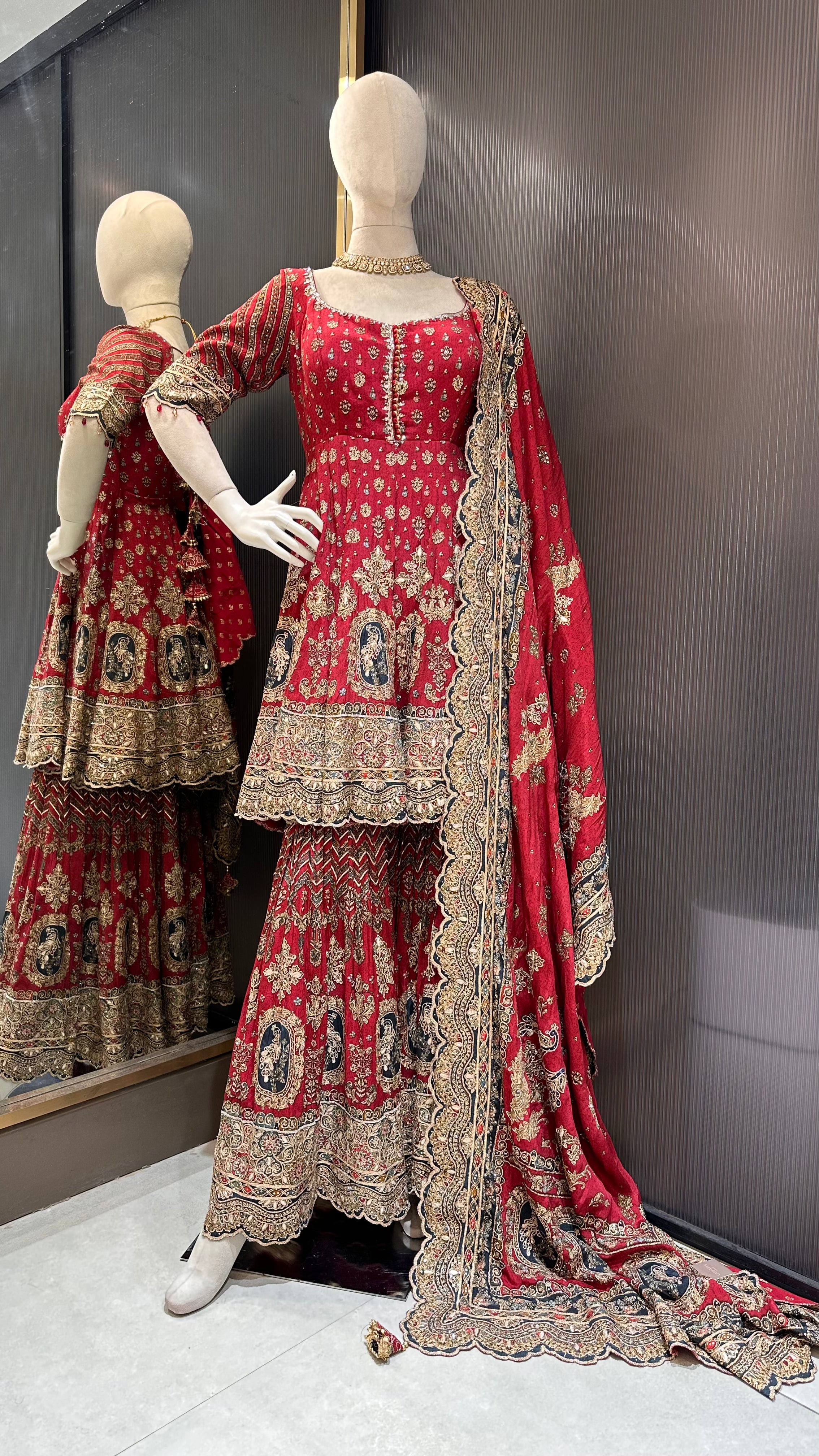 Maroon short anarkali paired with a garara
