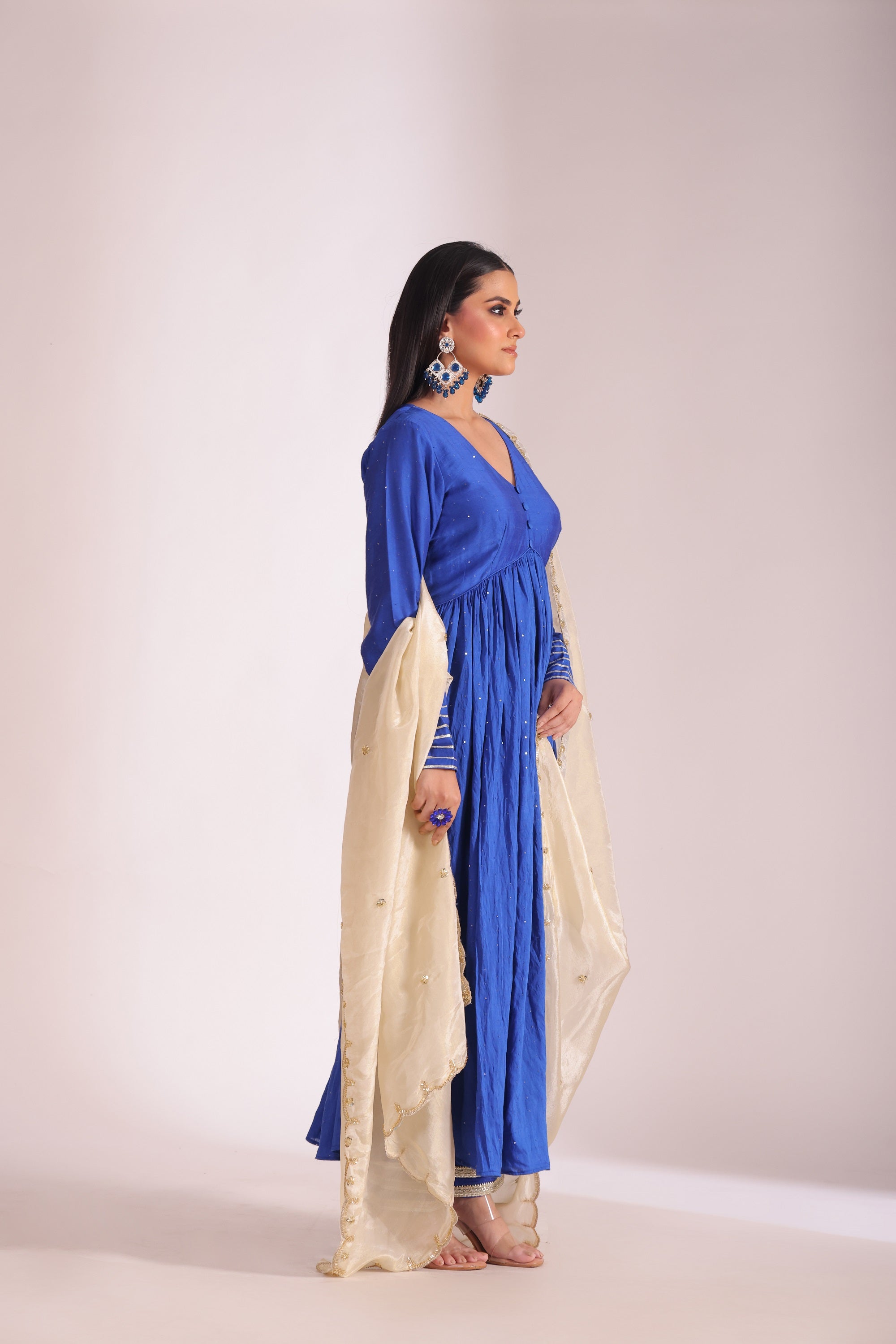 Mastani blue chanderi anarkali and pant with dupatta- set of 3