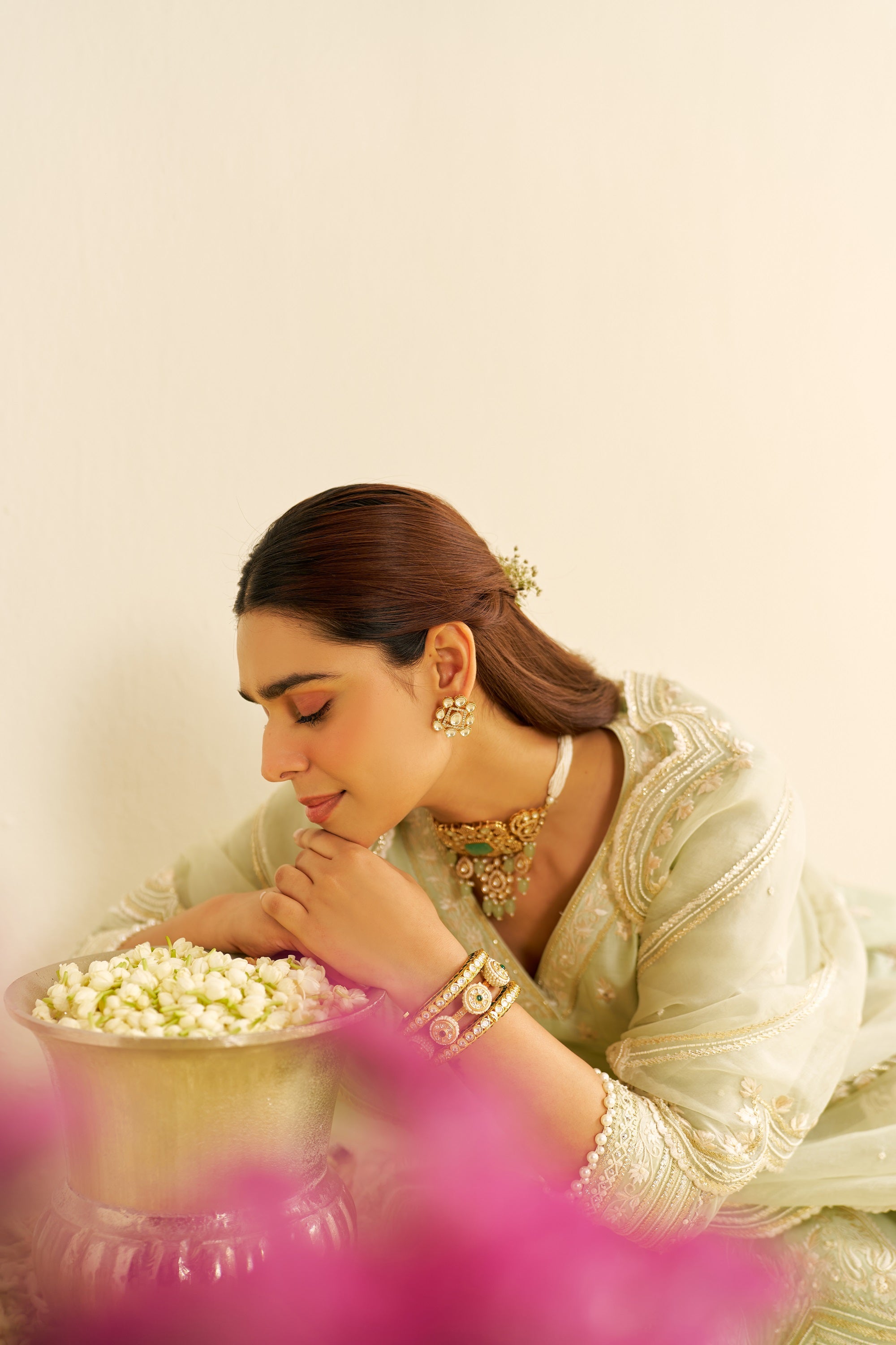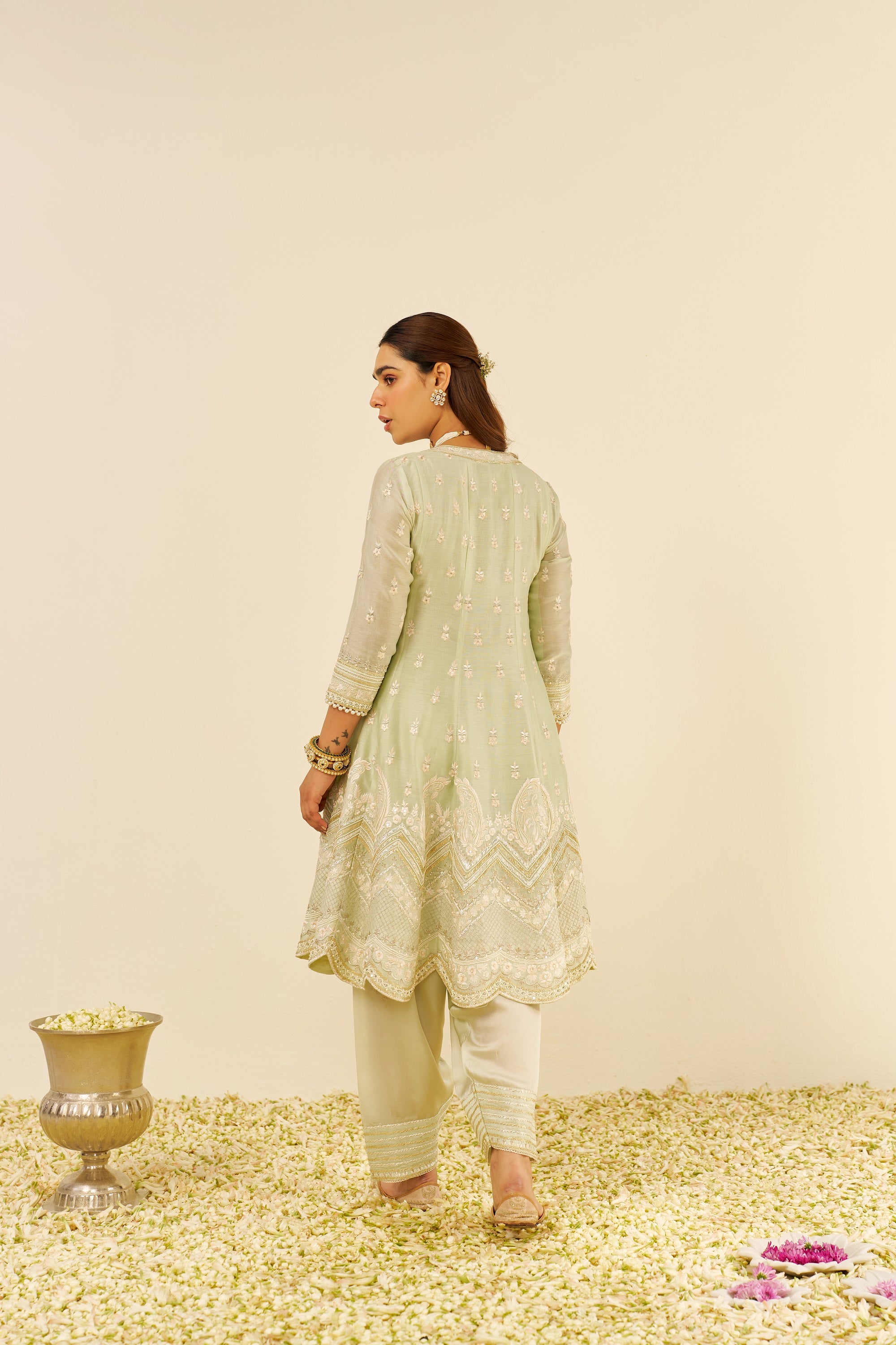 Bahaar-E-Gul/Meeram/Mint Green Silk Chanderi Kurta With Bamberg Satin Bottom