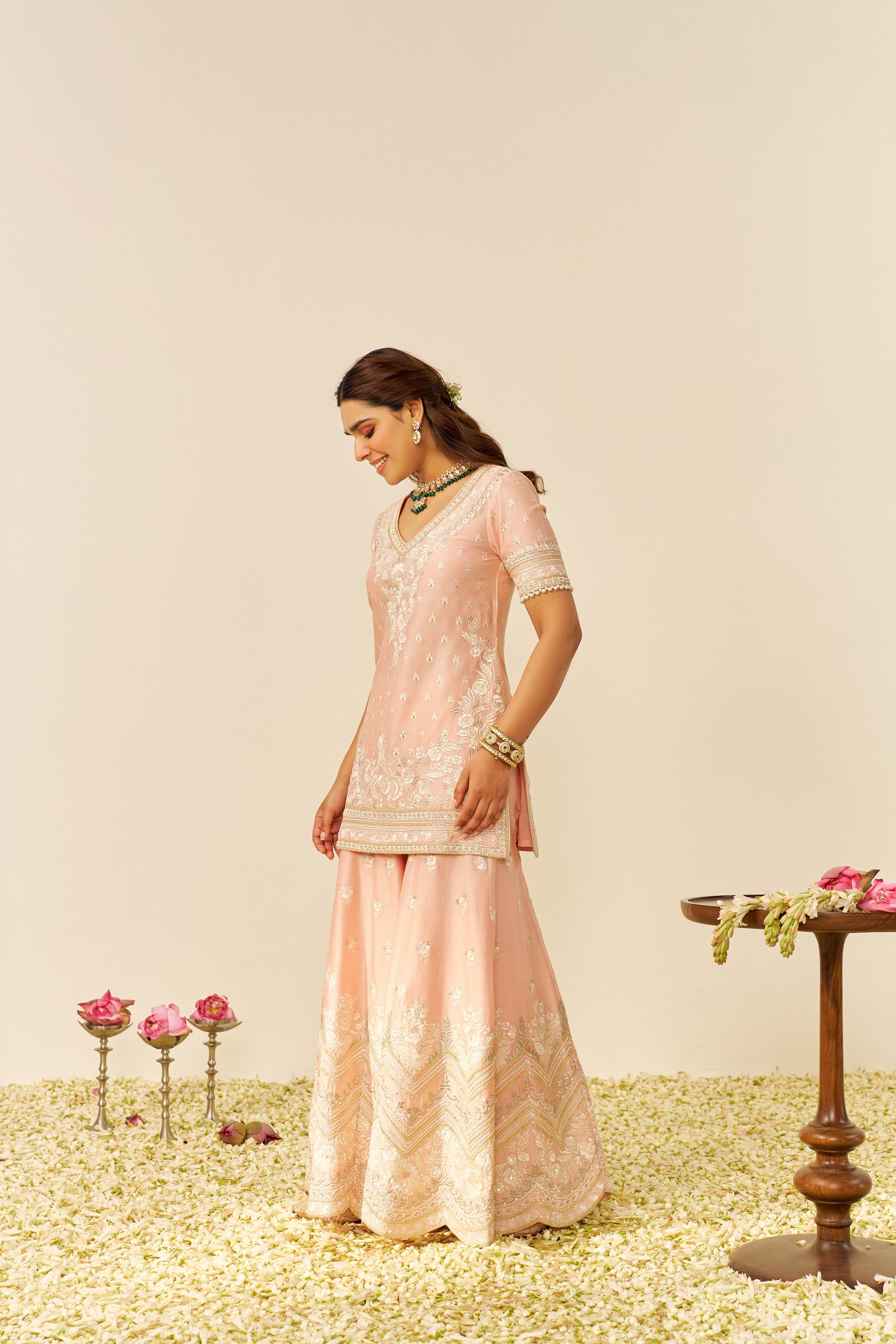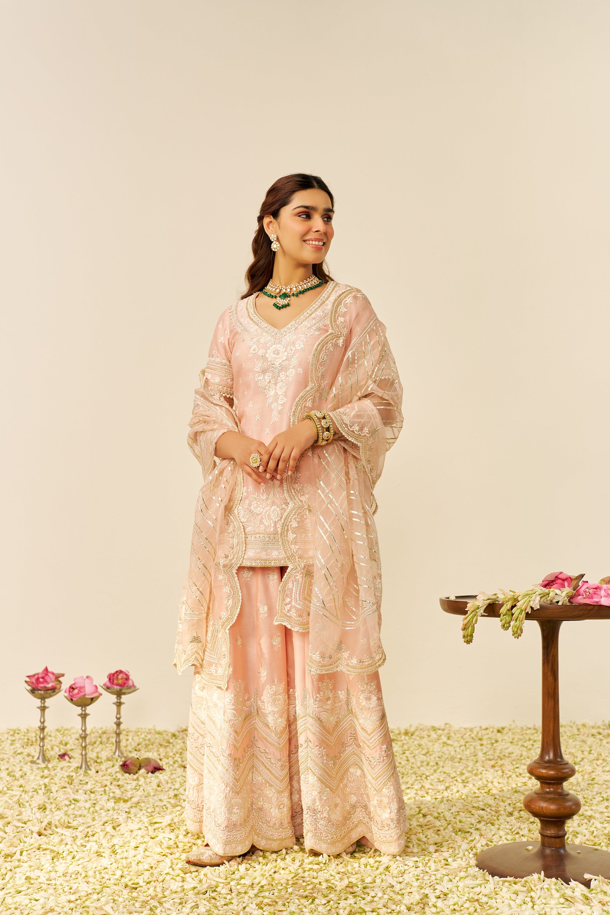 Bahaar-E-Gul/Sameeha/Off Rose Silk Chanderi Kurta & Bottom