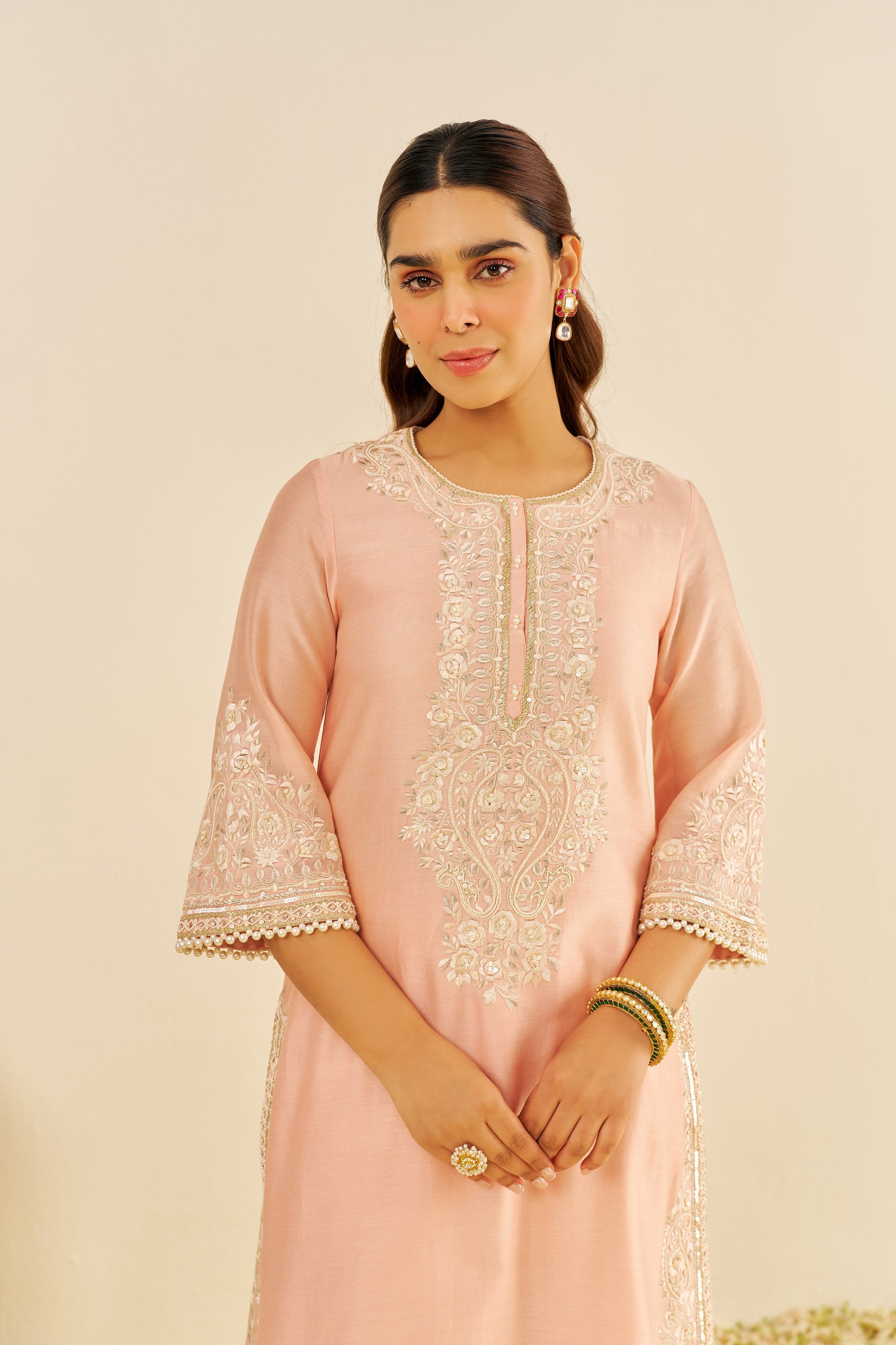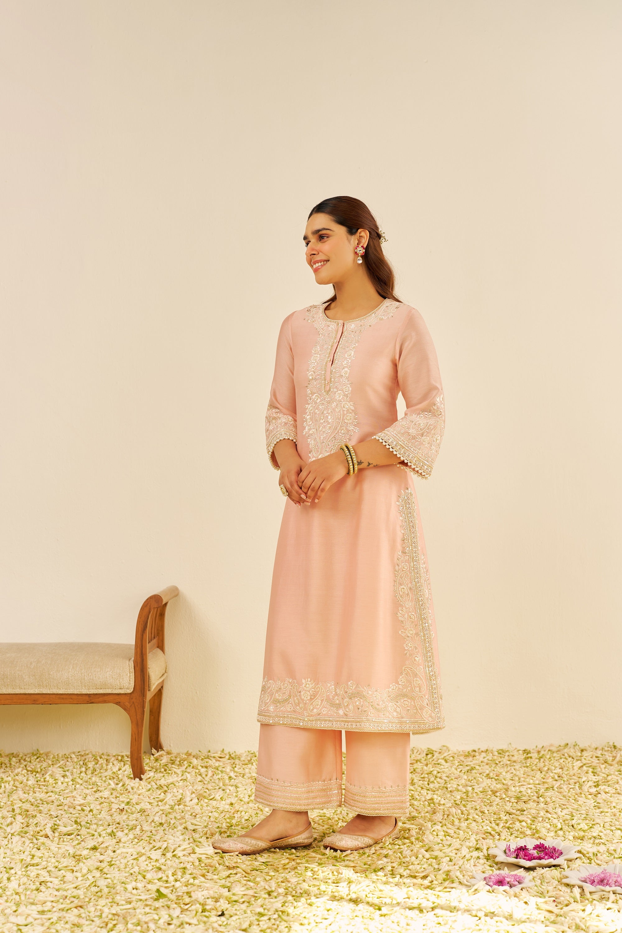 Bahaar-E-Gul/Sereen/Off Rose Silk Chanderi Kurta & Bottom