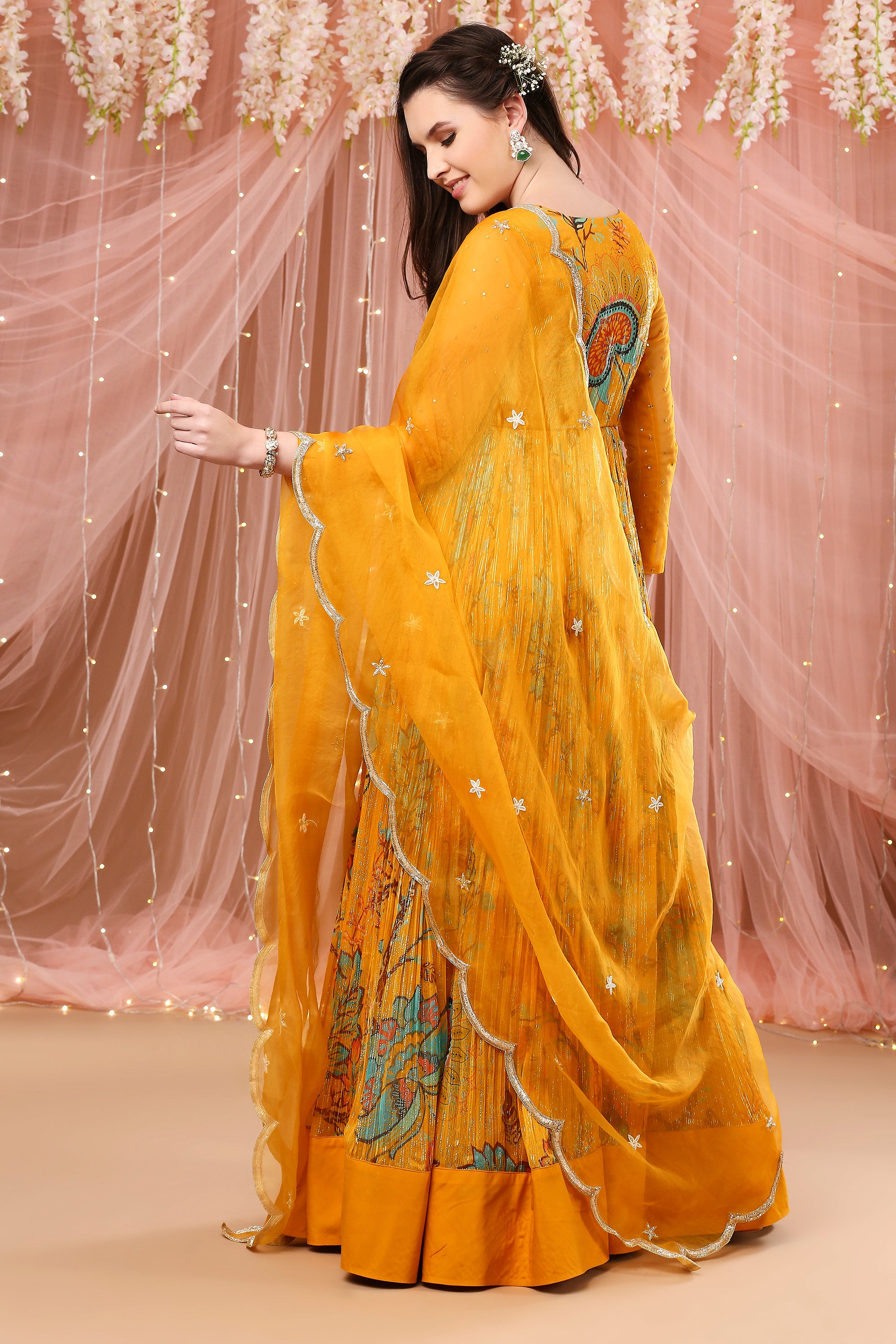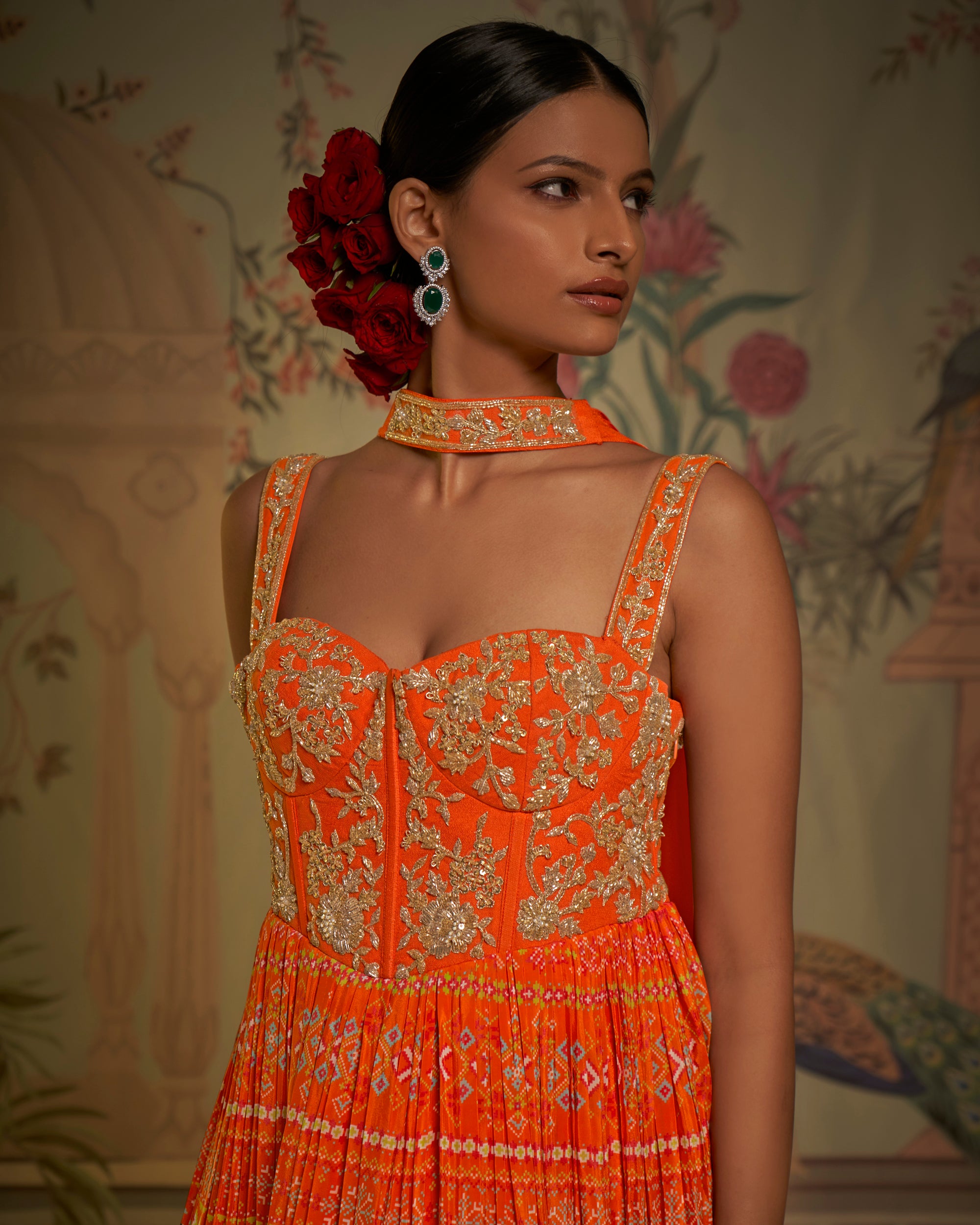 Tangerine corset anarkali