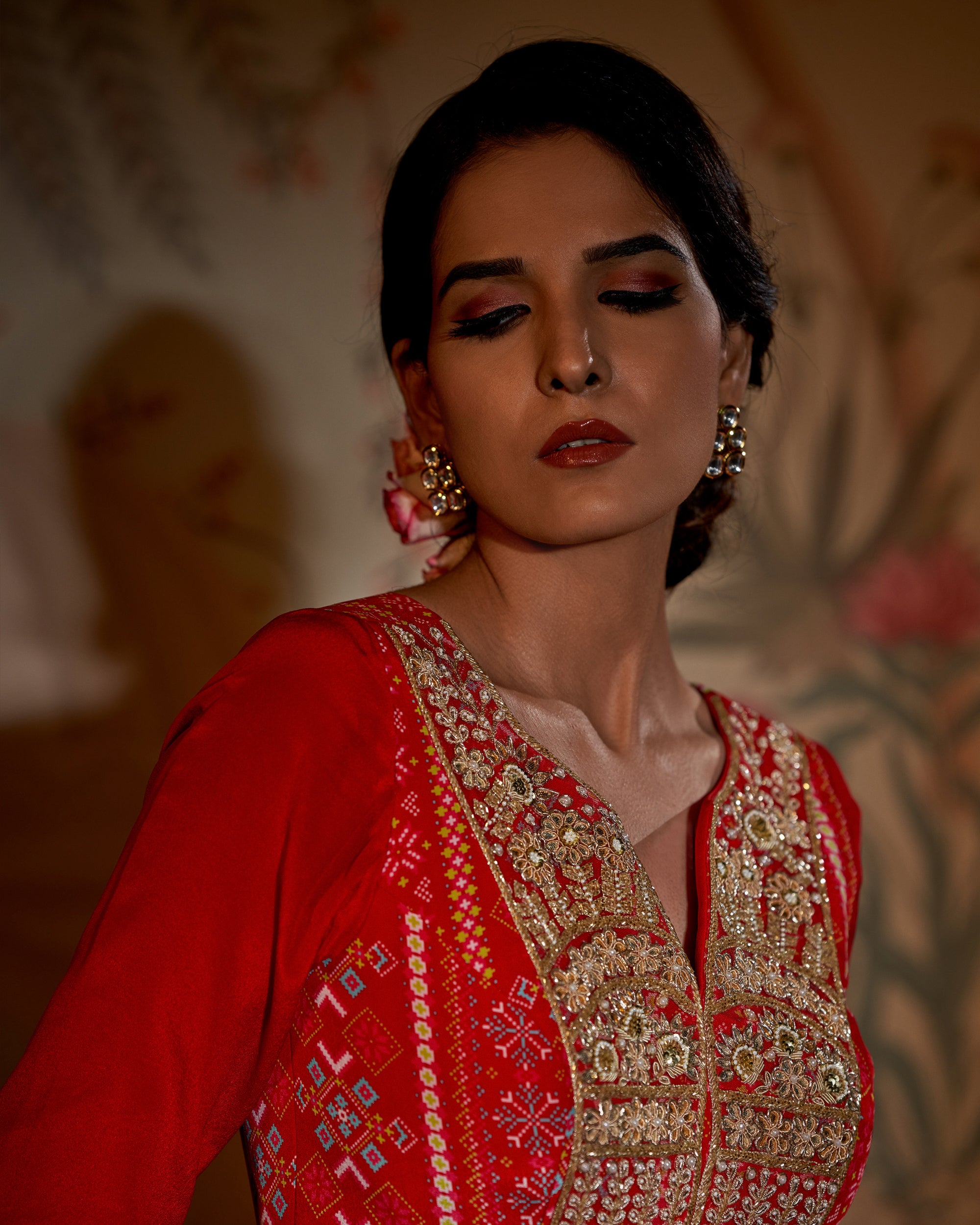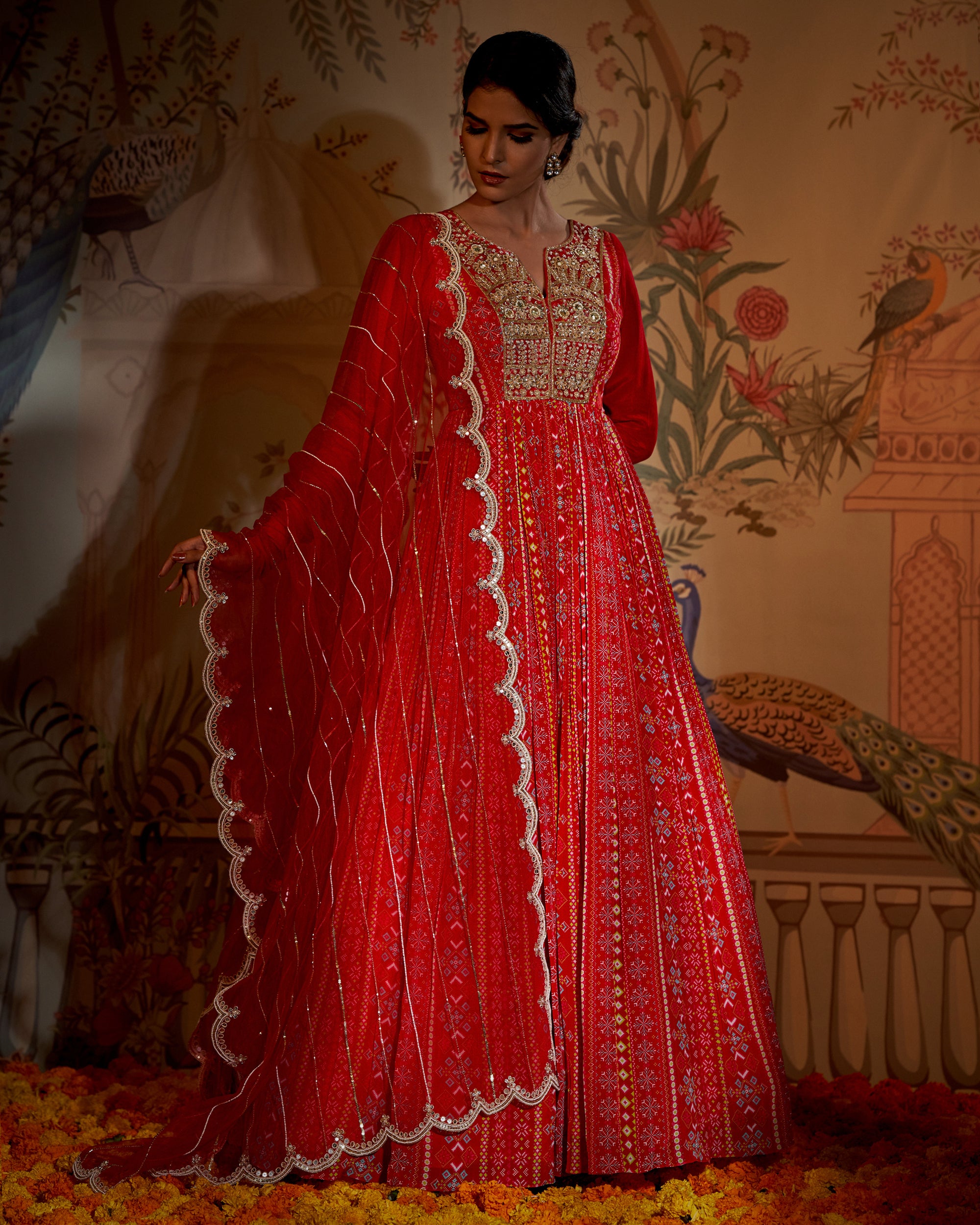 Scarlet yoke patola anarkali