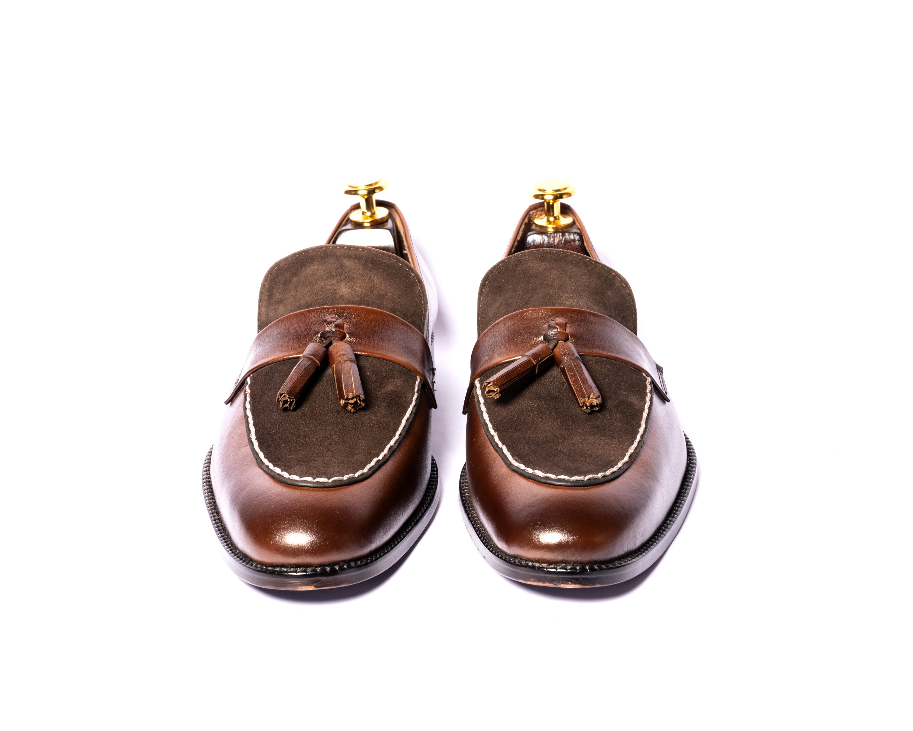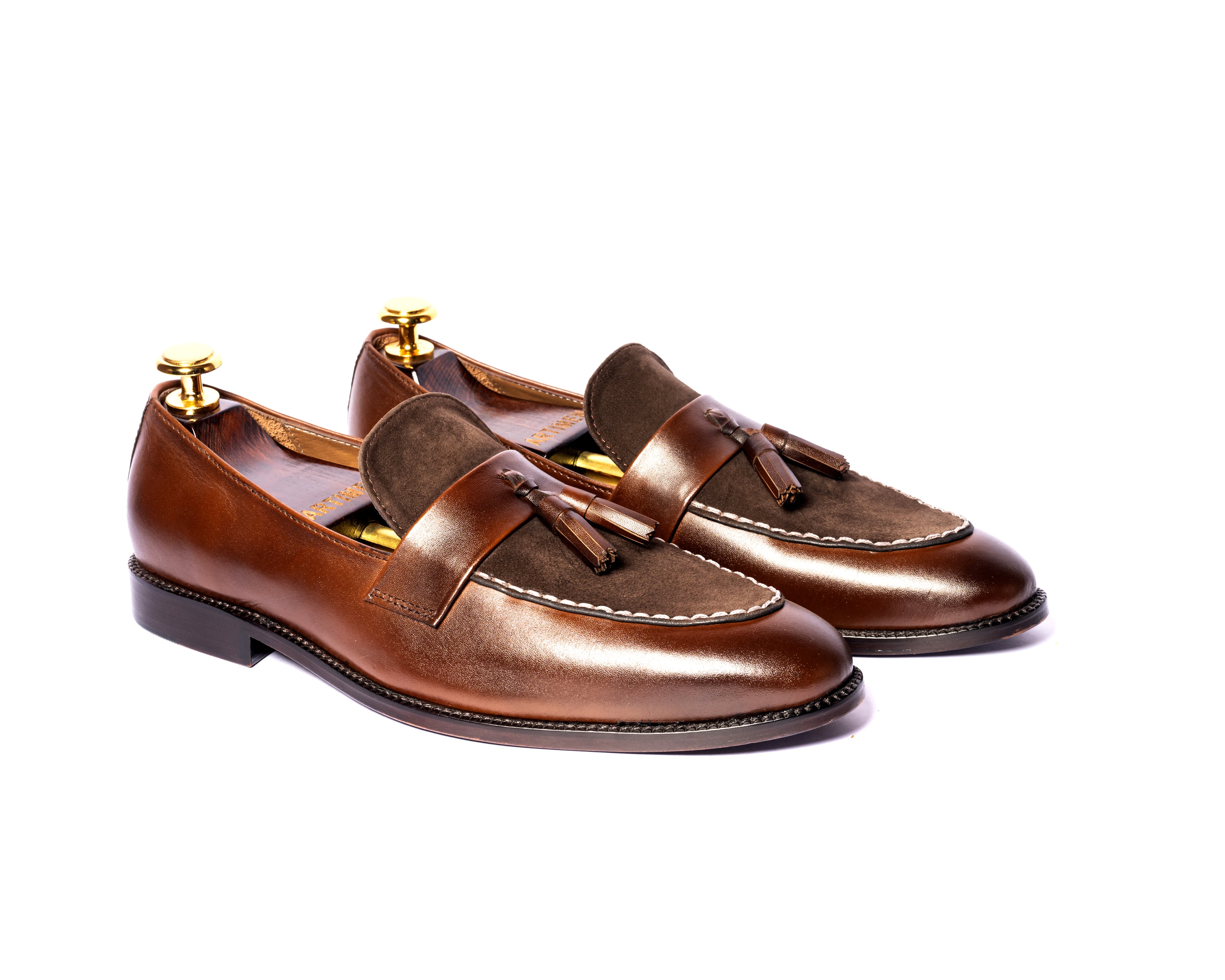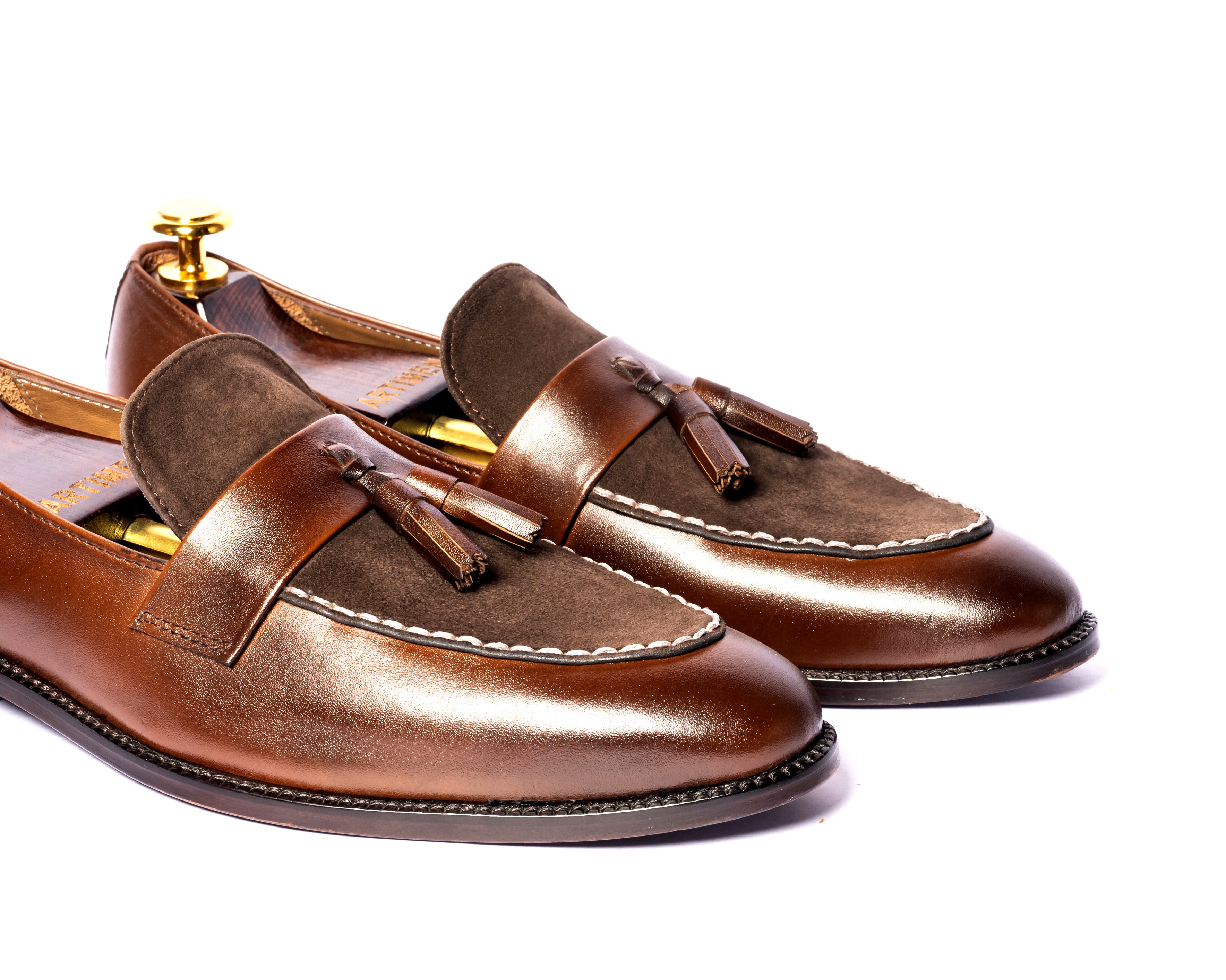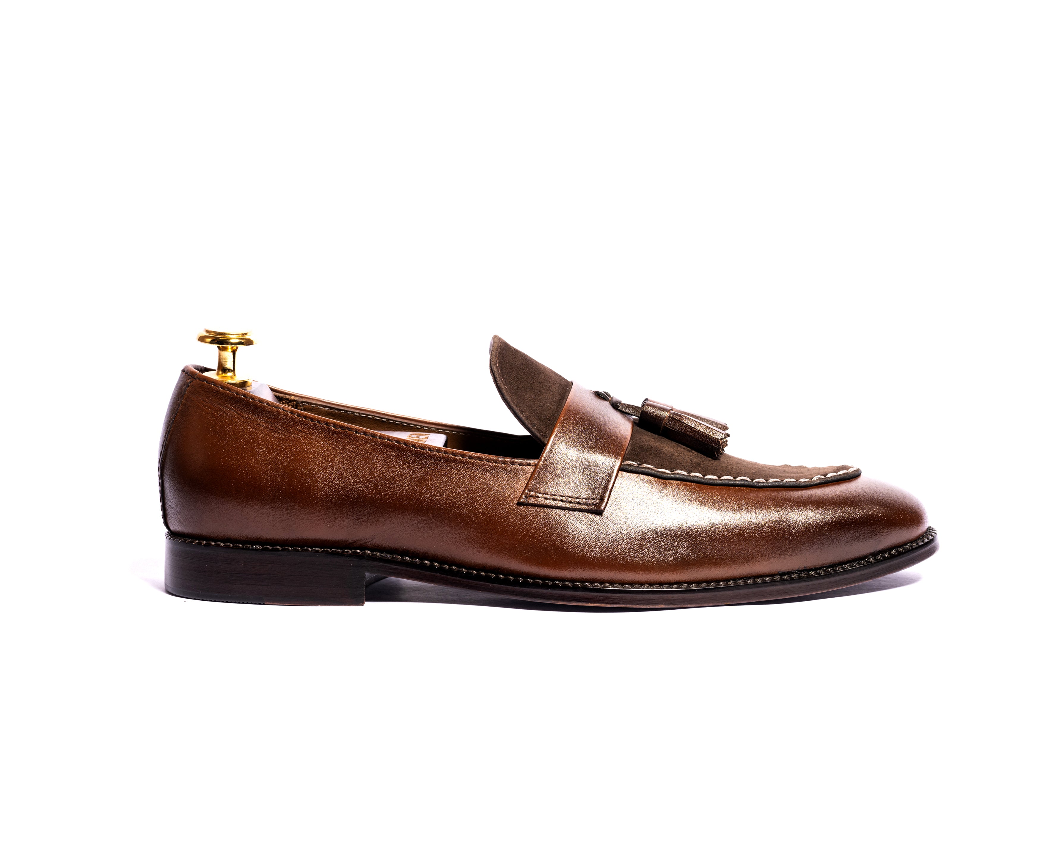 | Brevett Tassel One of the most liked design from our loafers catalog. Brown with hand sprayed leather makes this pair a nice blend of dual leather tones. Totally handcrafted to fit your steps, this design can be stepped into for any mood you set yourself in. |