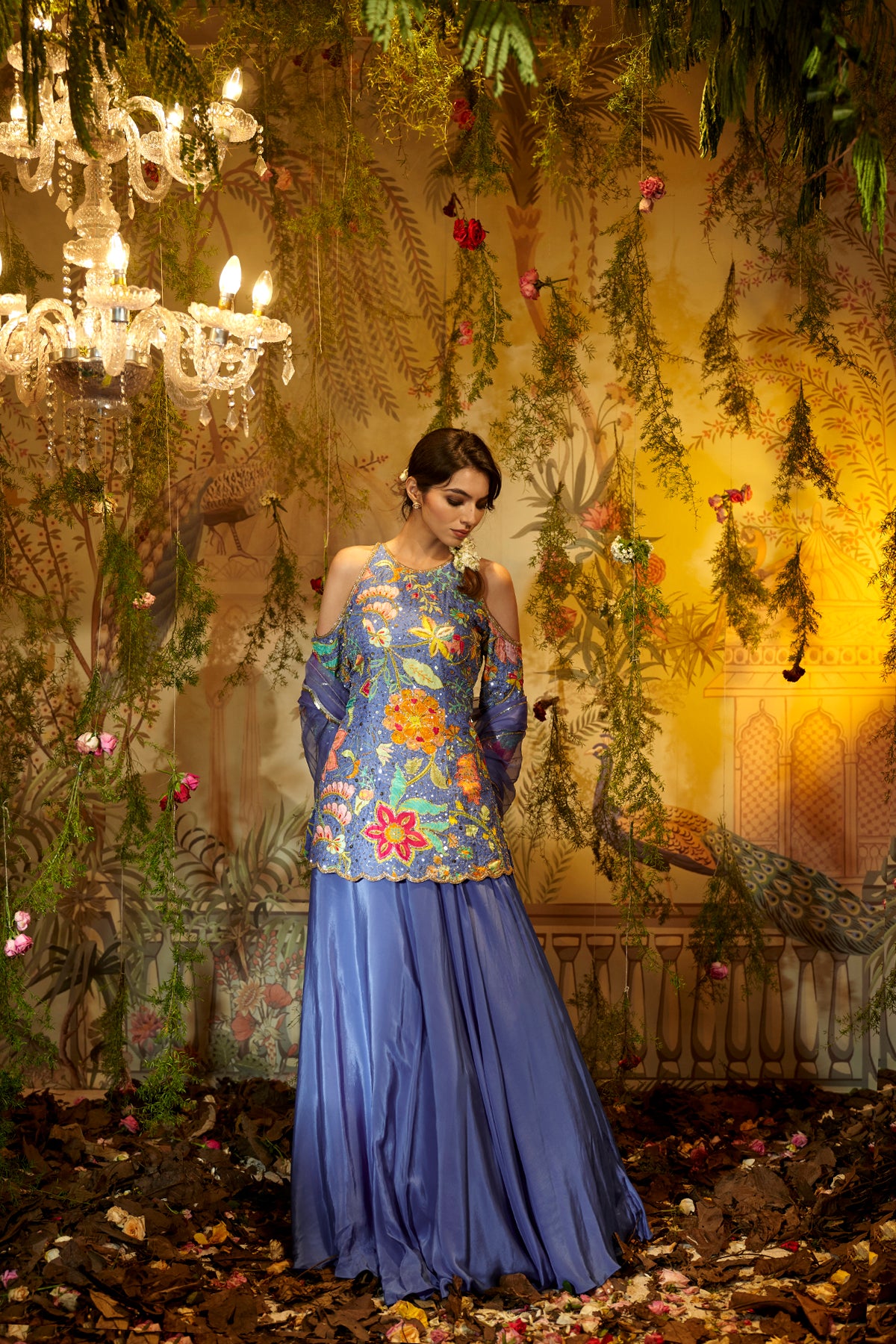 Printed mogra gharara & cape set