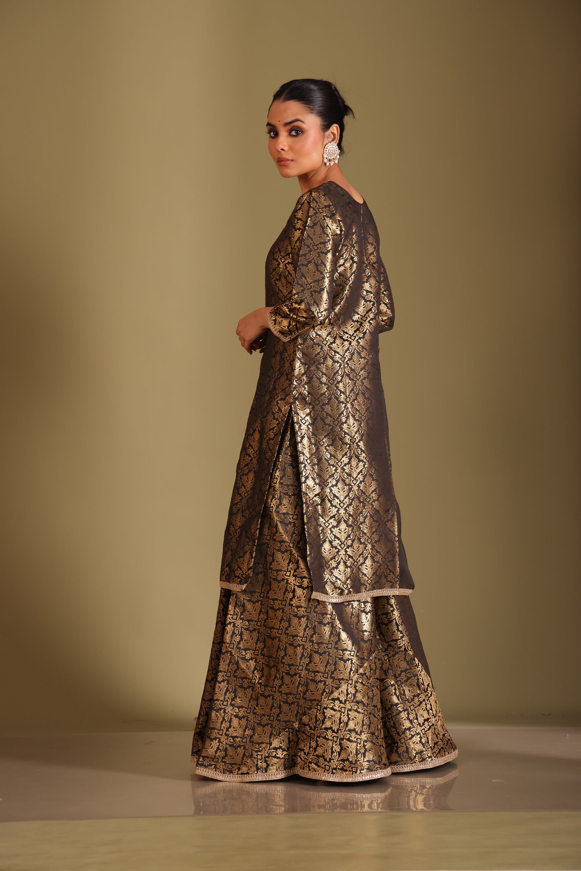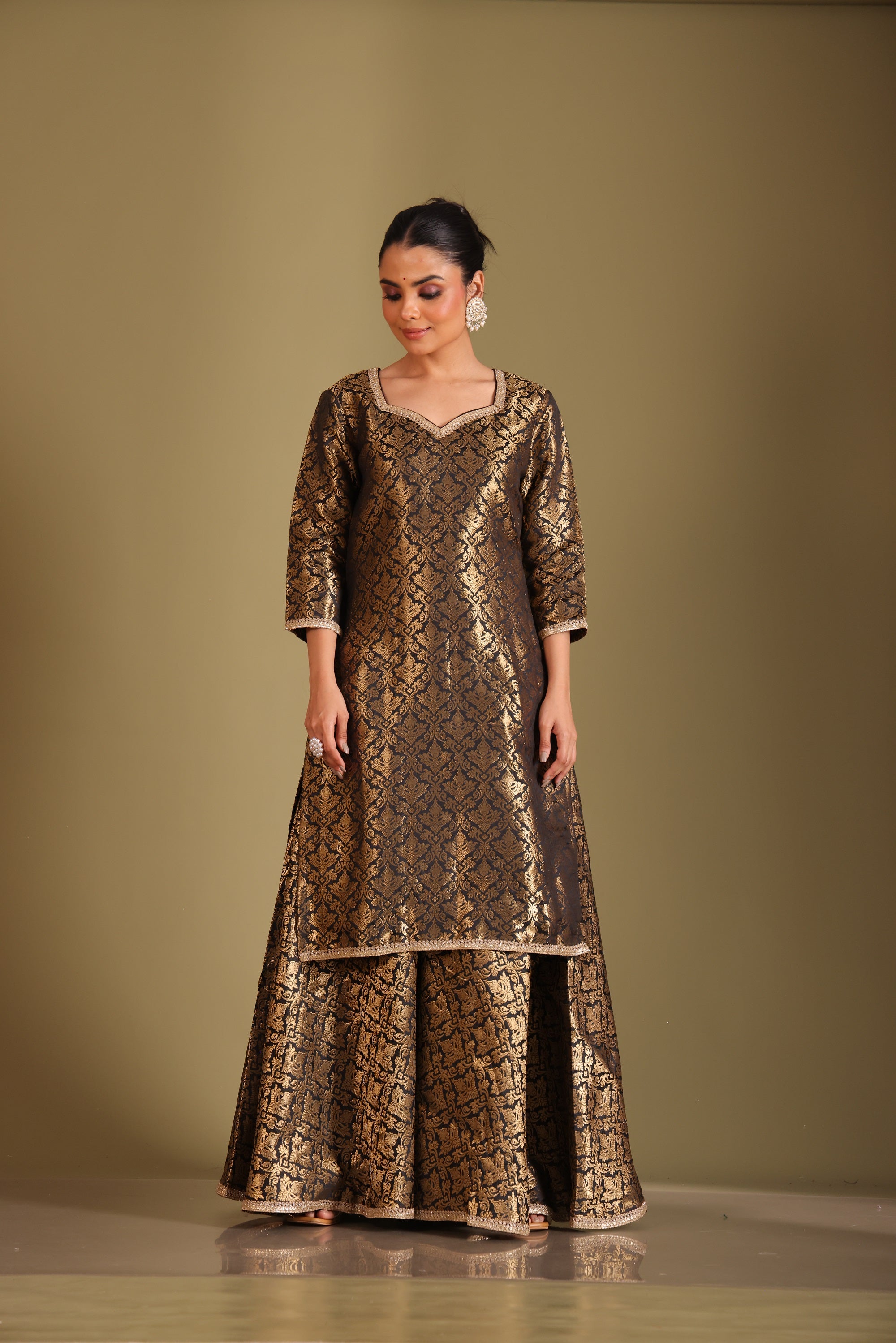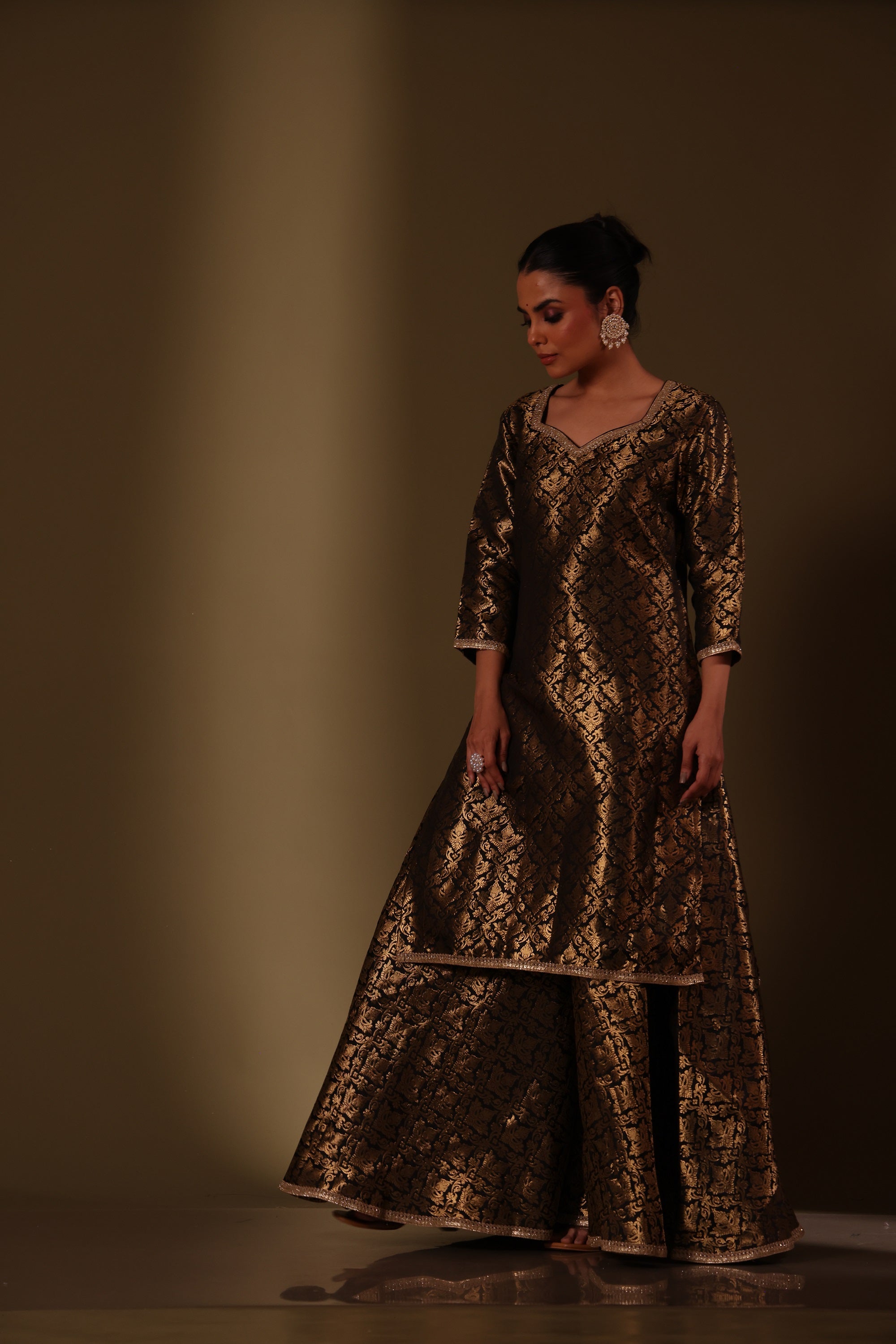 Noor-e-zar black velvet anarkali with silk pants and shawl - set of 3