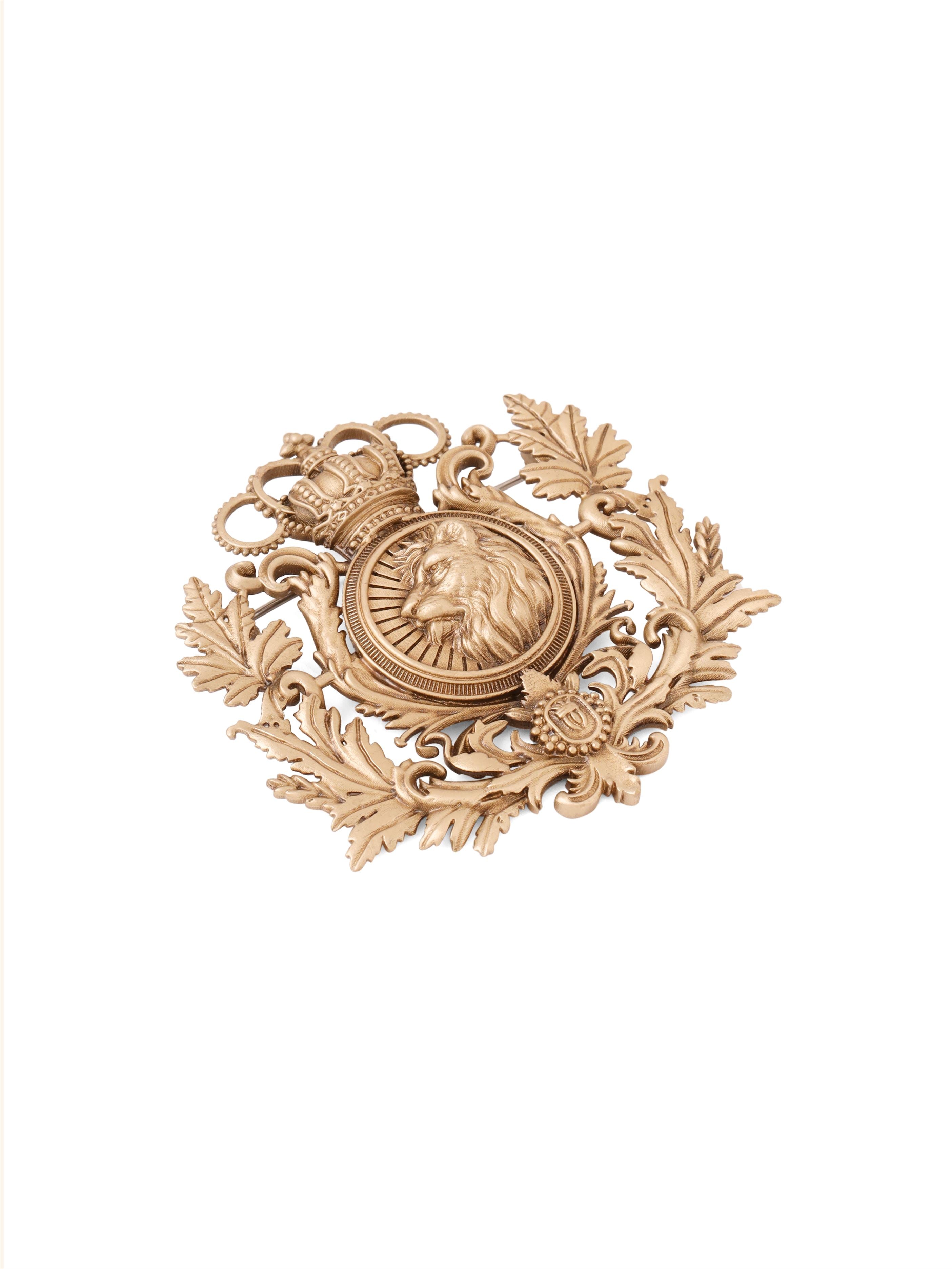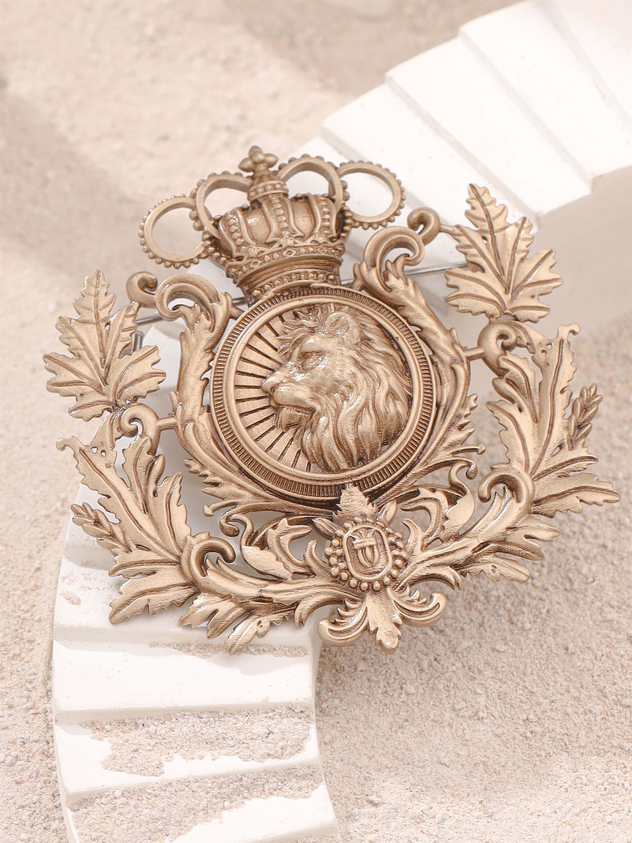 | Exude authority and strength with the Imperial Guardian Brooch. Featuring a regal lion's head encircled by laurel leaves and crowned with a majestic royal crown, this brooch is a testament to leadership and nobility. The meticulous detailing brings out the fierce yet noble spirit of the lion, making it a perfect accessory for those who command respect. Lightweight and versatile, the Imperial Guardian Brooch is designed to complement your coat, jacket, or bandhagala, adding an air of grandeur to your ensemble for any prestigious occasion. |