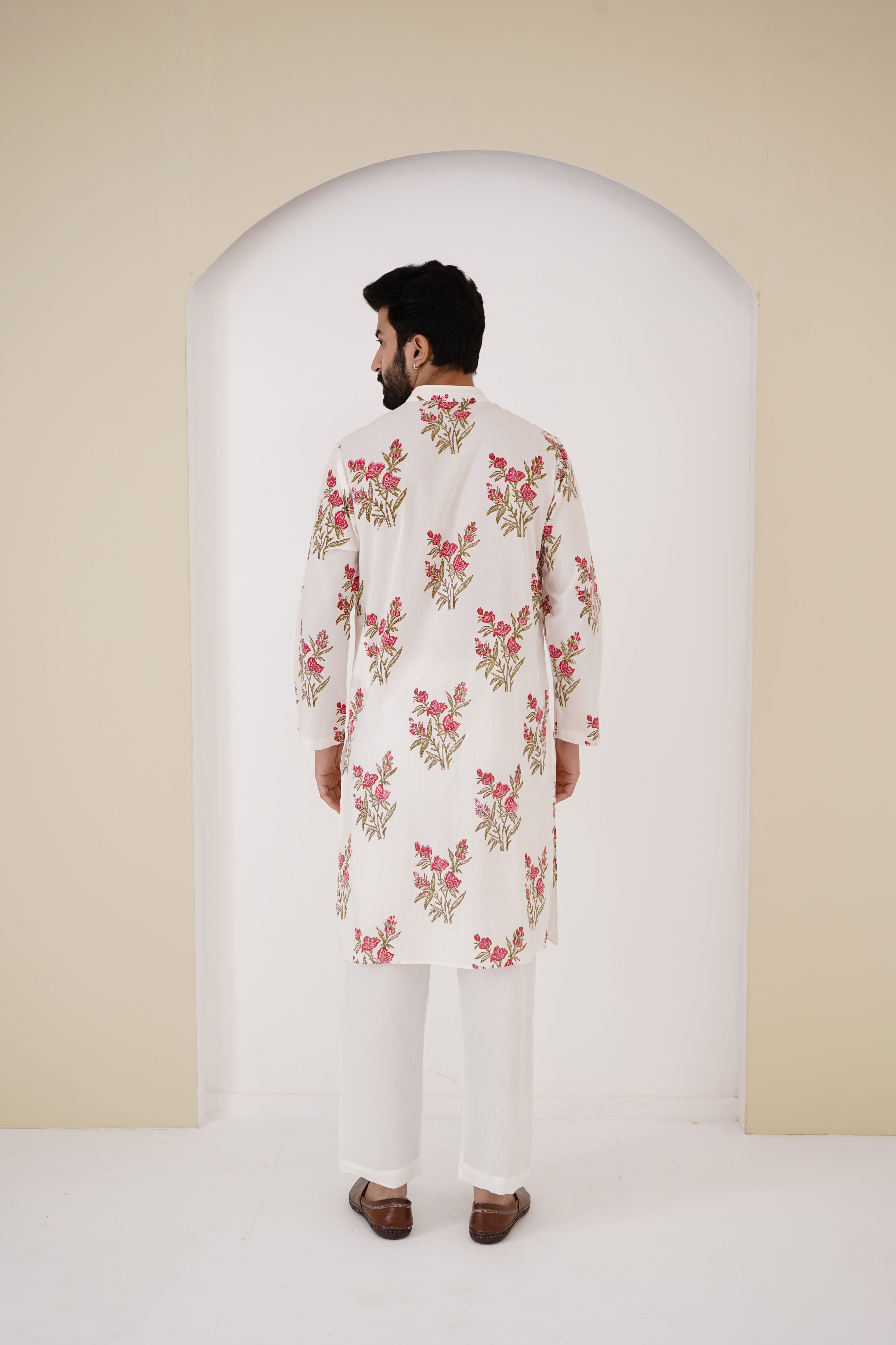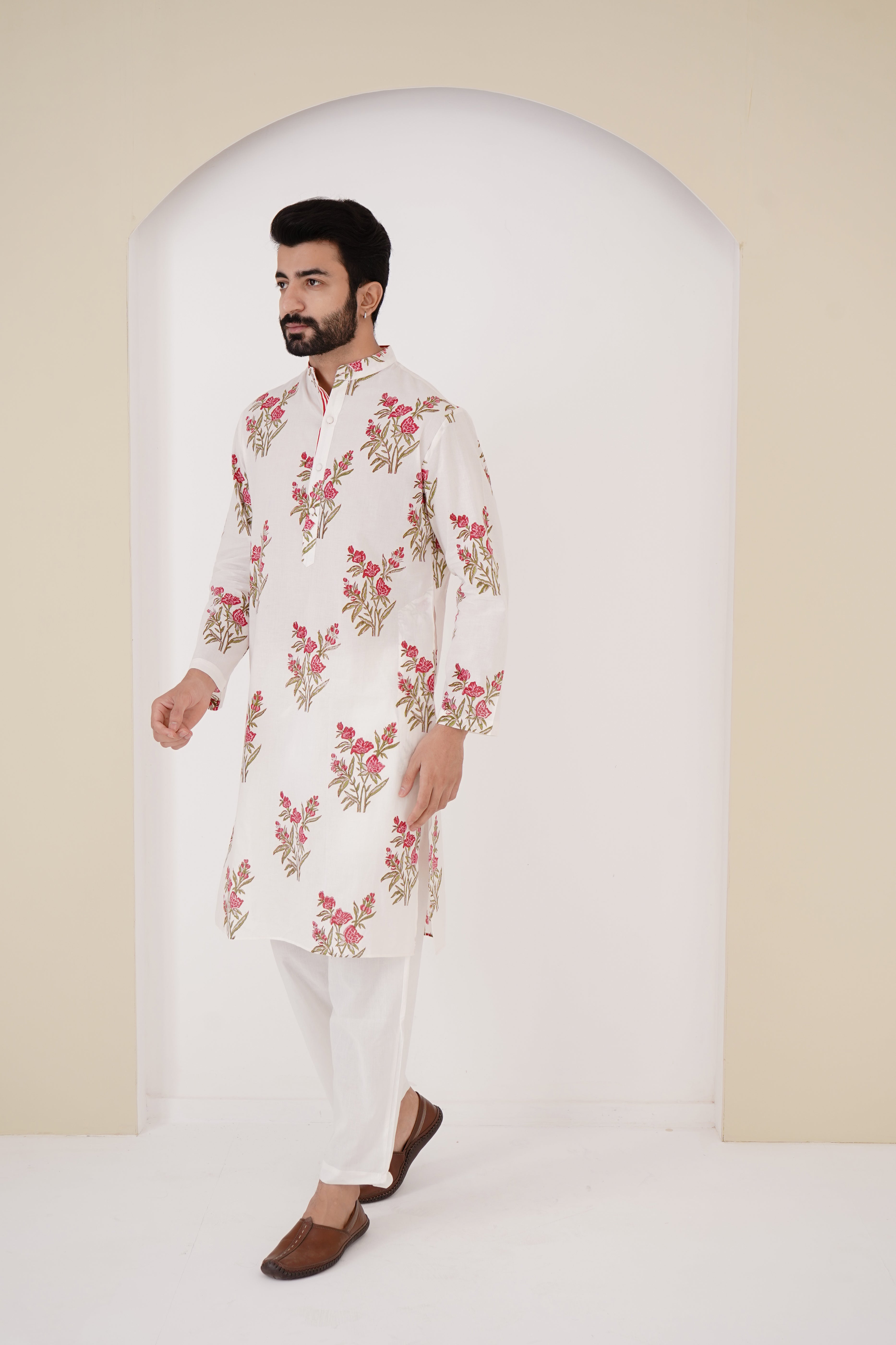 -Men's kurta in Hand Block Printed Cotton fabric with full length sleeves.