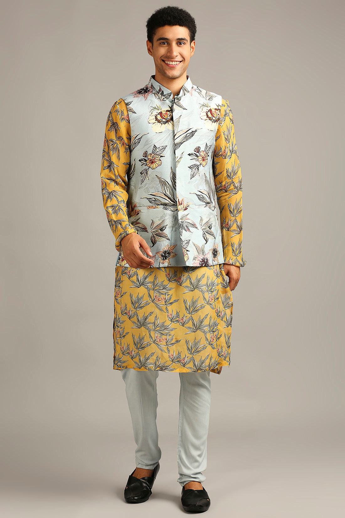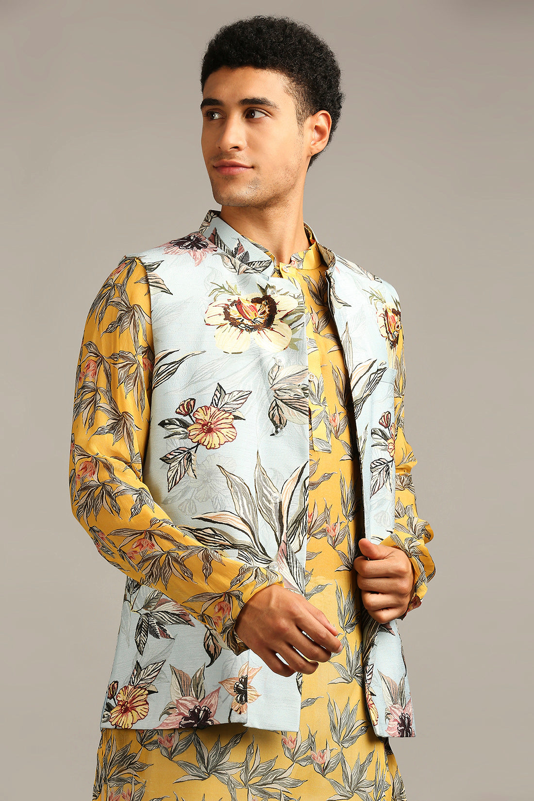 Add a touch of refined floral elegance to your traditional wardrobe with our Anthia Floral Printed Bundi with Kurta Set — a perfect fusion of timeless charm and contemporary design. Featuring a beautifully printed bundi (Nehru jacket) with delicate floral motifs inspired by botanical gardens, this ensemble is designed for festive occasions, day weddings, and celebratory gatherings.