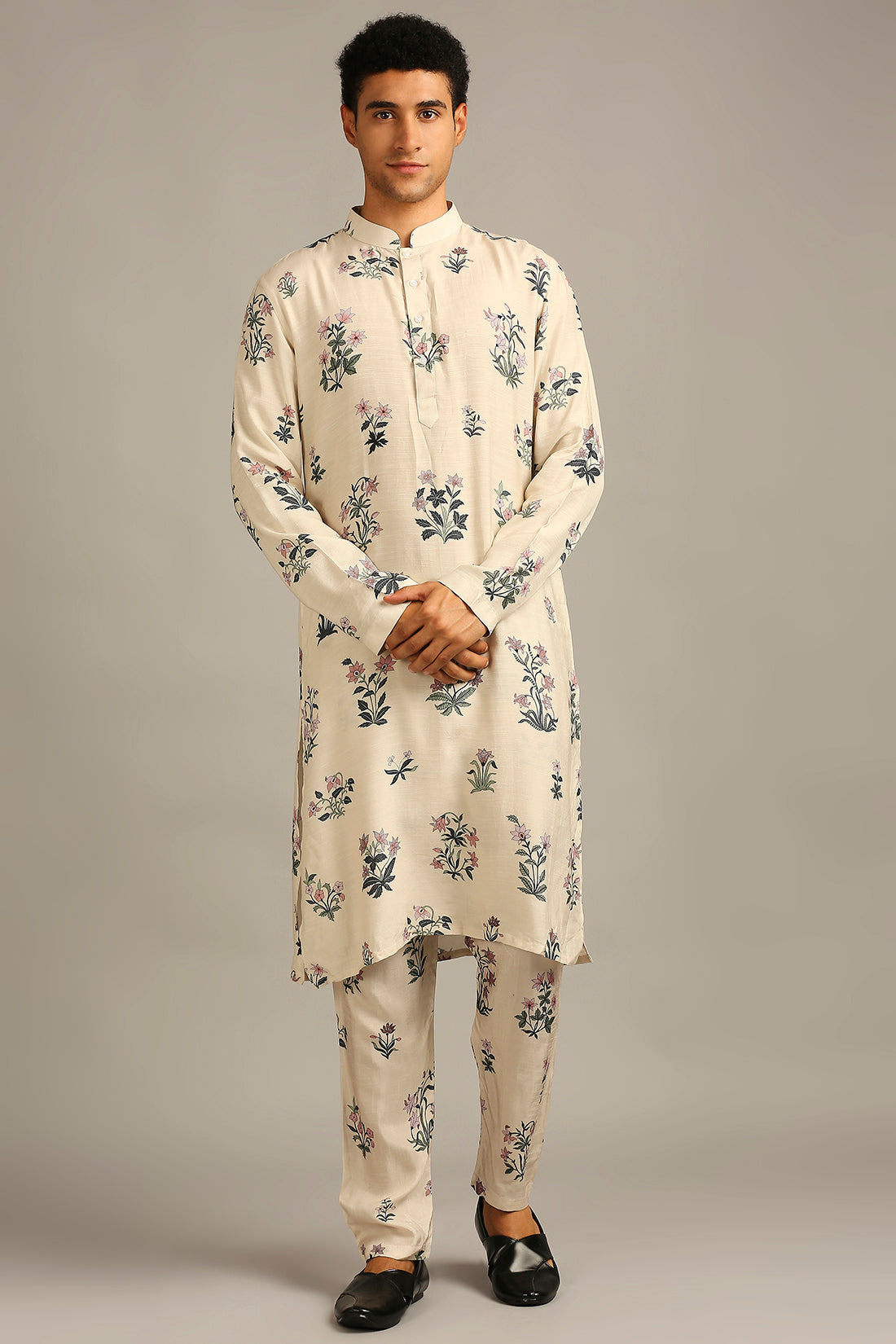 Pastel floral printed jacket with kurta set