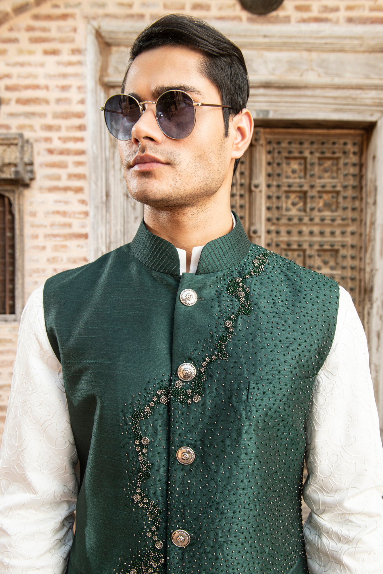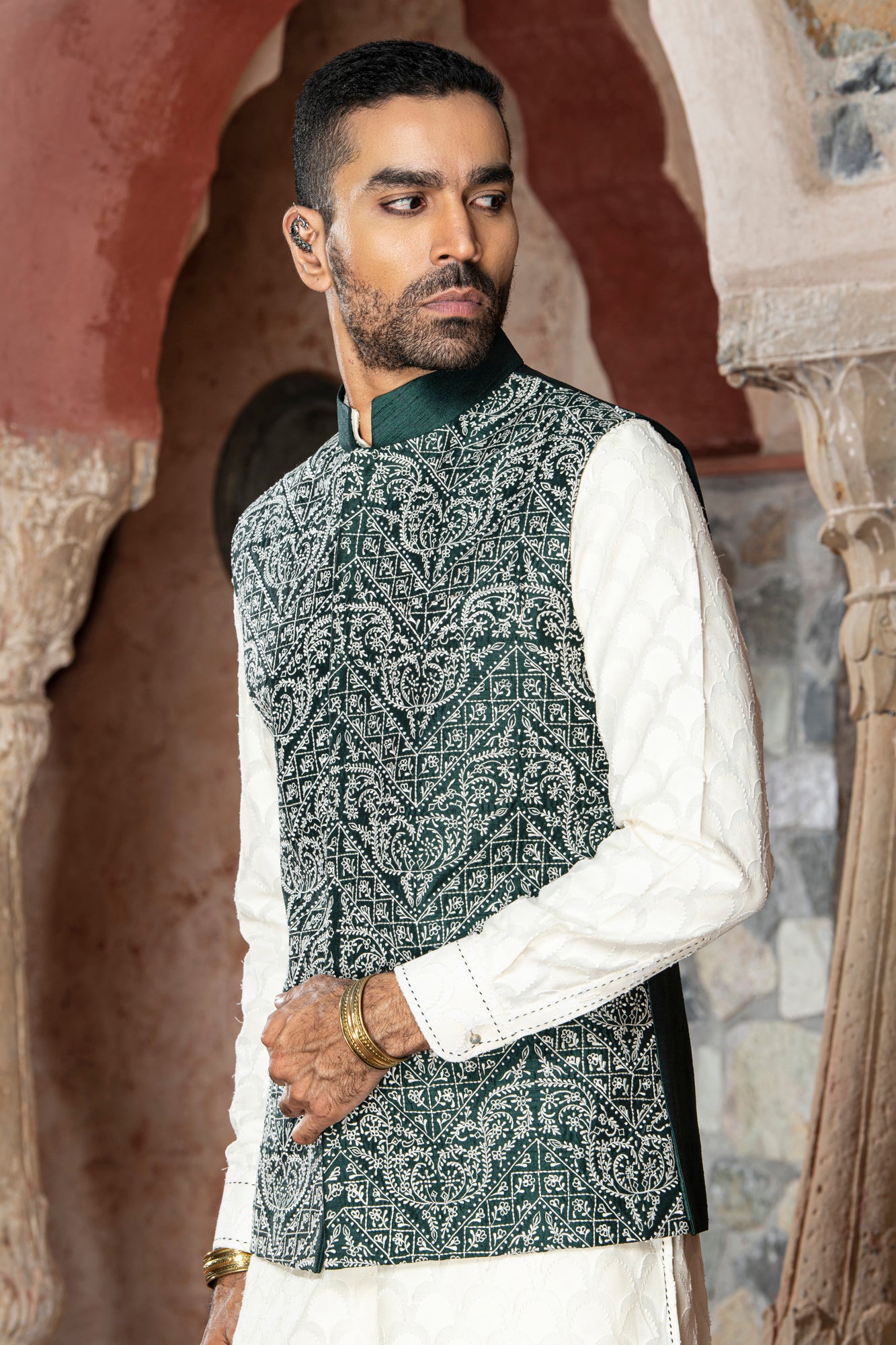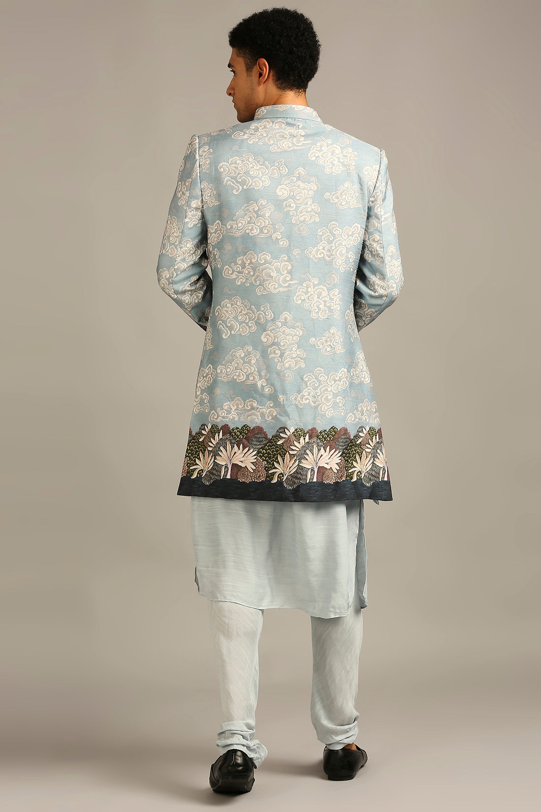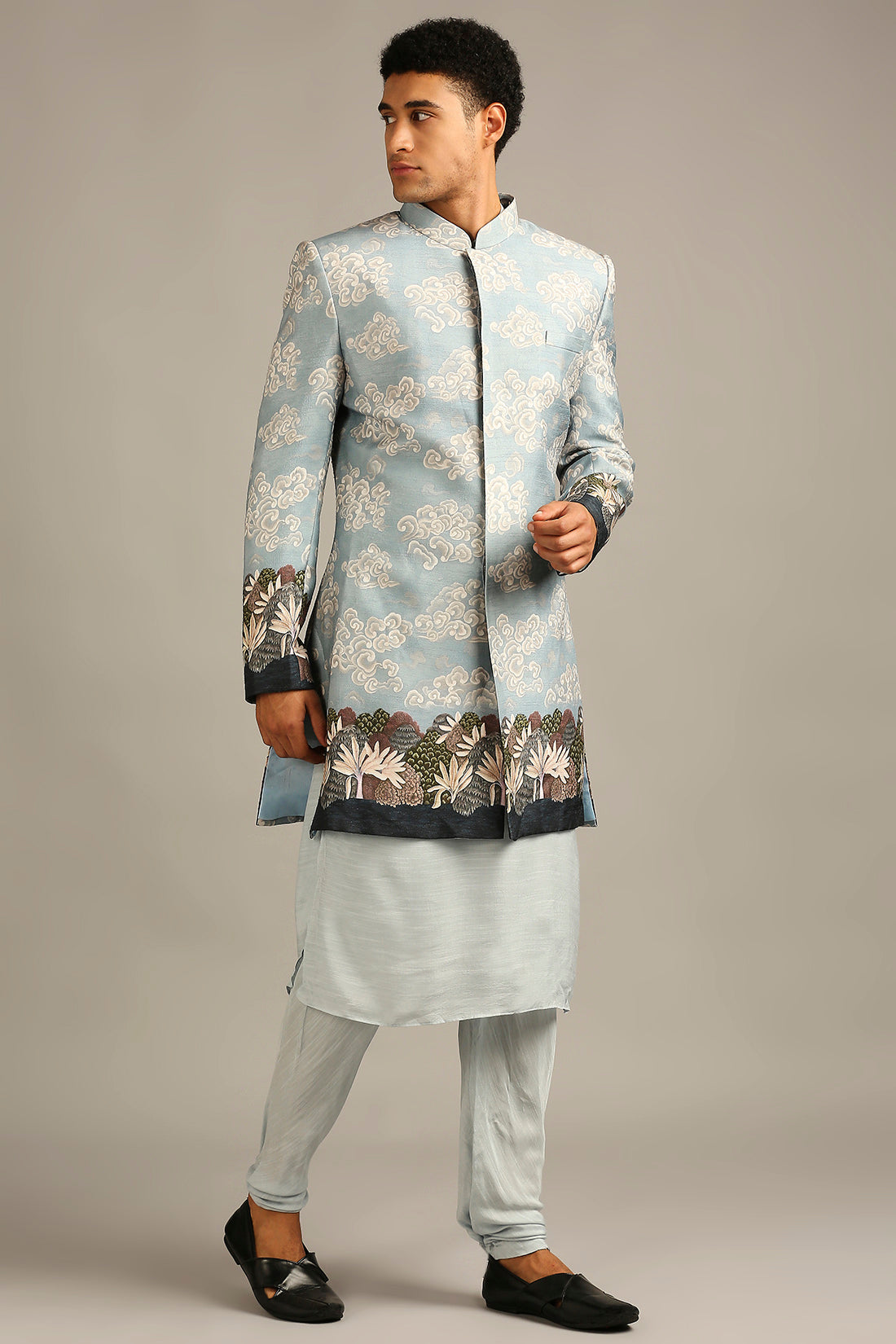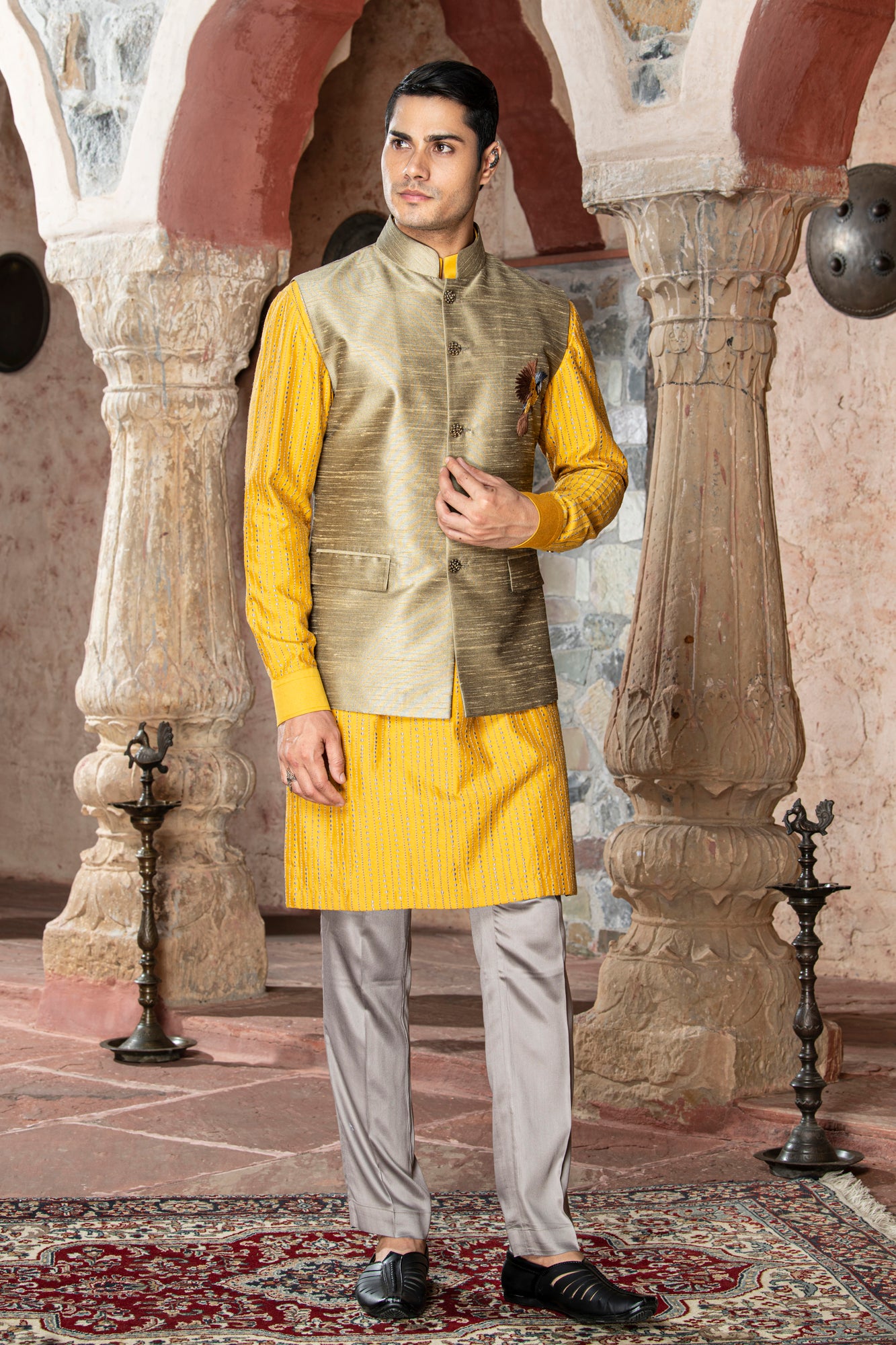 Multi-colored silk dupion printed & embroidered nehru jacket