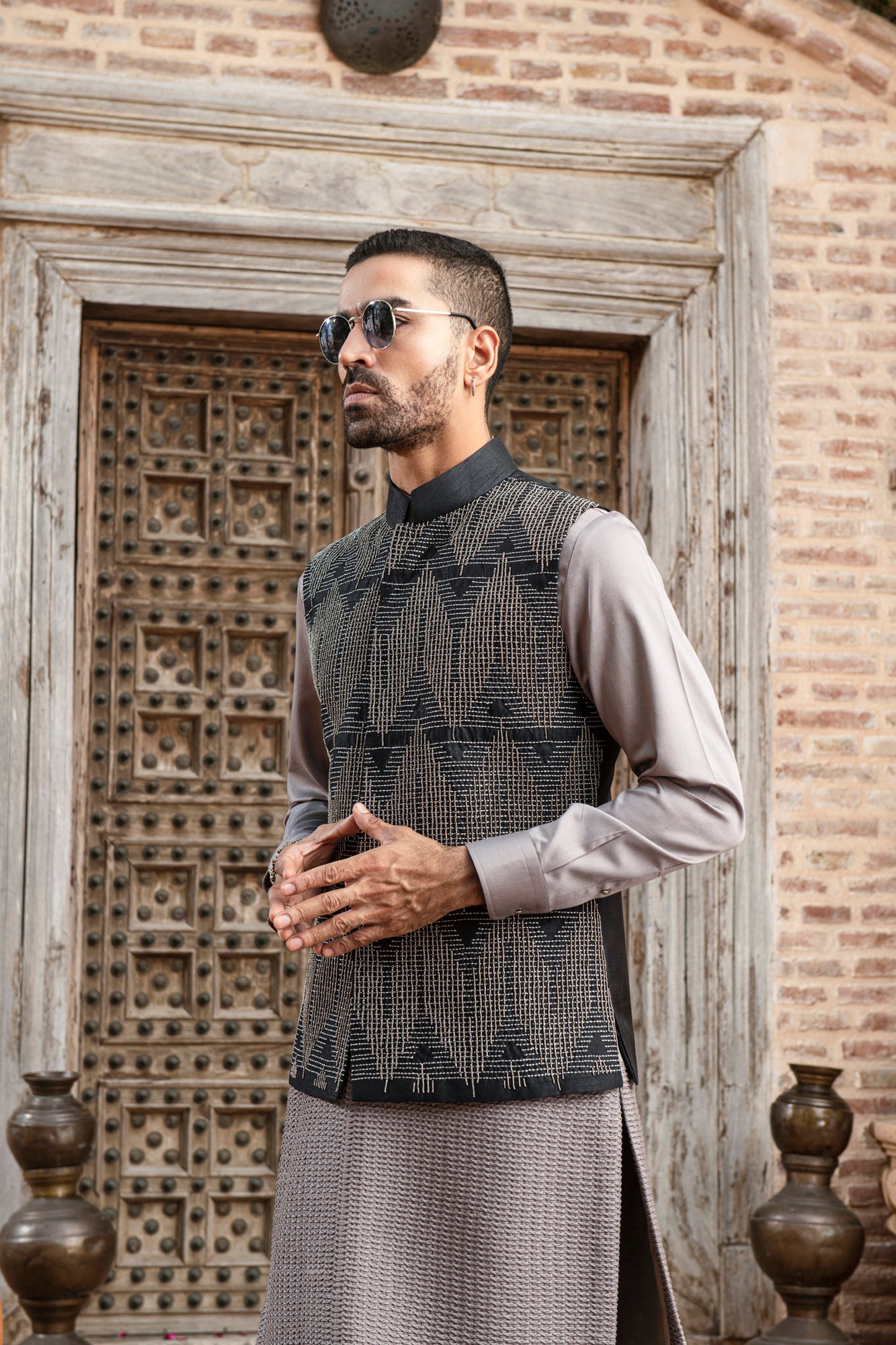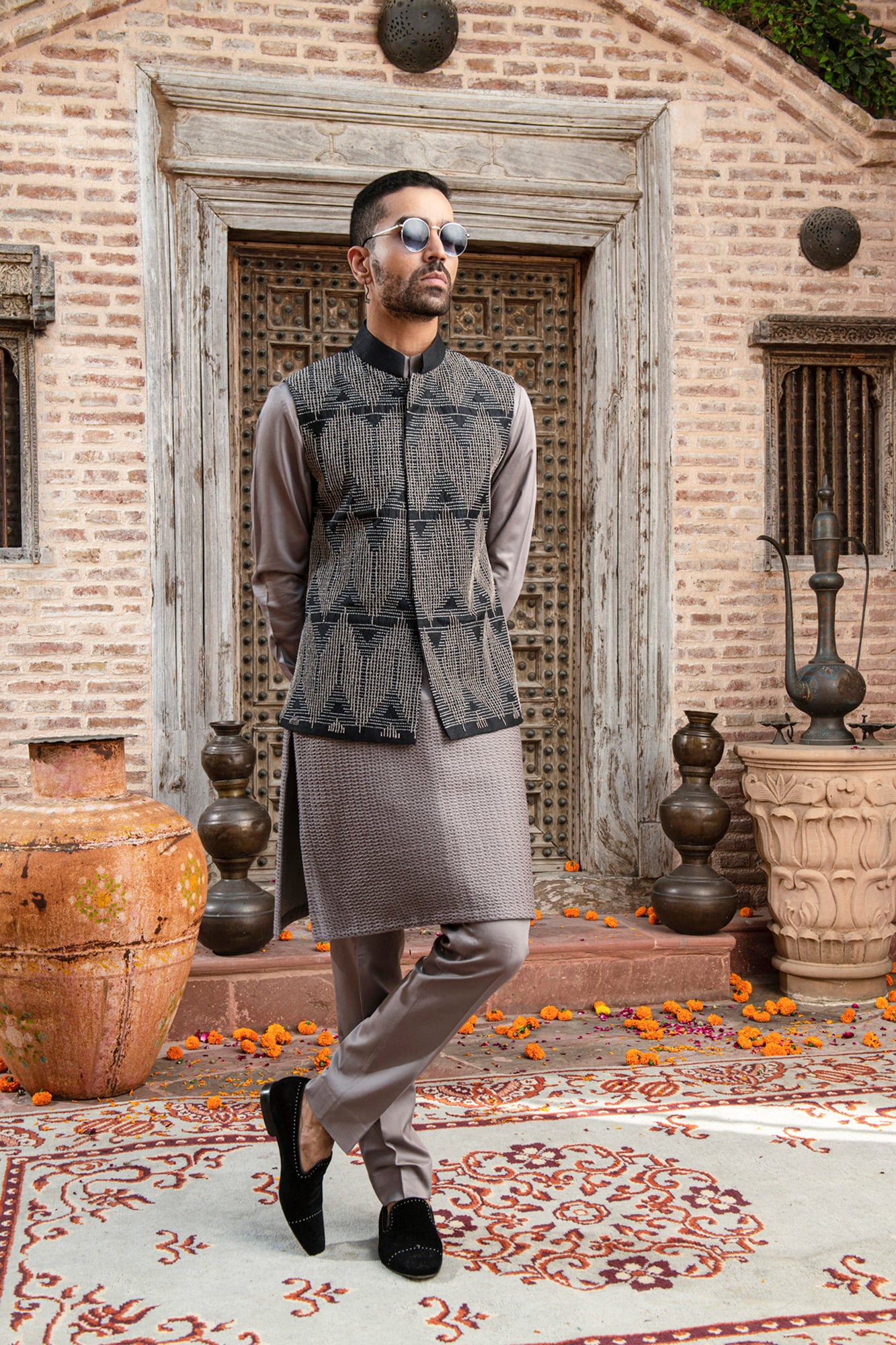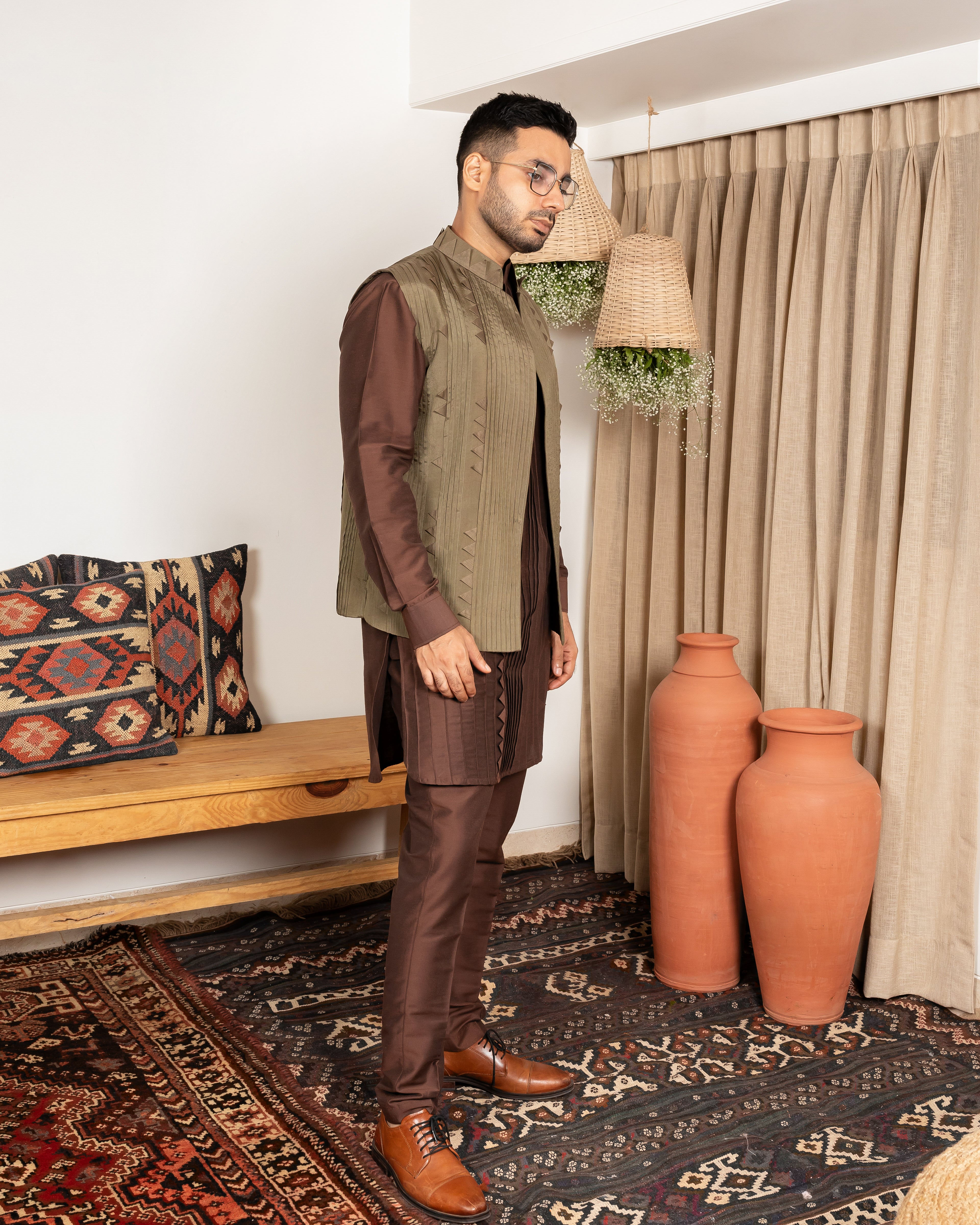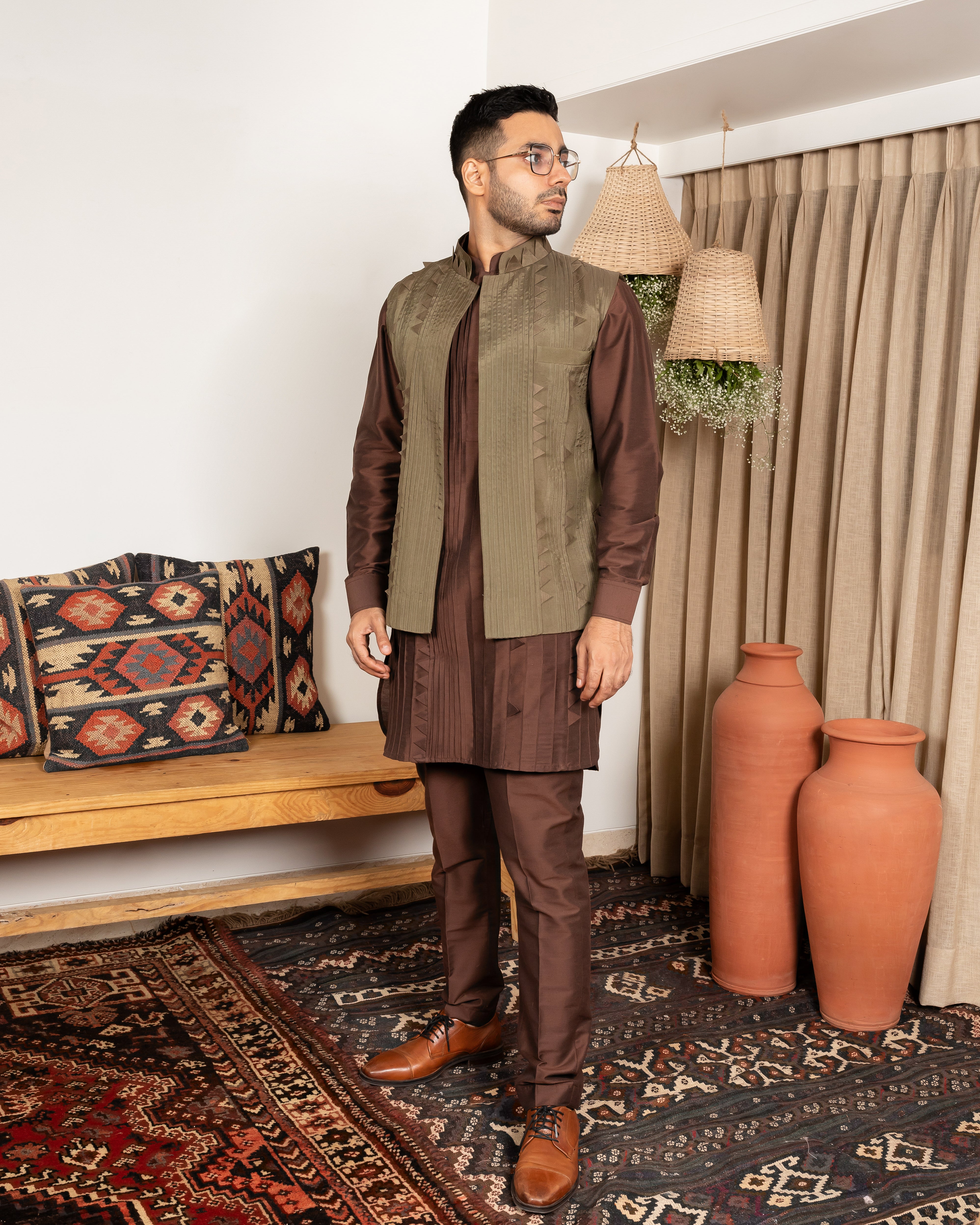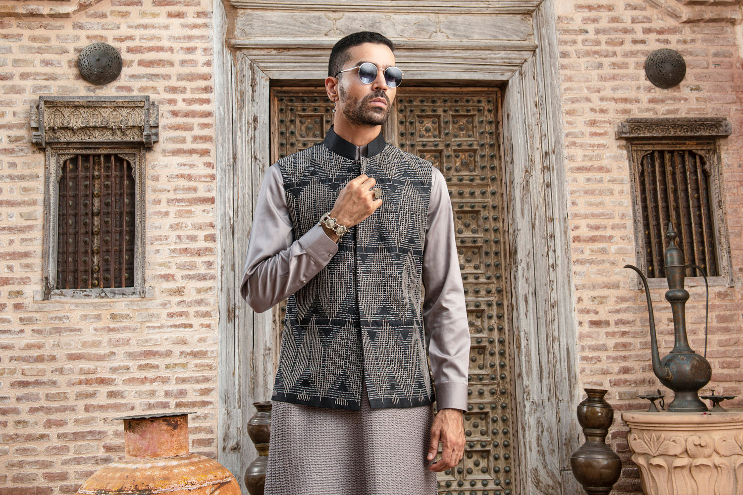 Multi-colored silk dupion printed & embroidered nehru jacket