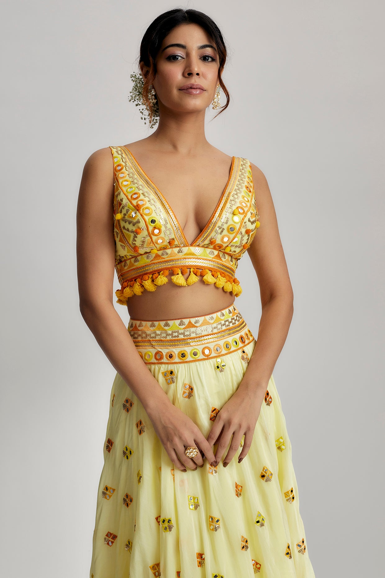 The Yasti Victorian Skirt Set showcases the skillful craftsmanship of detailed hand and machine embroidery. Intricate patterns and motifs are meticulously embroidered onto the fabric, creating a rich and textured look. The combination of hand and machine embroidery ensures precision and durability, making this skirt set a timeless piece that can be treasured for years to come.