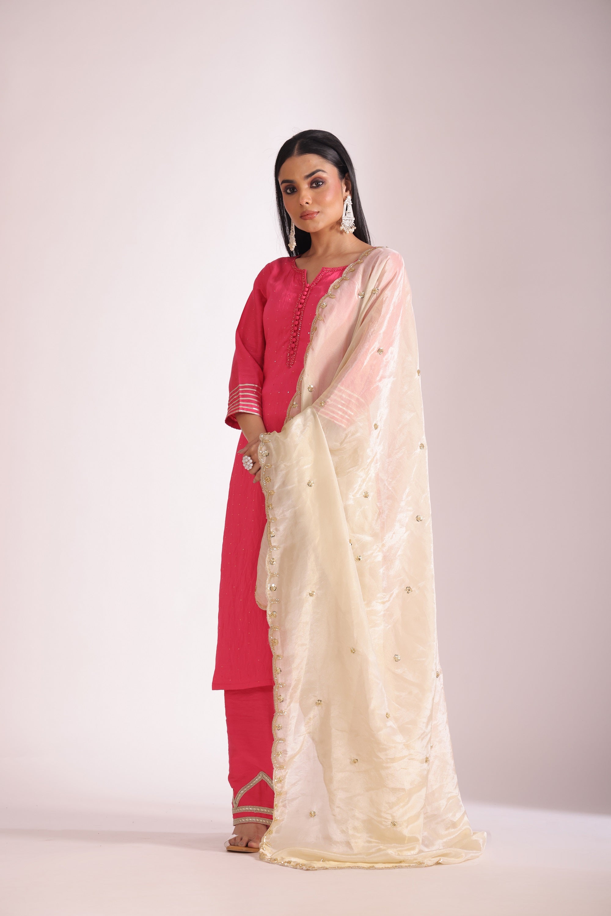 Mastani fuschia chanderi kurta and pant with dupatta- set of 3