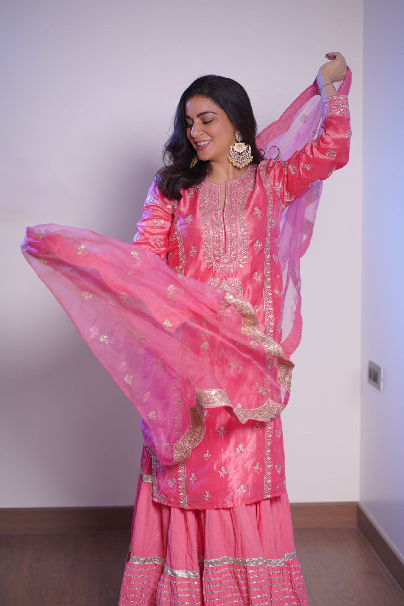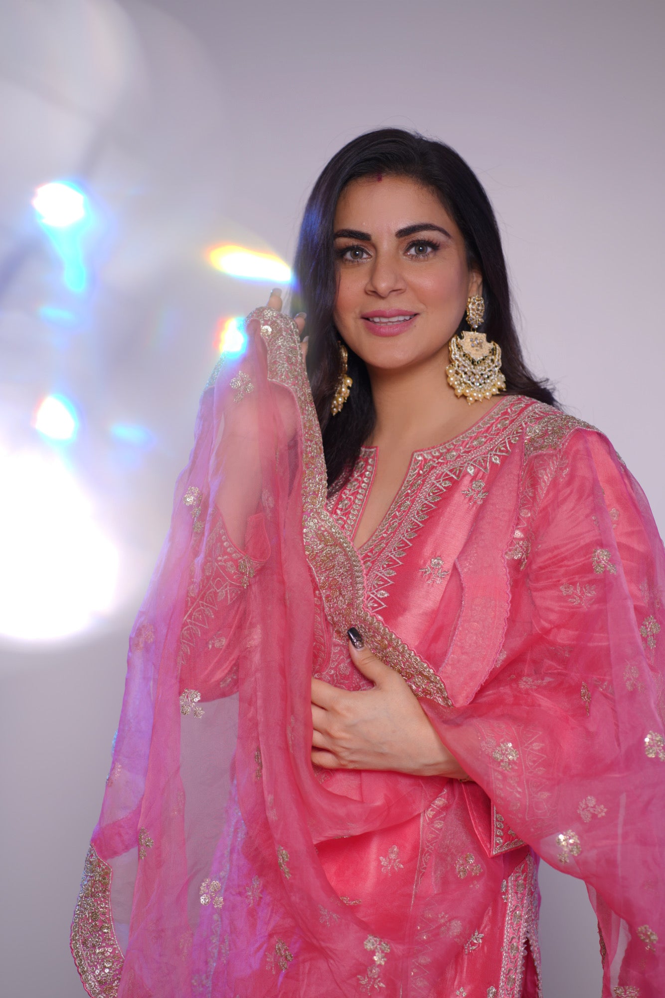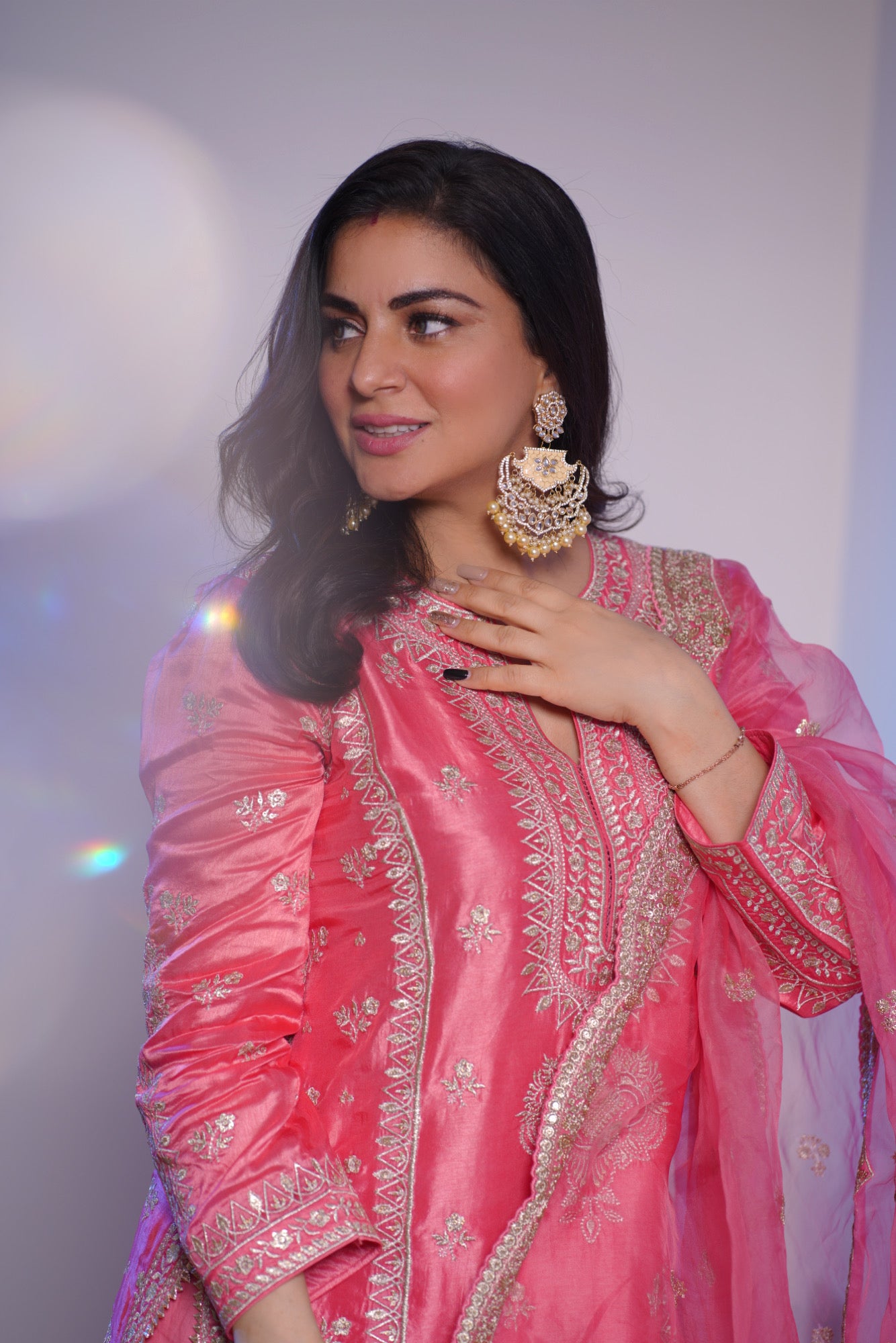Featuring a kurta with long sleeves, paired with a beautiful organza dupatta. The subtle embroidery making it a great choice for a day or night event.