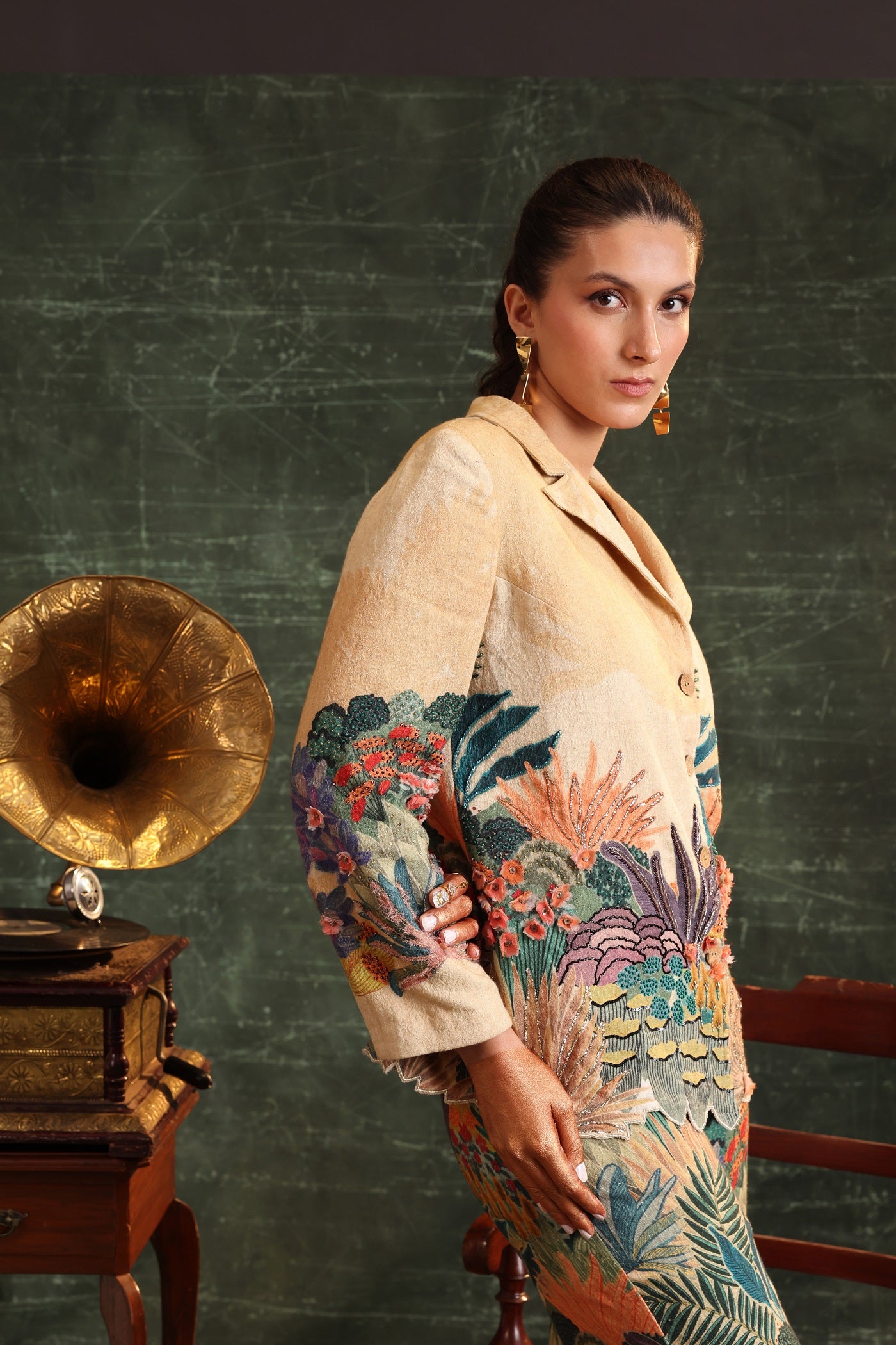 Beige kaira embroidered blazer set