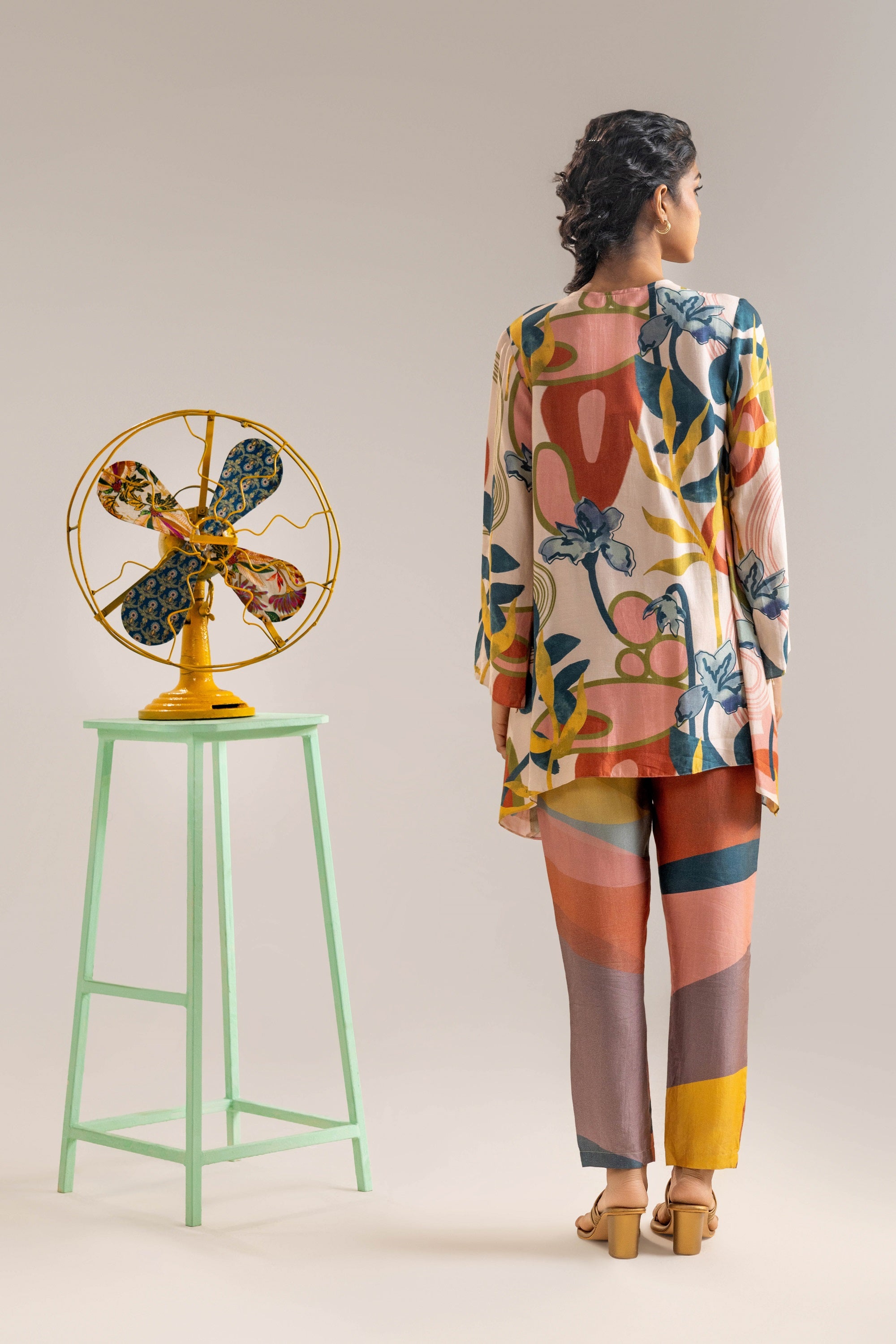 "Beige Flora Embellished Shirt, Paired With Printed Chanderi Pants
