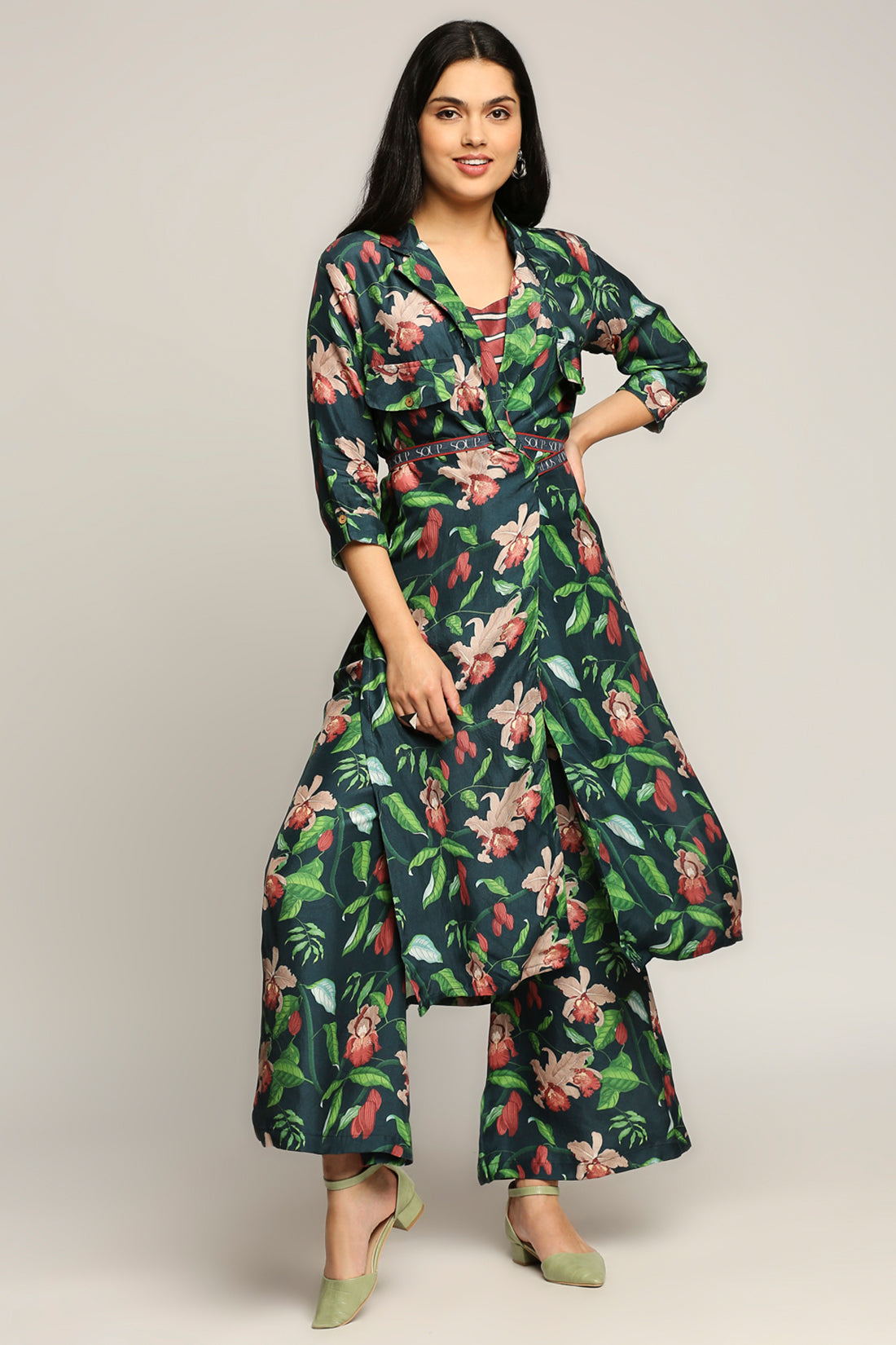 Step Into Effortless Sophistication With This Orchid Bloom Printed Co-Ord Set, Complete With A Matching Jacket That Adds Structure And Style. Designed To Exude Modern Elegance, This Coordinated Ensemble Features Delicate Floral Prints That Bring A Fresh, Feminine Charm To Your Wardrobe.