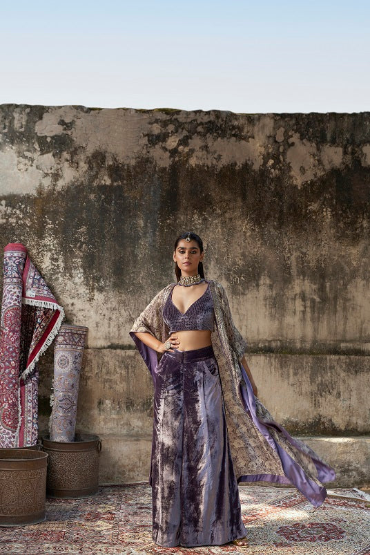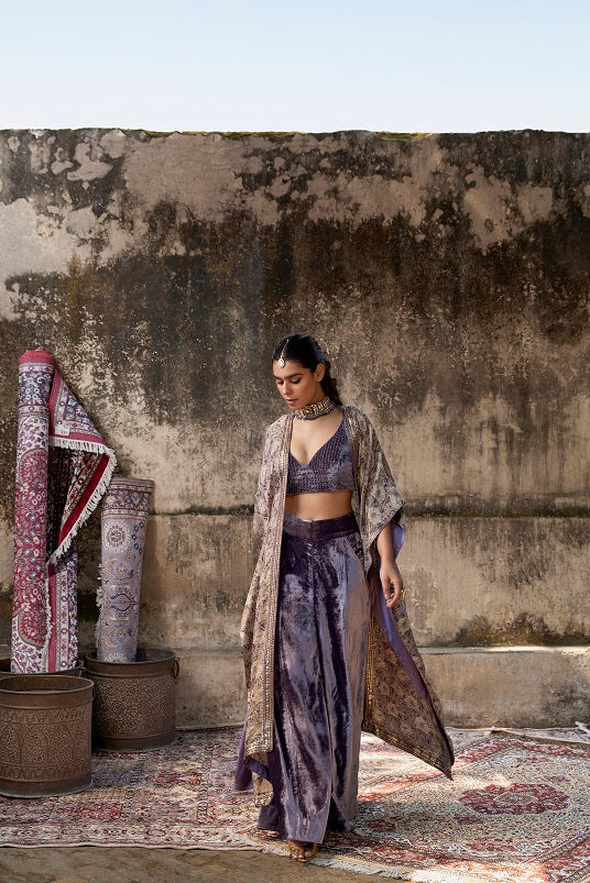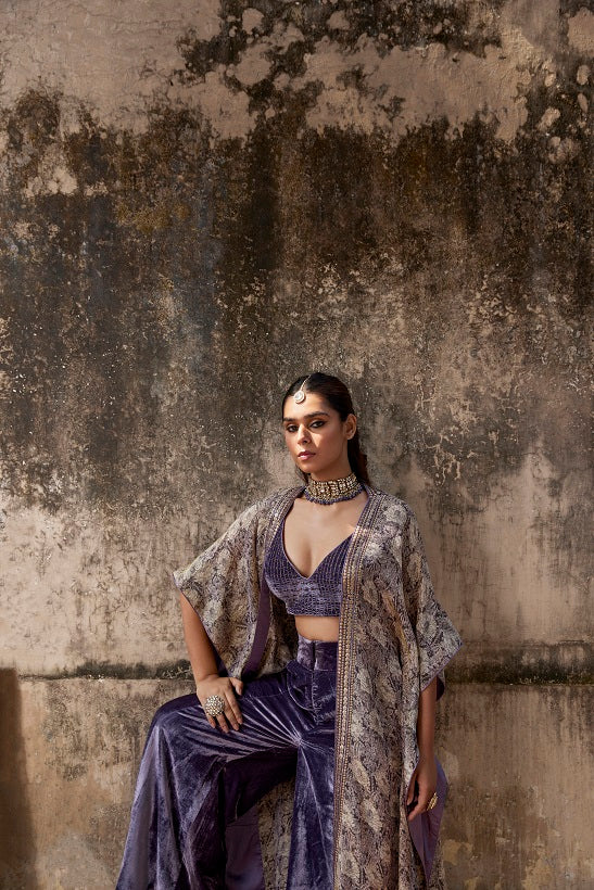 Featuring with Deep Purple cape set in velvet fabric which is paired with 3 in set.