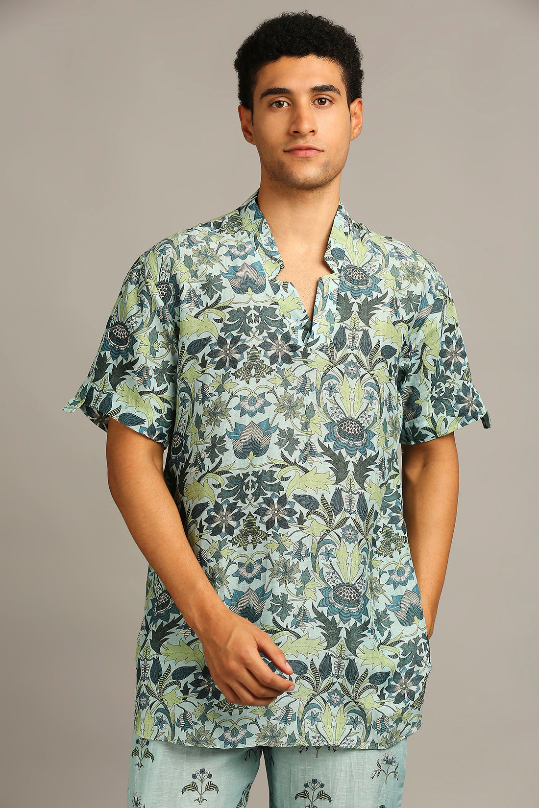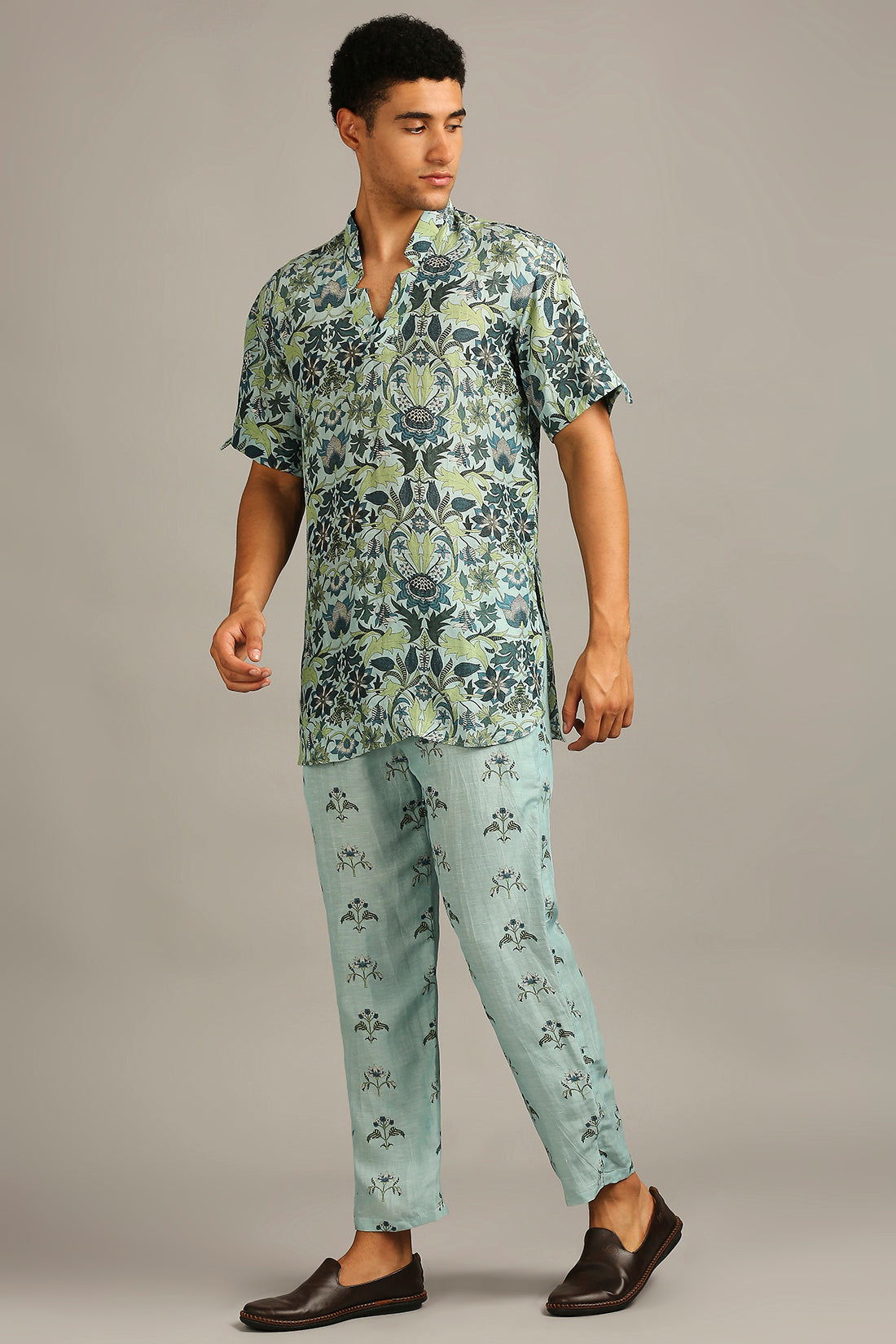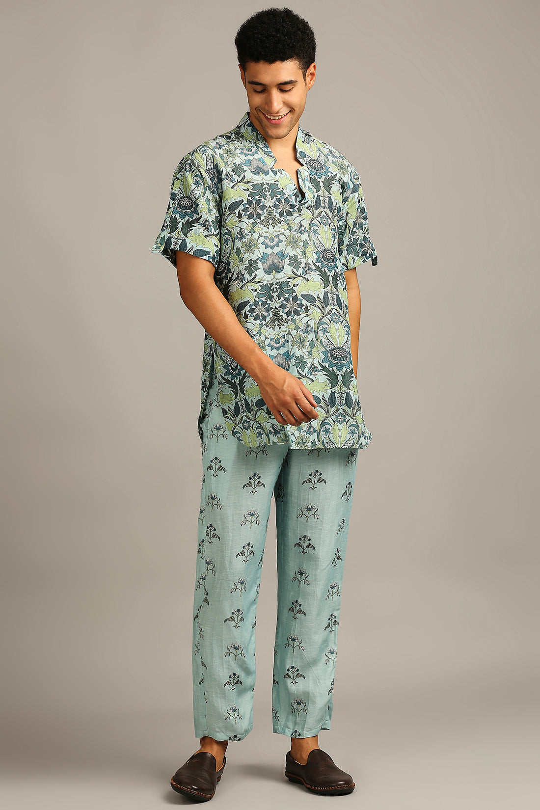 Make a bold yet refined statement with this men’s pastel floral printed co-ord set — a perfect blend of modern street style and relaxed sophistication. Designed for comfort and confidence, this matching set brings a fresh, contemporary twist to florals in soft, muted tones.