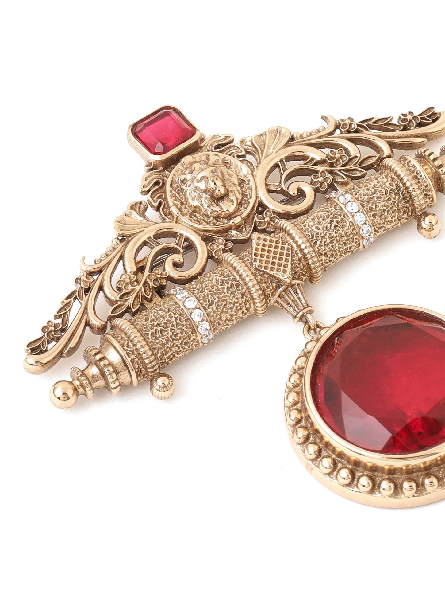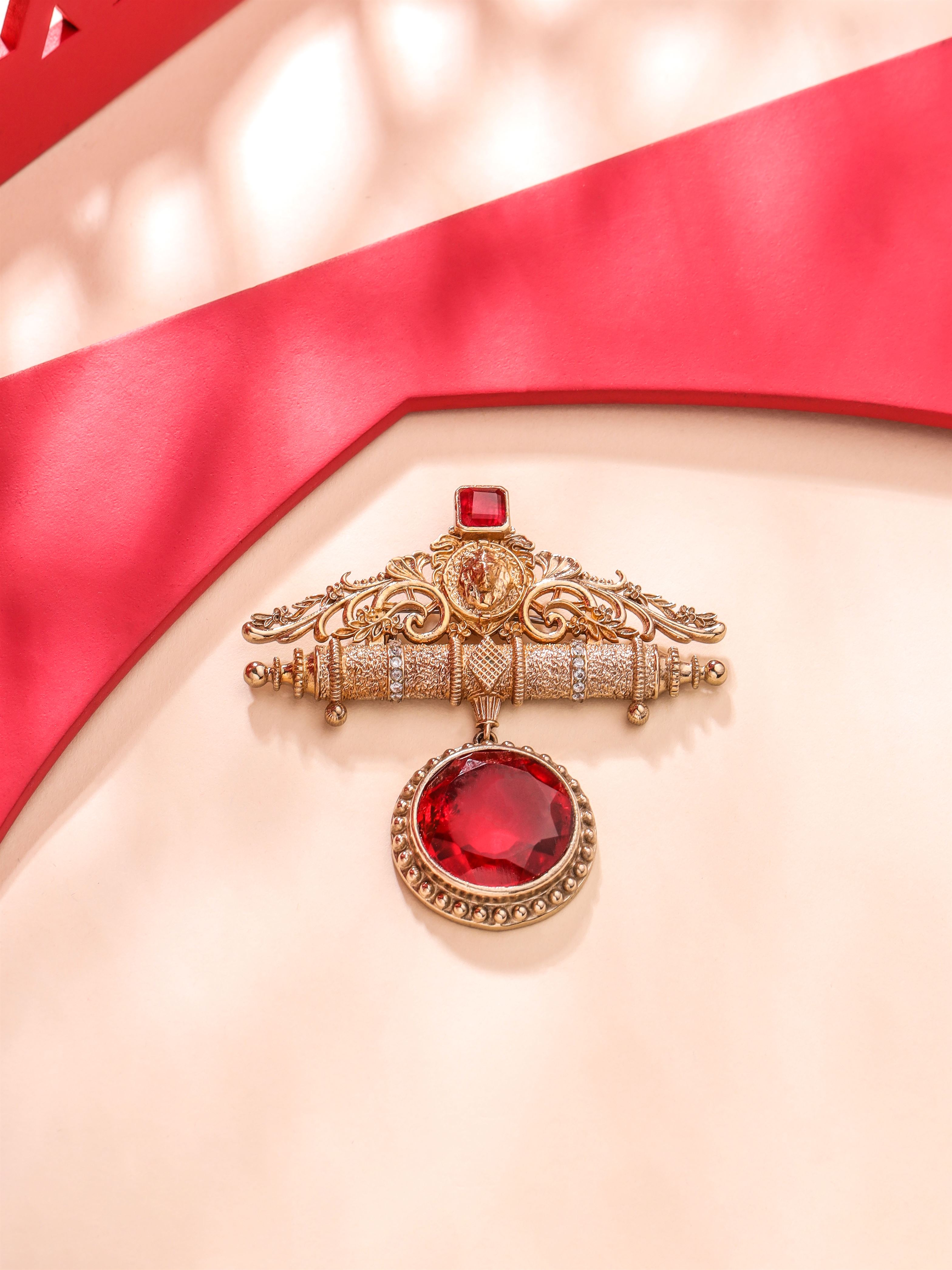 "Radiate grace and glory with the ""Ada-e-Khaas Brooch,"" a captivating symbol of elegance and allure. This exquisite accessory features an enchanting design with a square green gemstone at the top and a magnificent circle green gemstone at the bottom. Crafted with finesse, the brooch captures a sense of regal charm and sophistication. Wear the Brooch with pride, embracing your inner grace and letting your light shine brightly. Let this alluring brooch be a reminder to exude confidence and beauty in every step you take.